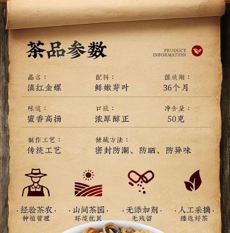云南凤庆大叶种功夫红茶 金螺滇红茶50克