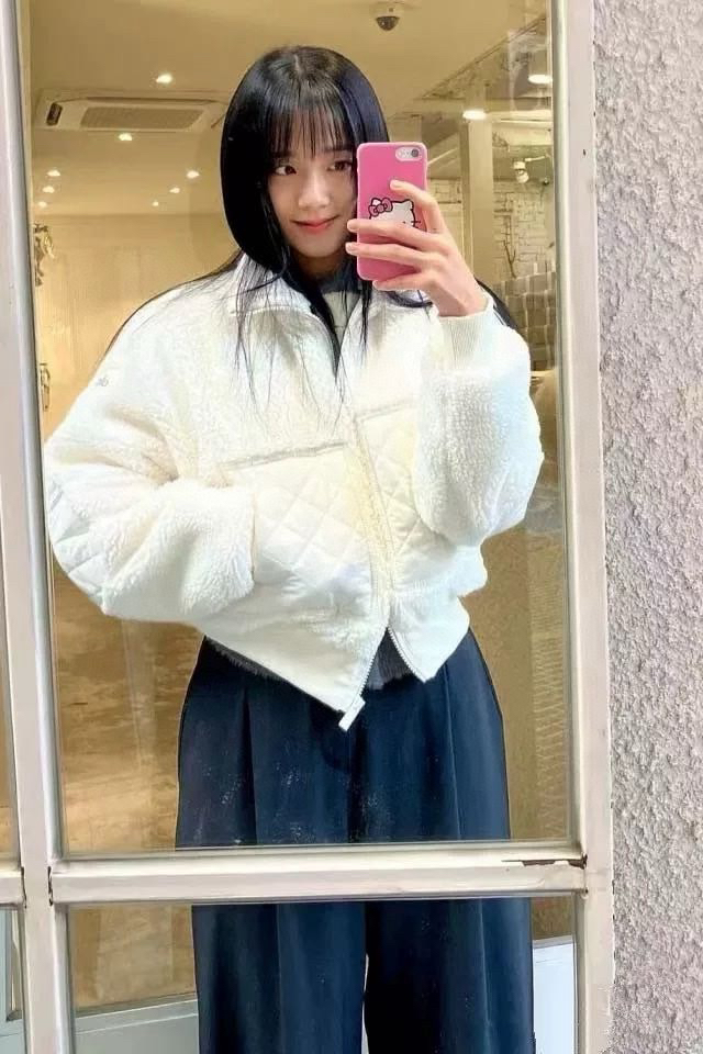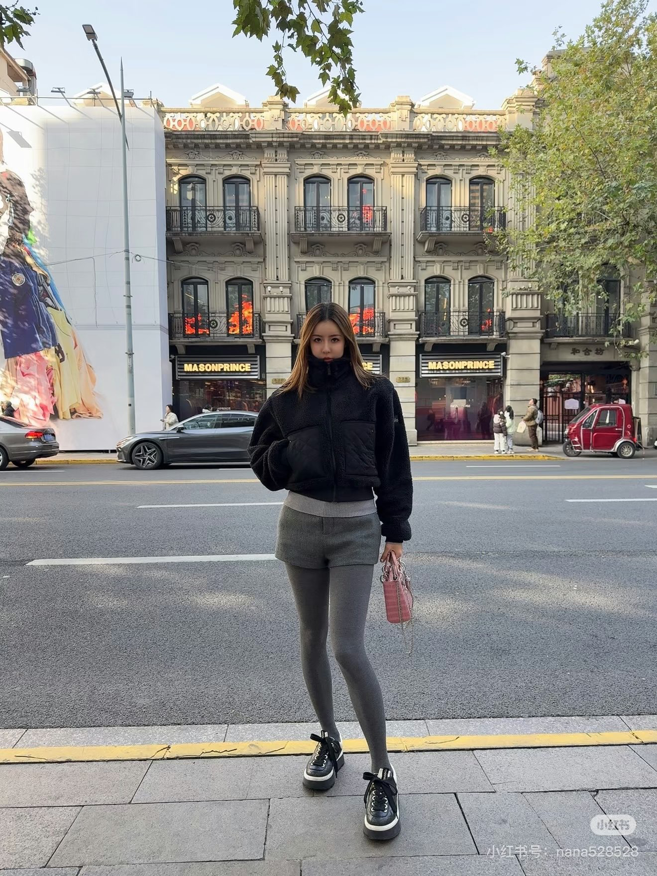 咱们仓库今年11月的开放日那款紫色HH冲锋衣还记得吗?也是小短款,哇塞,这身高比例拉的,那叫一个好看,哇咔咔~