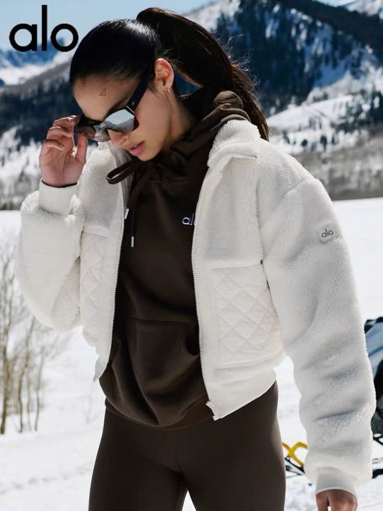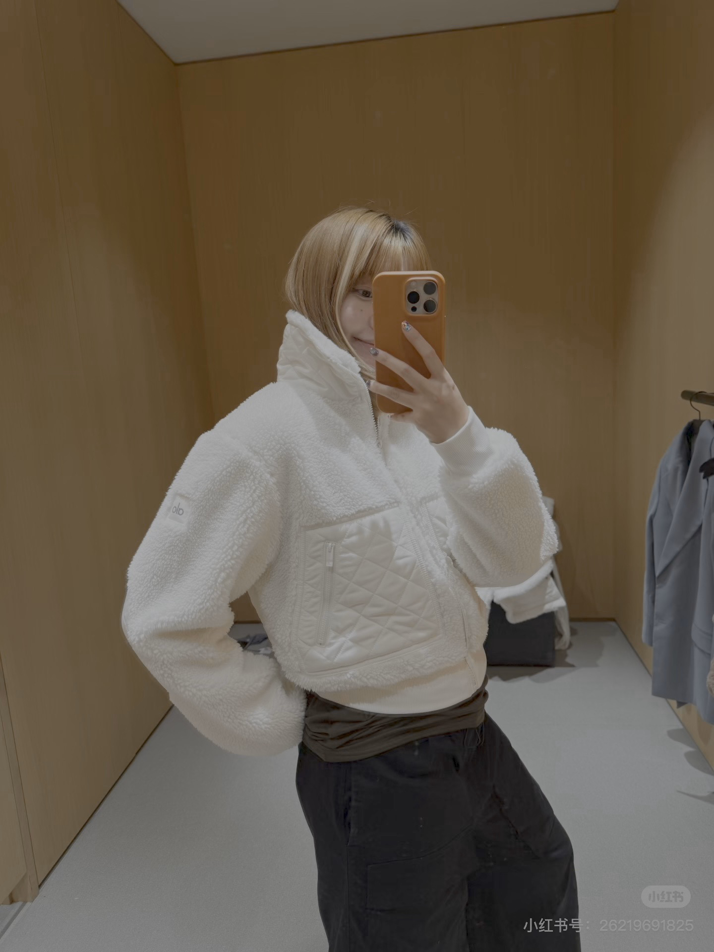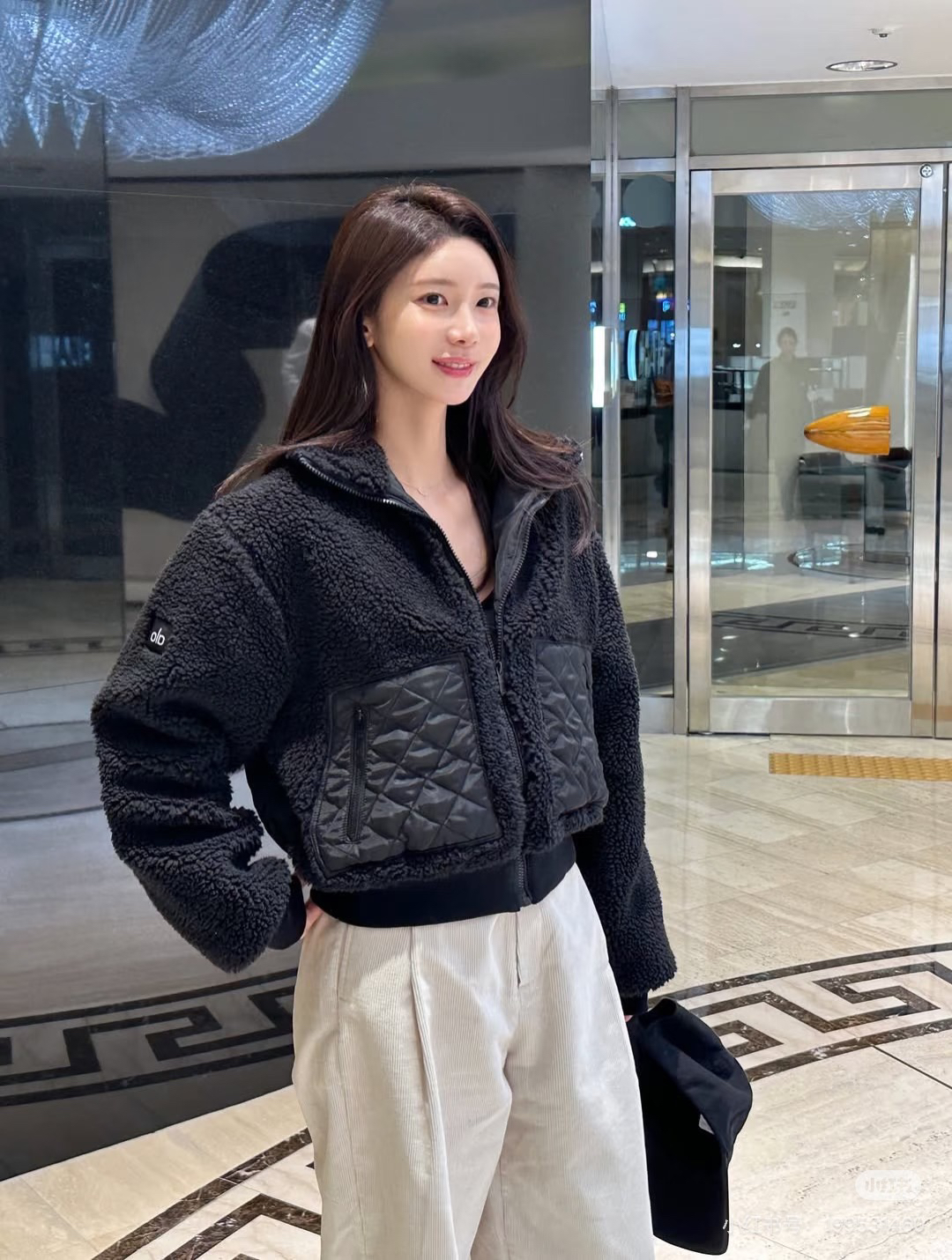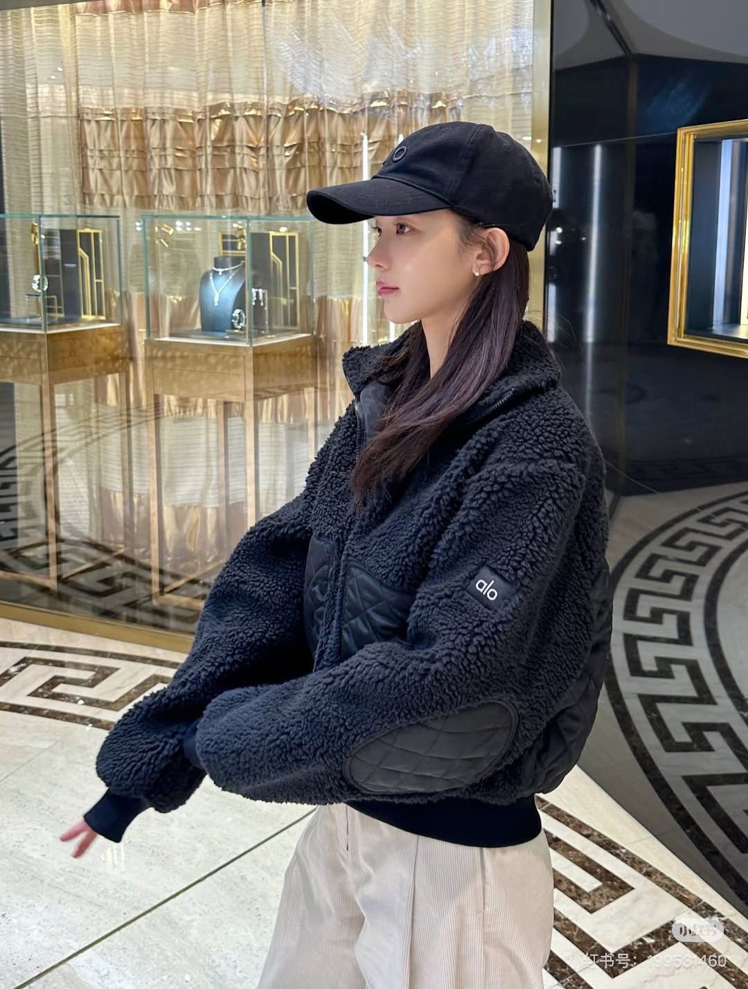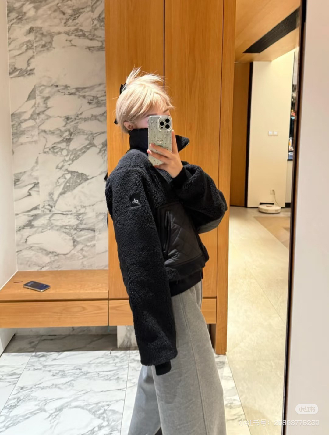 Alo 智秀同款 立领短款 秋冬飞行员 羊羔绒外套