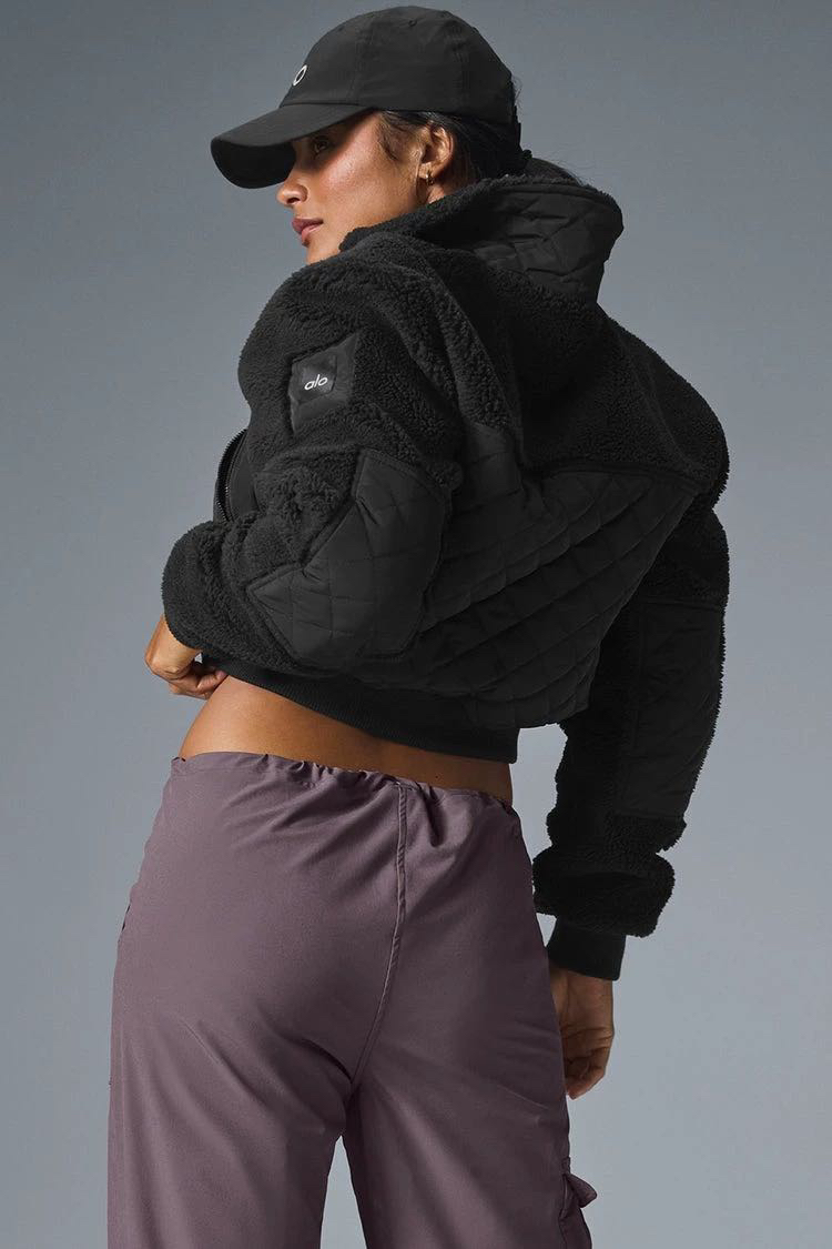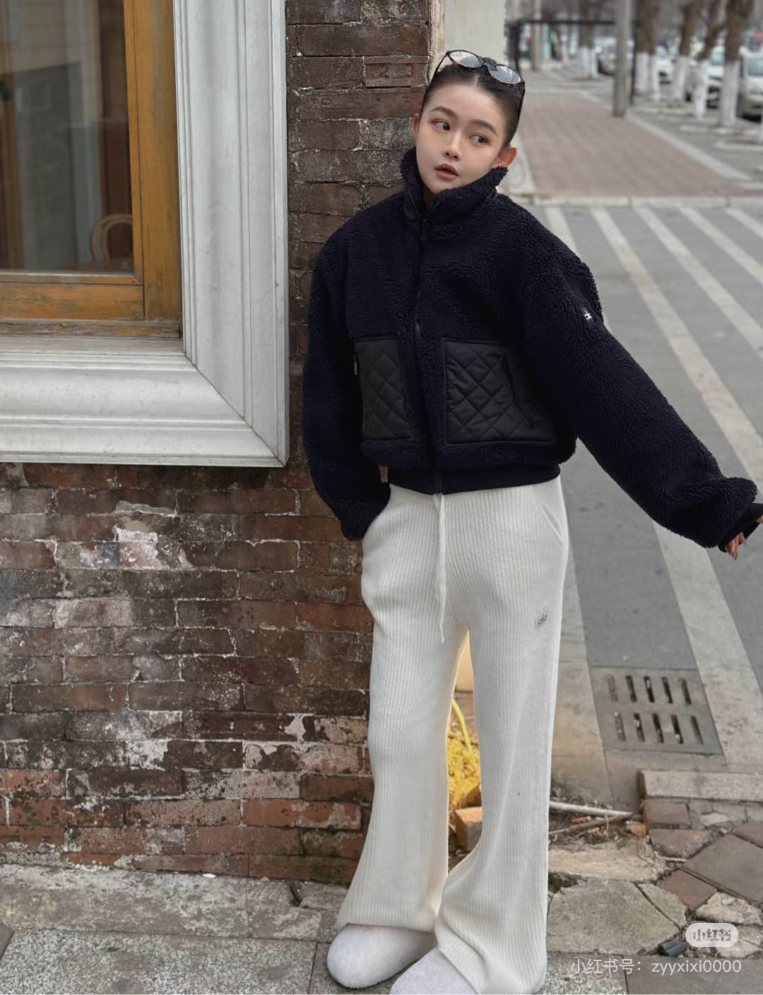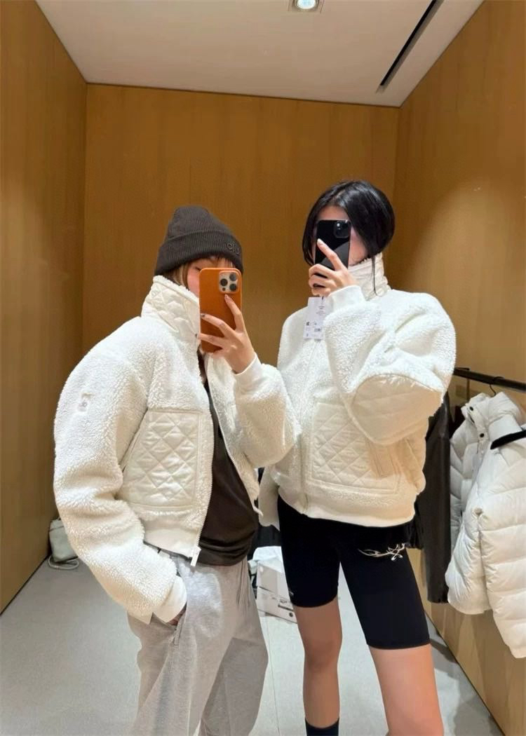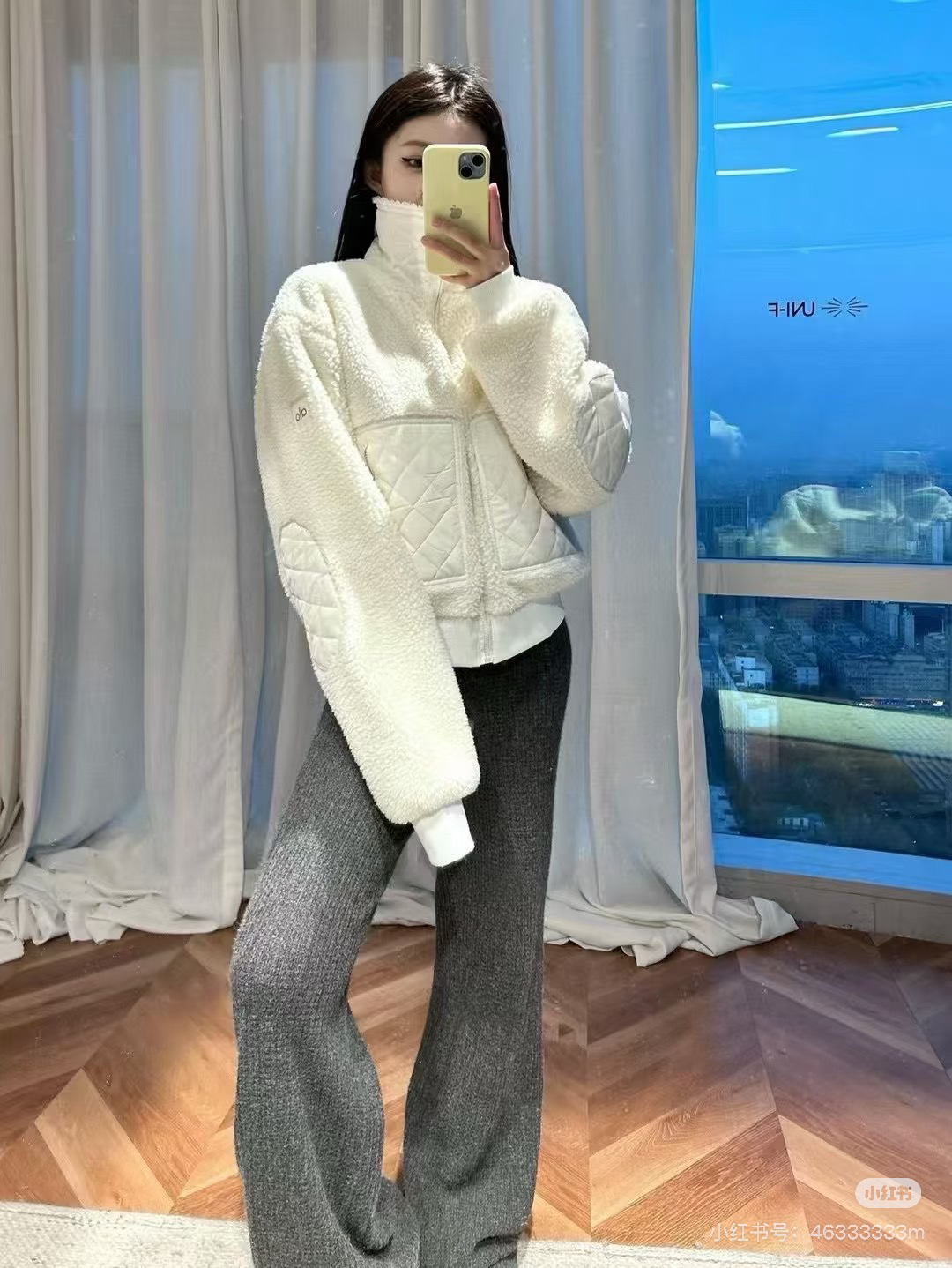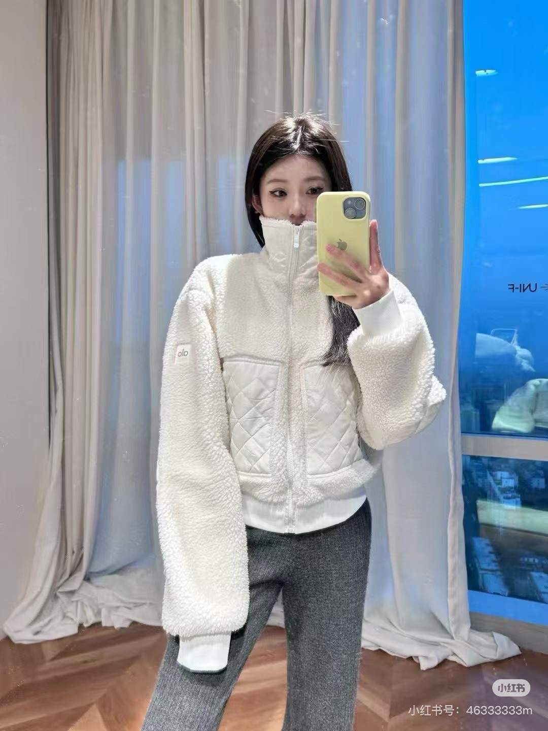 Alo 智秀同款 立领短款 秋冬飞行员 羊羔绒外套