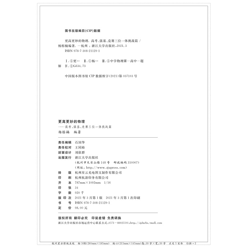 书名:更高更妙的物理——高考、强基、竞赛三位一体挑战篇