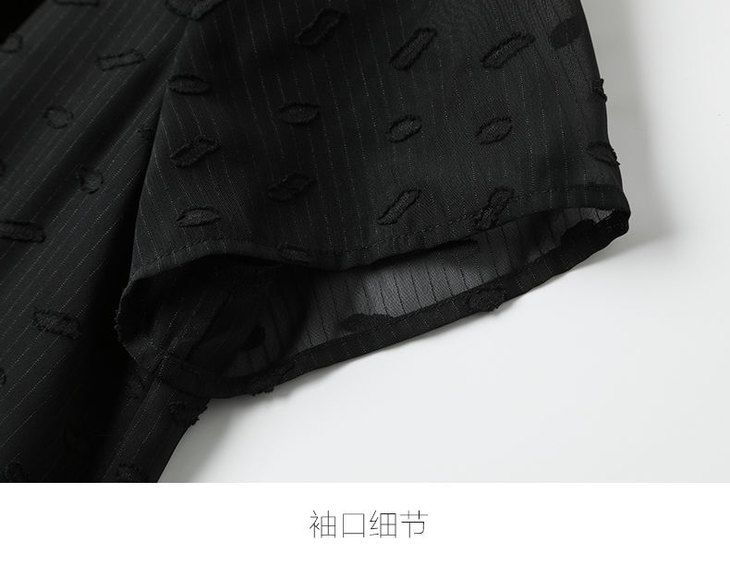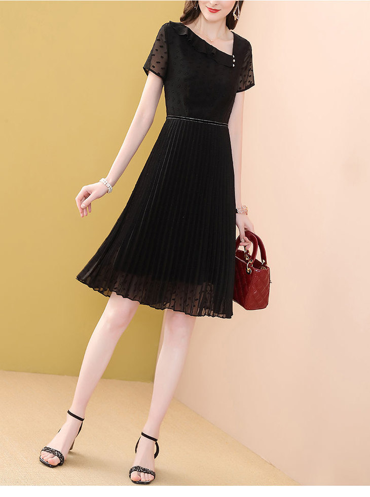 TZW-欧洲站赫本风黑色压褶雪纺连衣裙