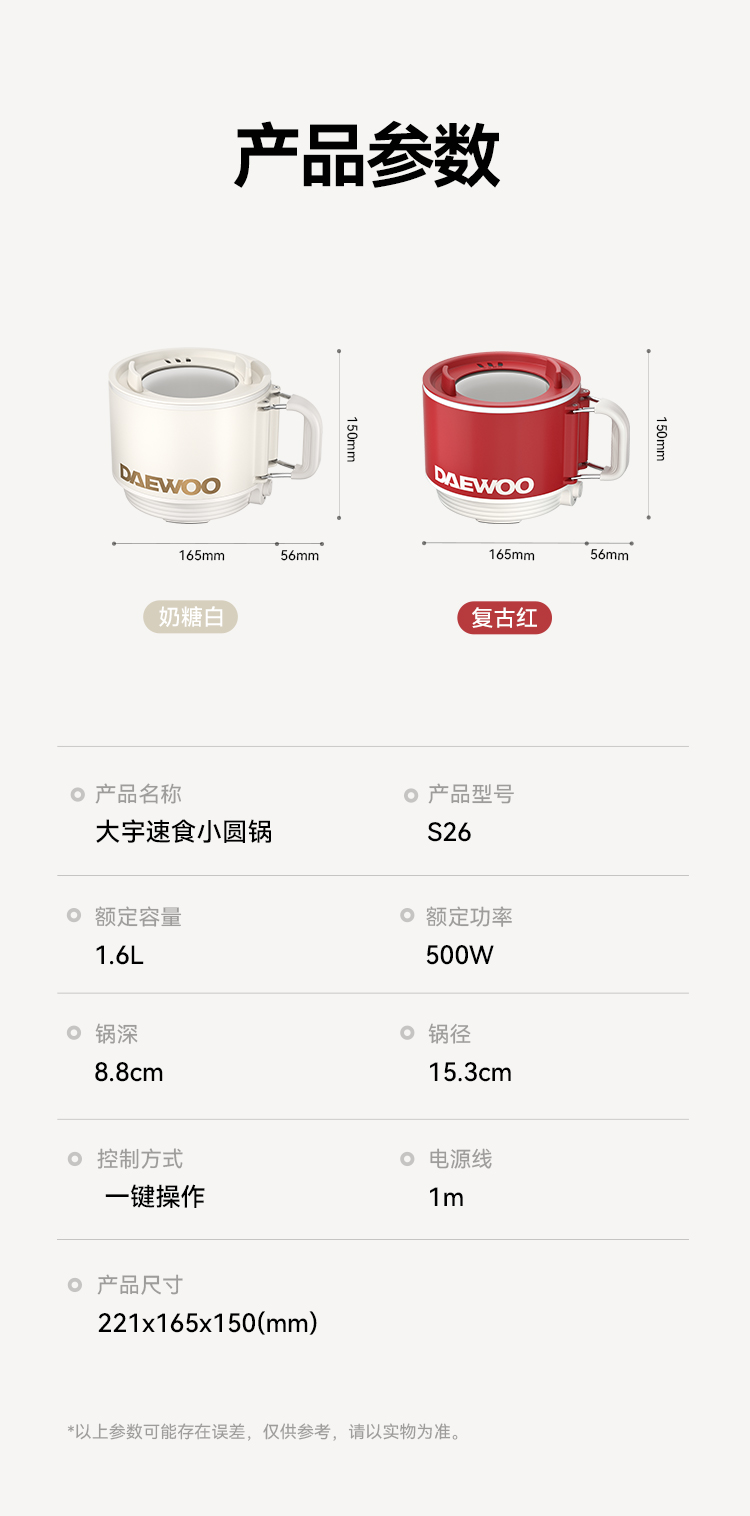大宇电煮锅宿舍家用学生多功能蒸煮一人食S26