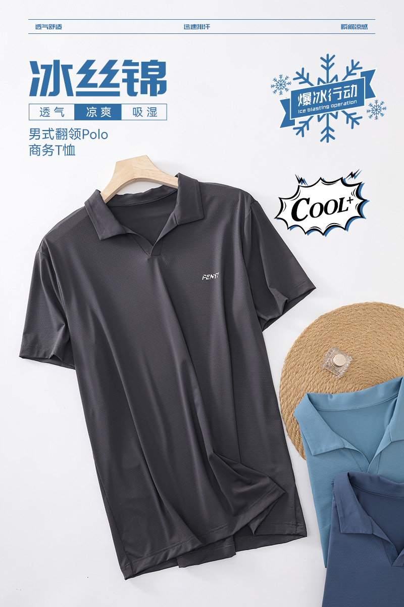 【龙贝莱精选】 男款冰丝锦翻领POLO休闲运动T恤H232051858【现货 同步库存】