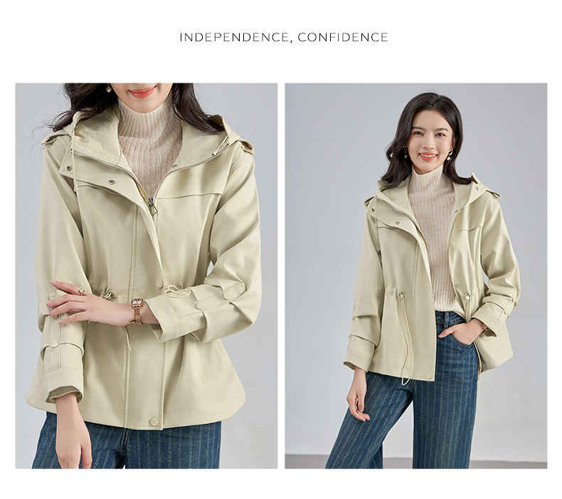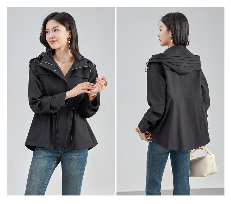 【高货wl】全新升级【铂金会员404/天猫539/差价135】(13314) 洛诗琳短款风衣外套女2024年早秋宽松连帽设计感显瘦外套