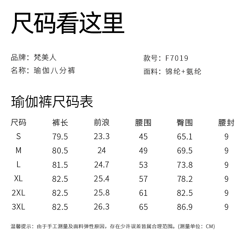 梵美人 F7019 瑜伽八分裤 无松紧 莱卡轻氧