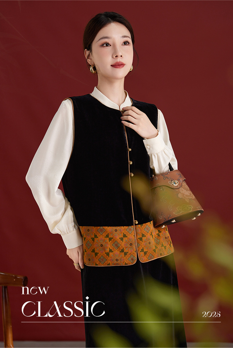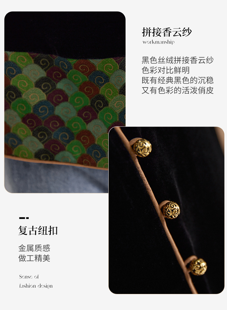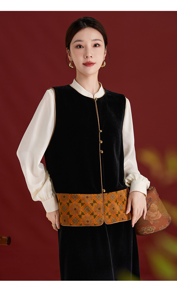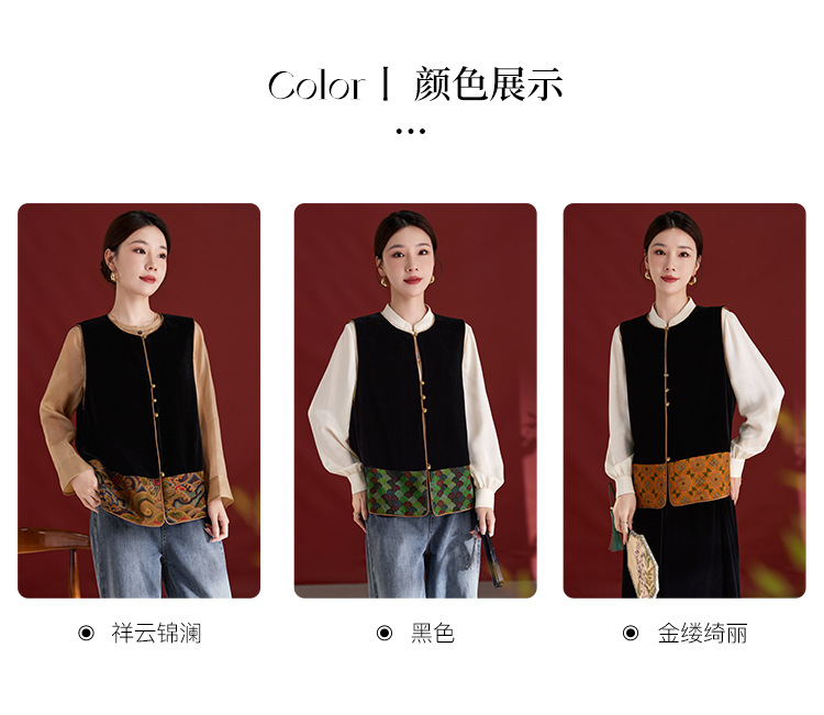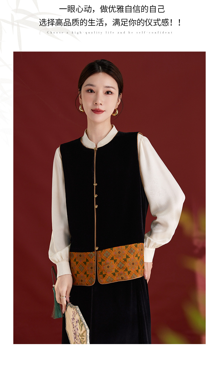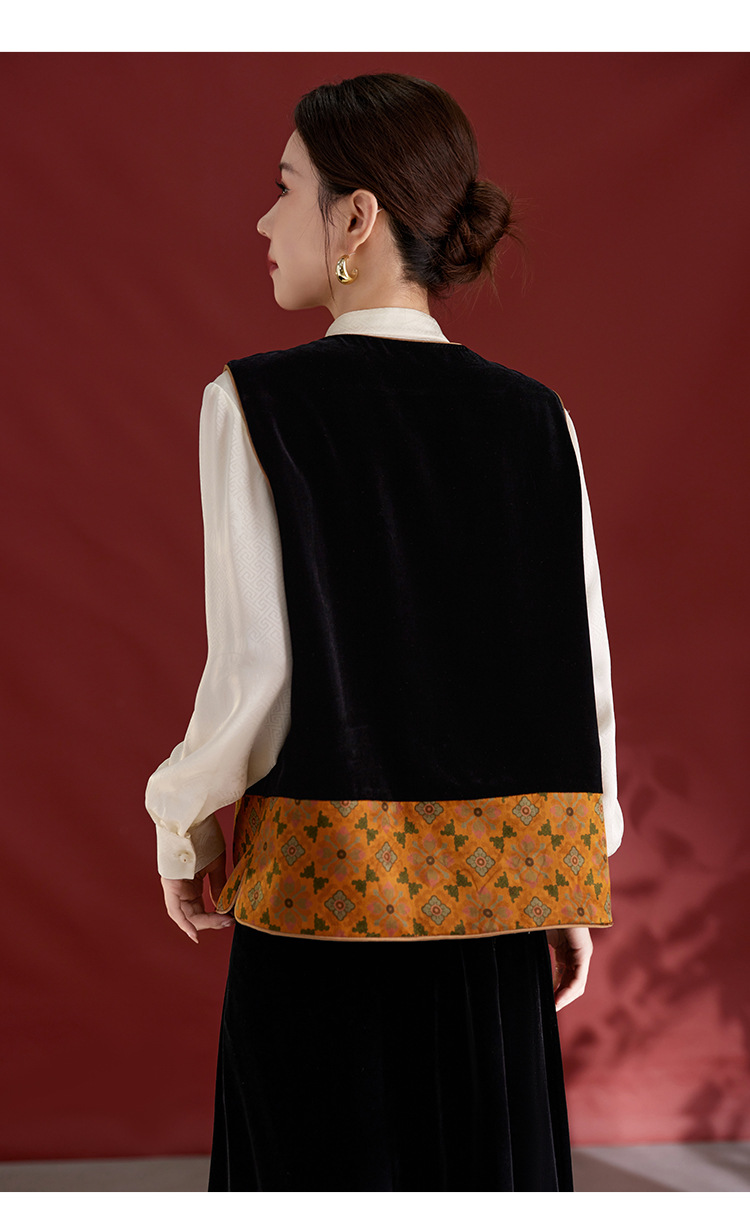 QS真丝丝绒马甲复古新中式原创设计拼接撞色百搭香云纱马甲女1737