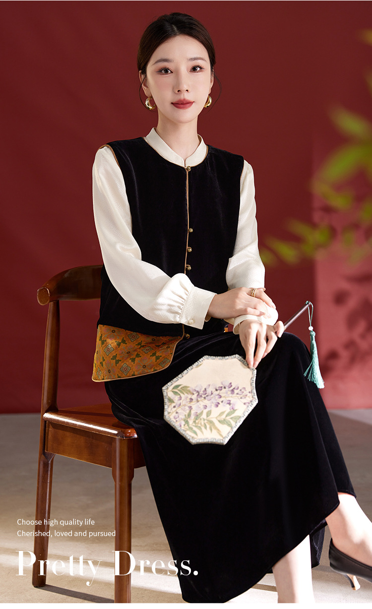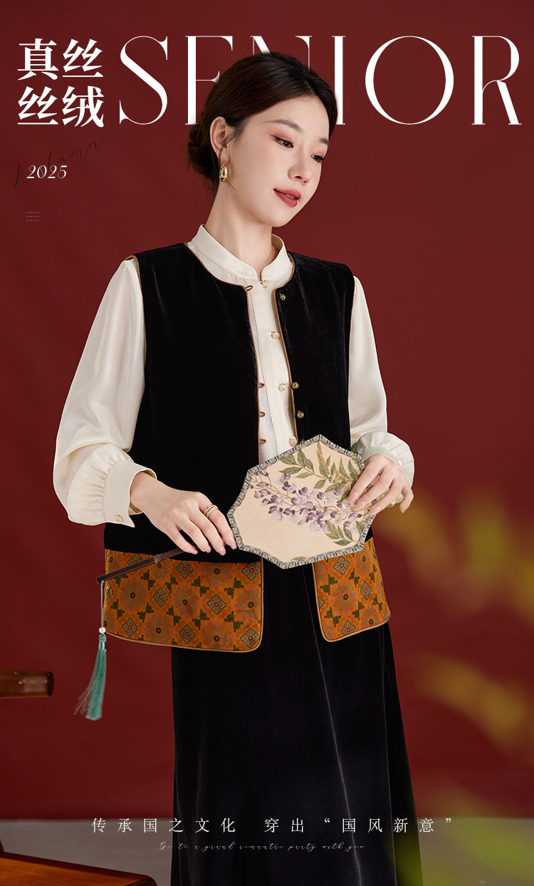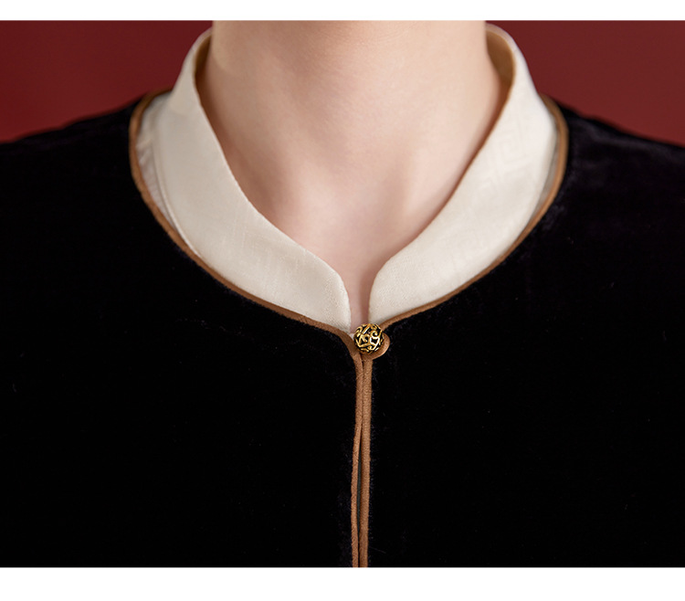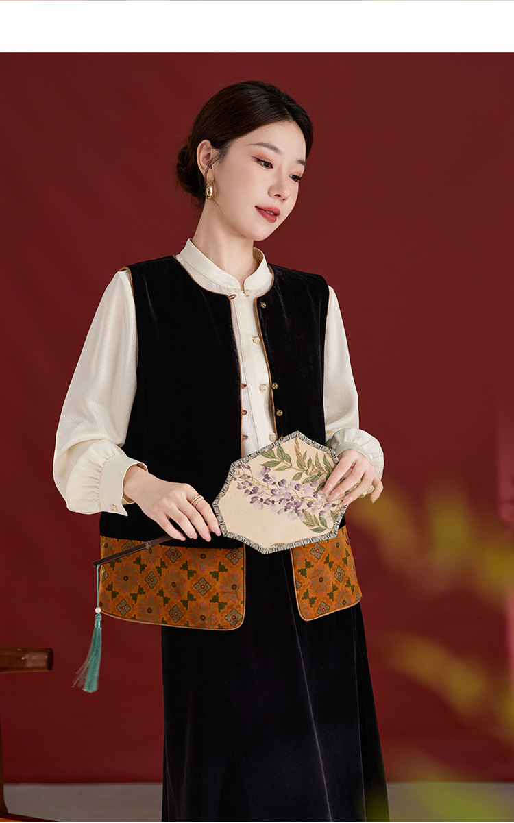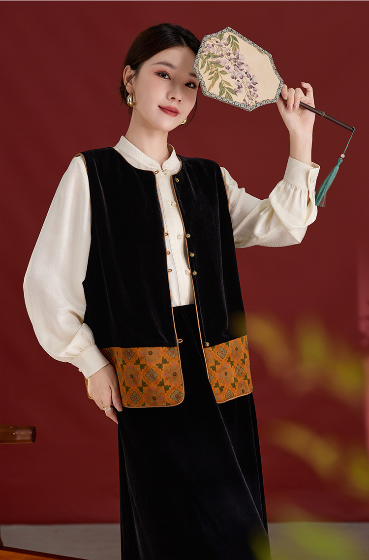 QS真丝丝绒马甲复古新中式原创设计拼接撞色百搭香云纱马甲女1737