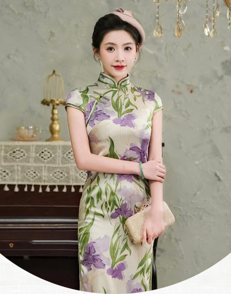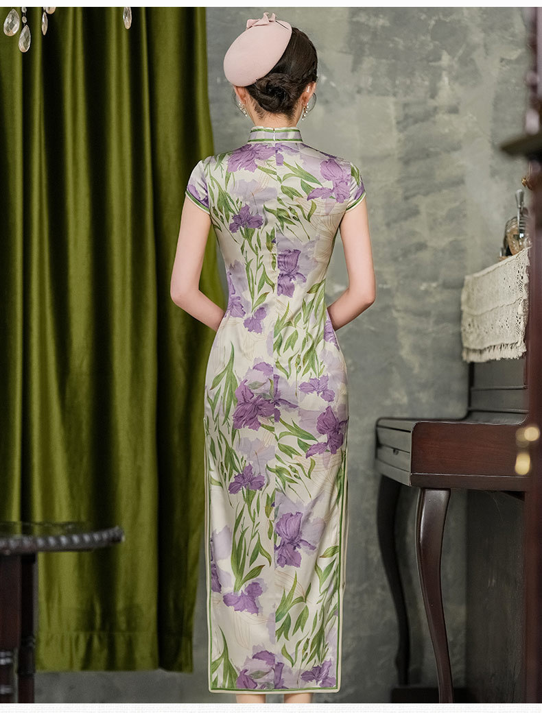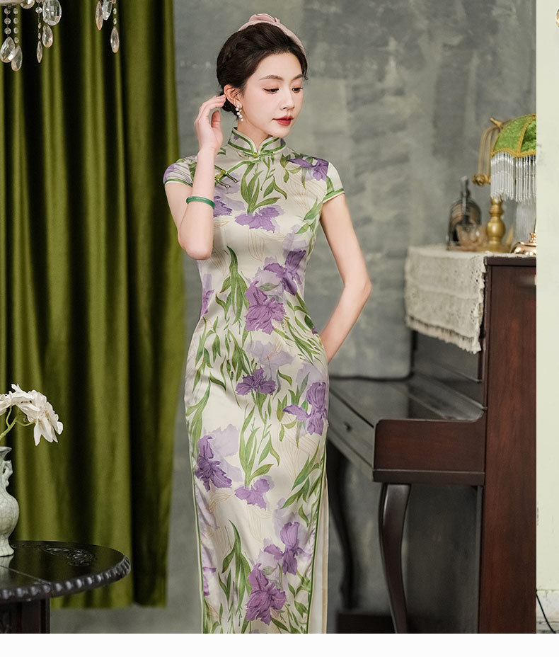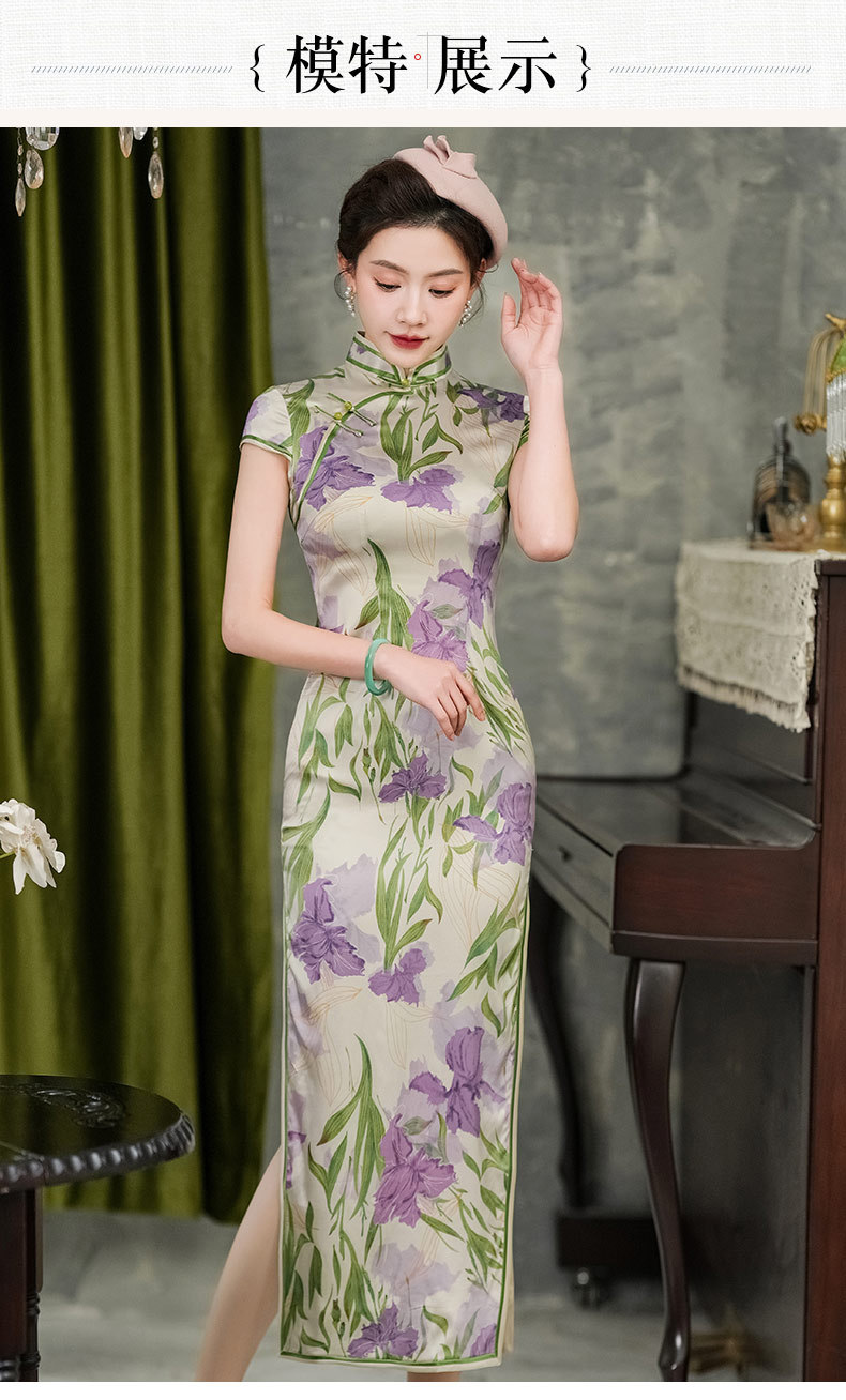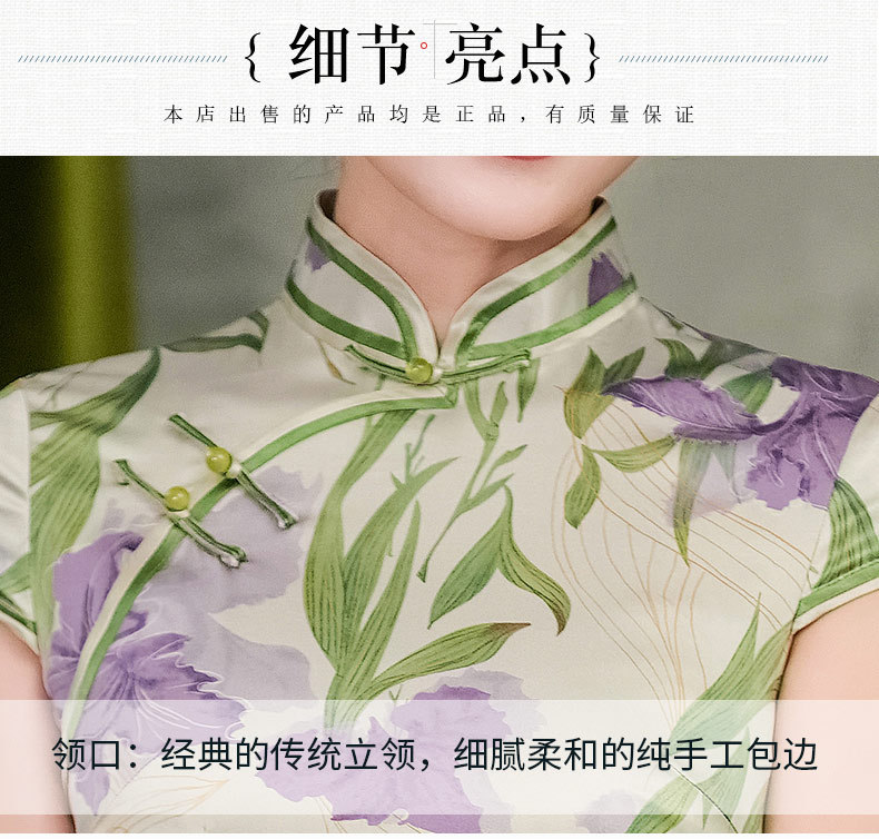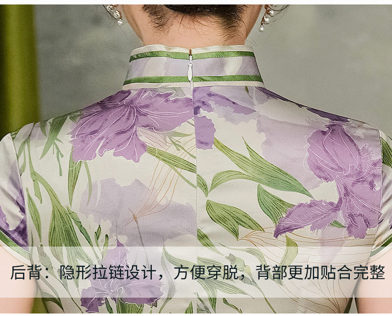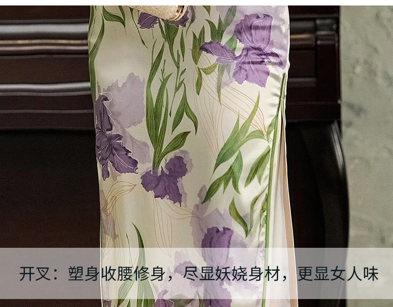 WX-C-69新款真丝旗袍年轻款高端气质长款改良版桑蚕丝连衣裙