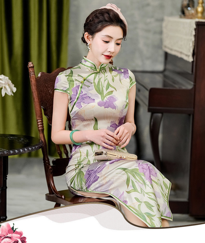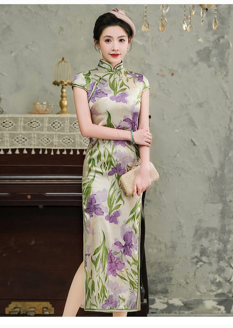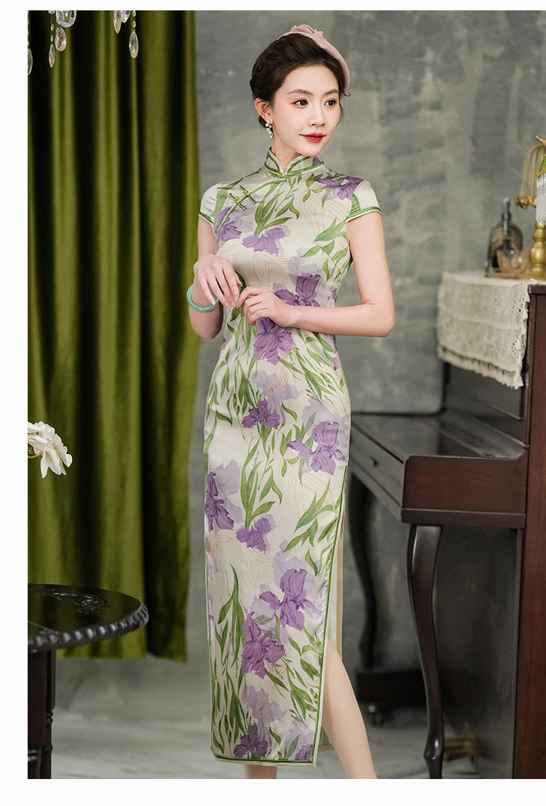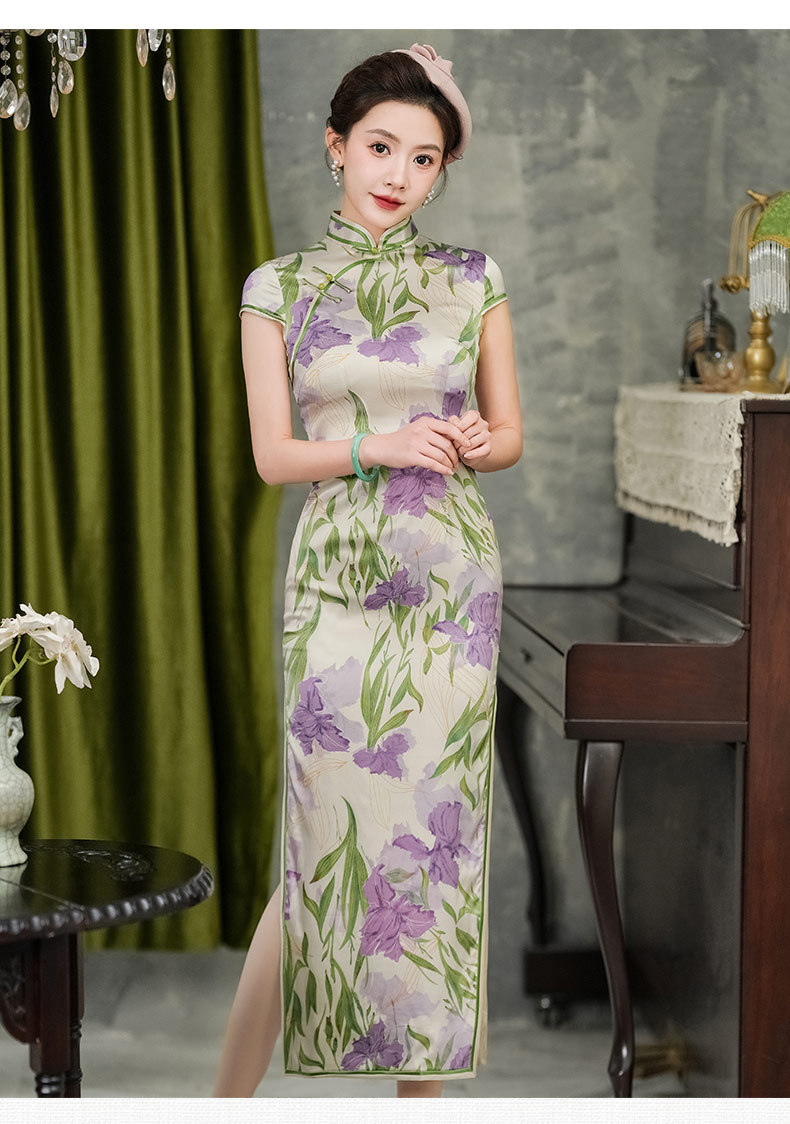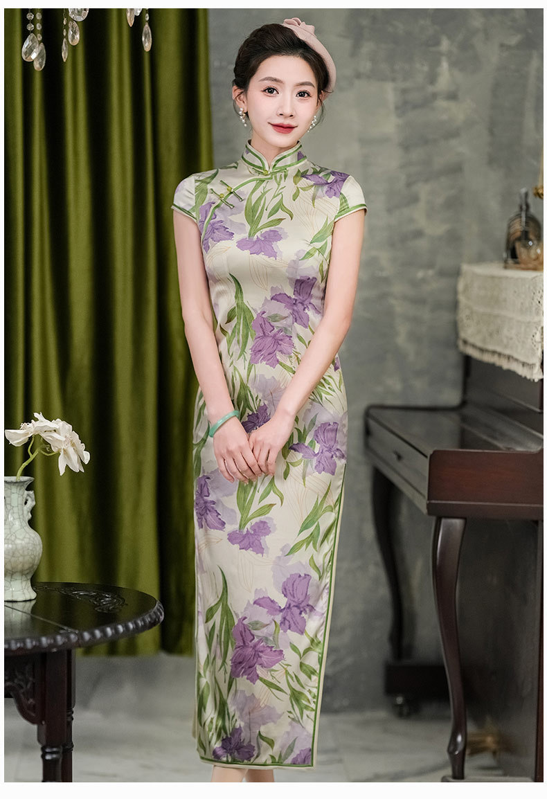 WX-C-69新款真丝旗袍年轻款高端气质长款改良版桑蚕丝连衣裙