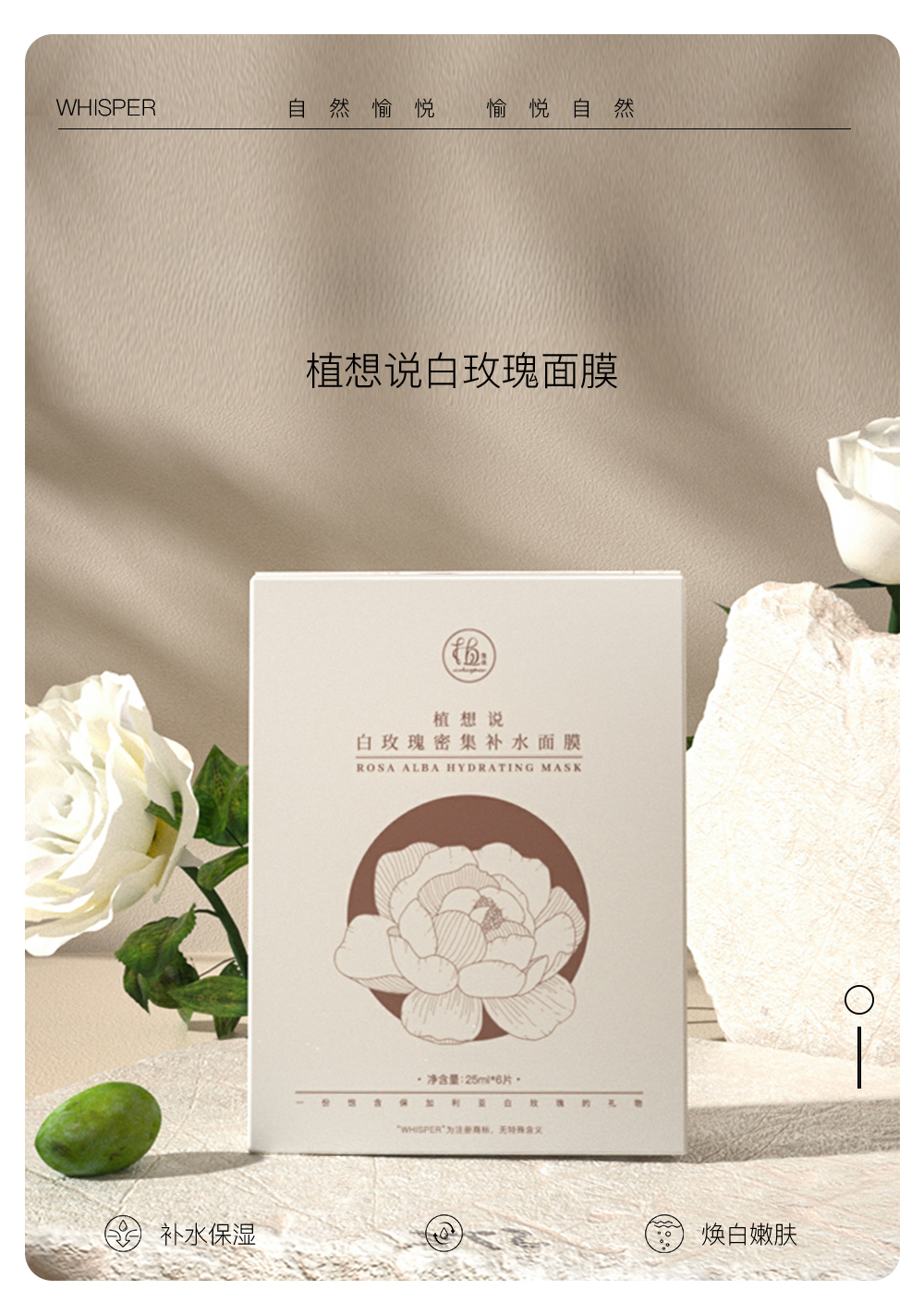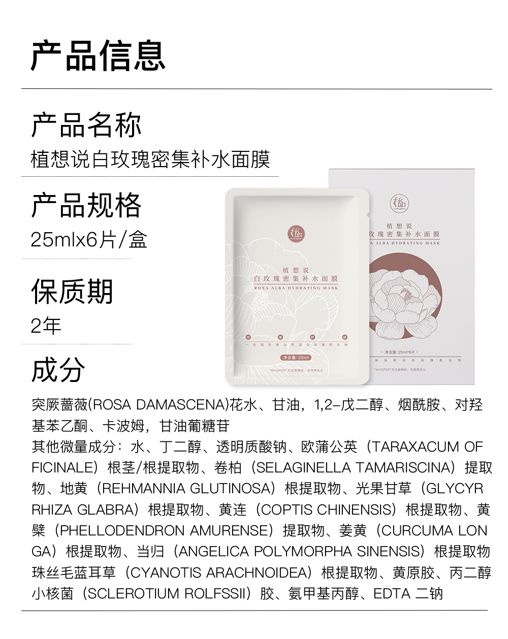 白玫瑰密集补水面膜 | 25ml*6片装 保湿补水舒缓 植想说【买2送1】