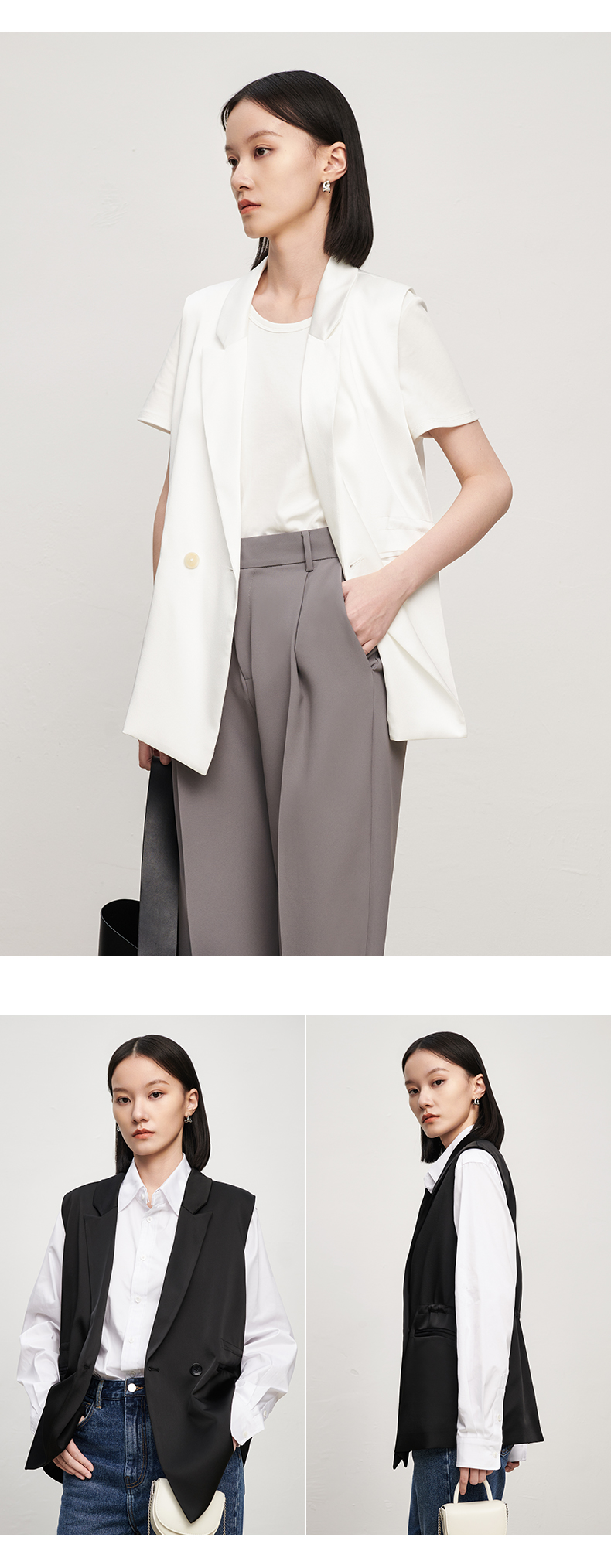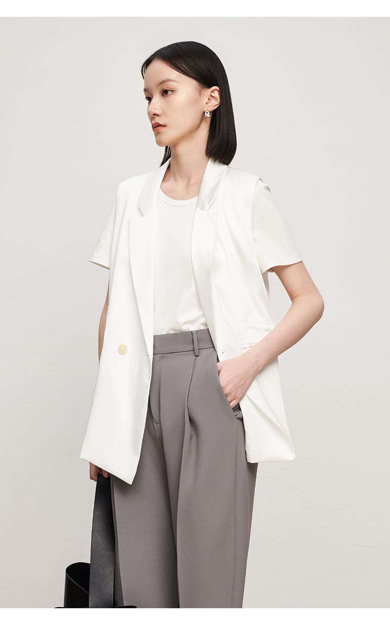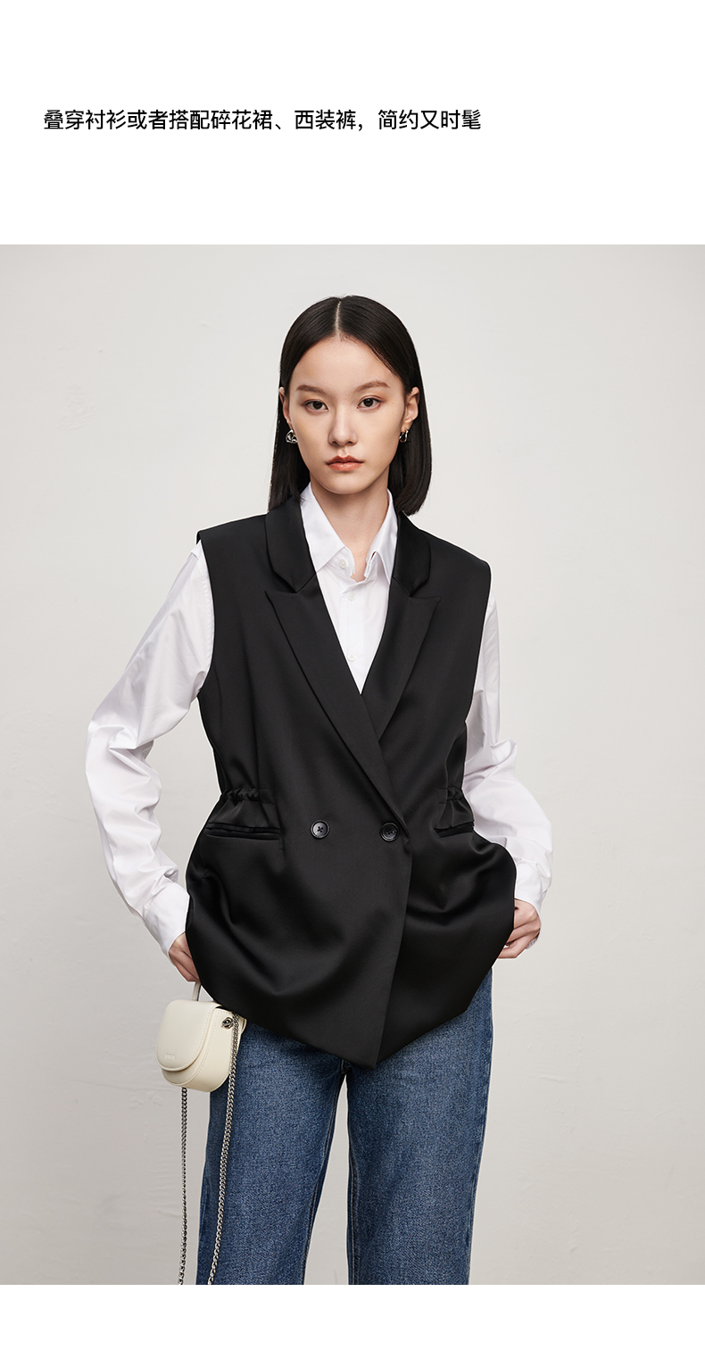21434 高阶丝缎西装马夹百搭松紧腰通勤无袖外套RJ004