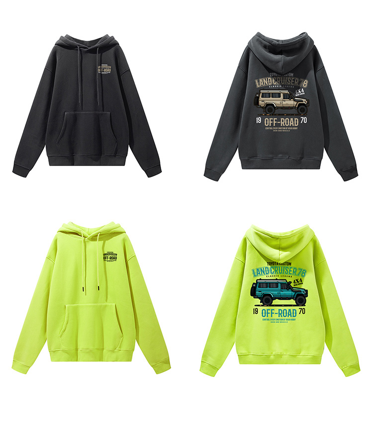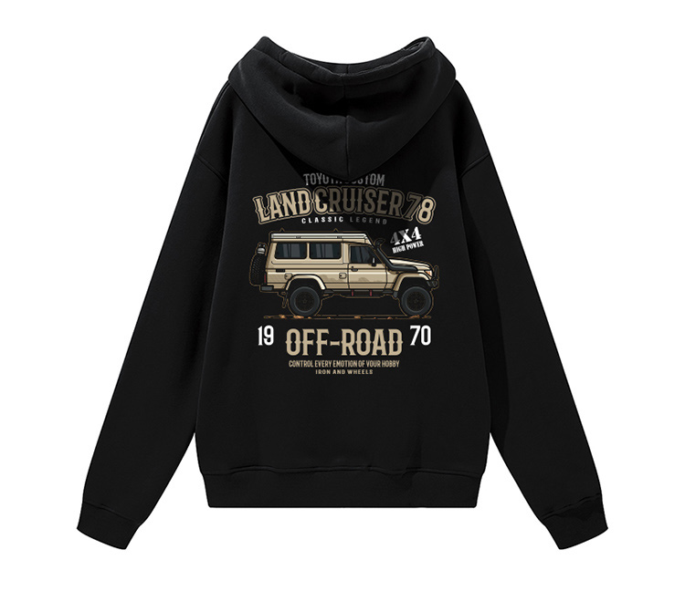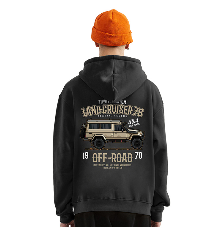 丰田LC系列经典越野车图案带帽抓绒套头卫衣oversize版型个性休闲款NMT-1719