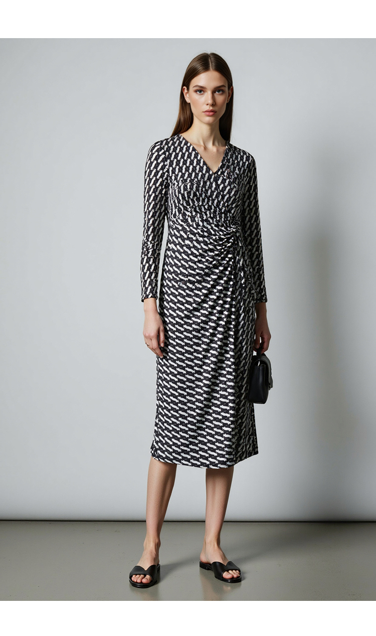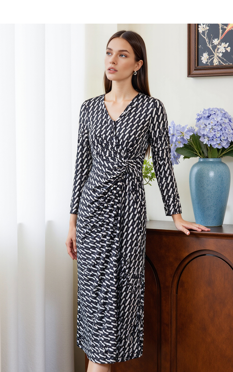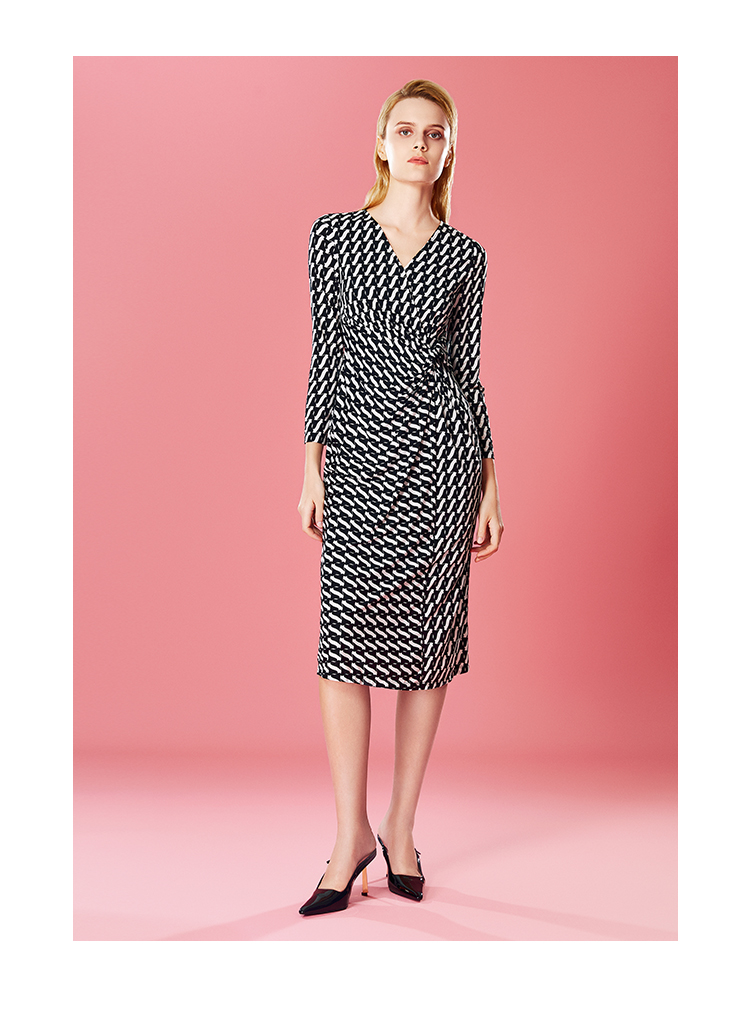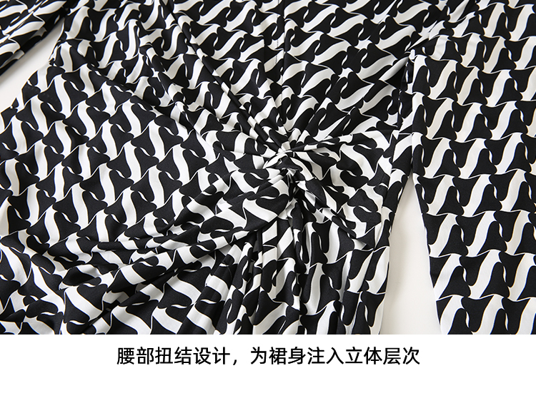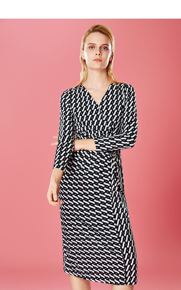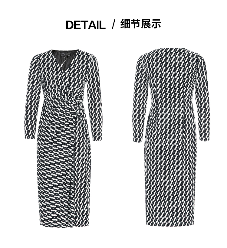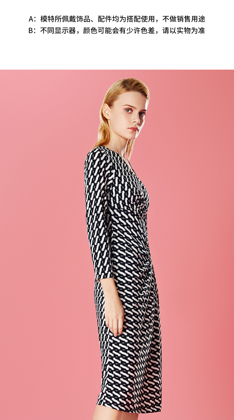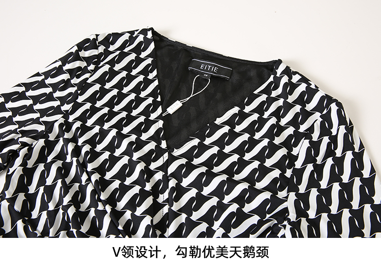 EITIE爱特爱优雅法式V领收腰气质印花连衣裙秋季新款7907618