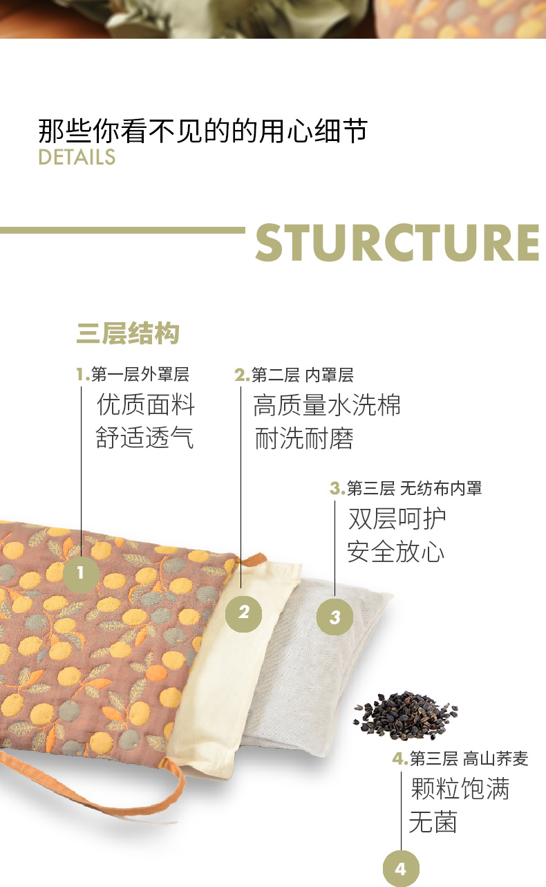 海棠果荞麦枕圆柱颈枕学生儿童荞麦枕