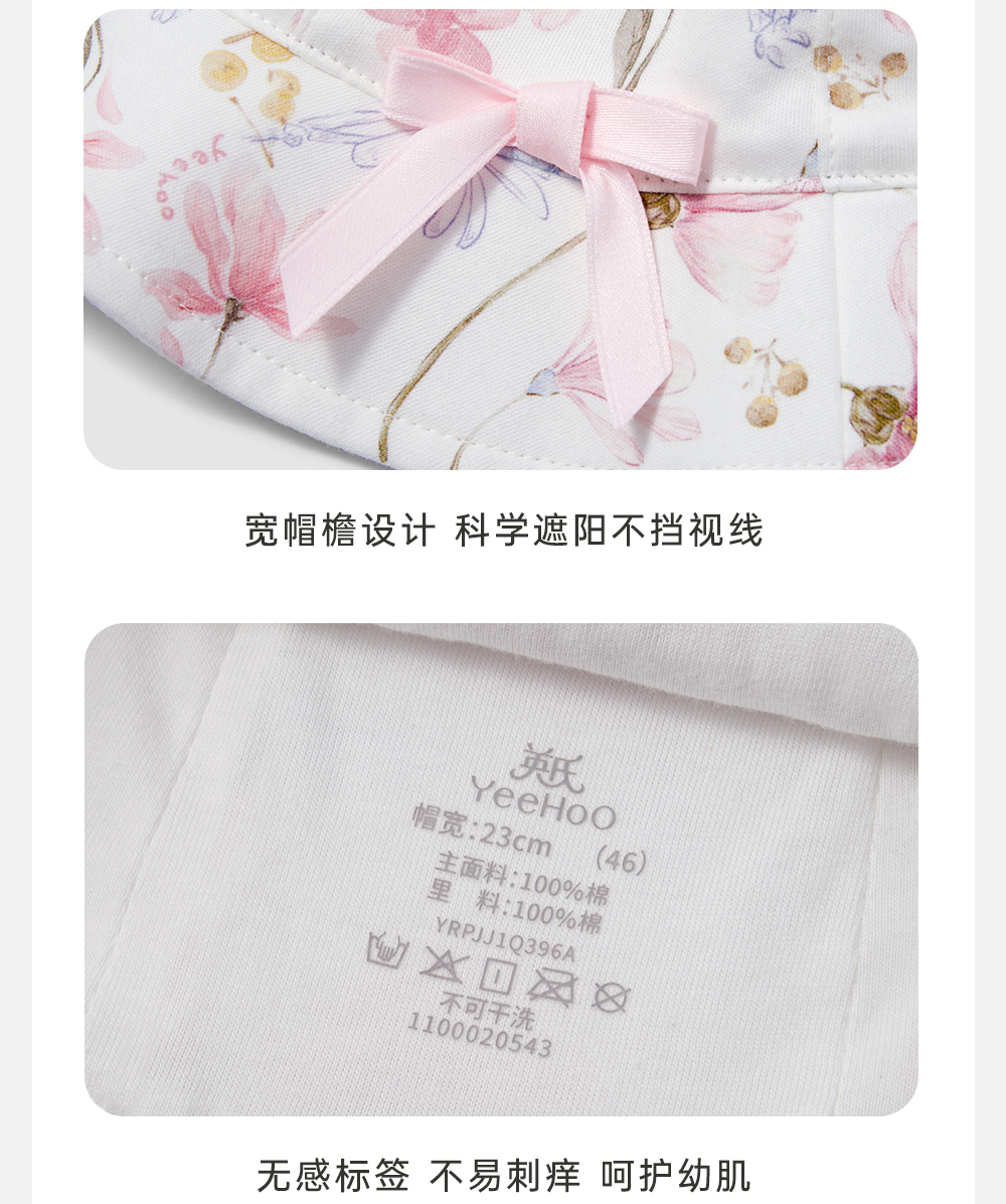 【商场同款】英氏女宝宝可爱遮阳帽子纯棉渔夫帽春夏外出帽子新款