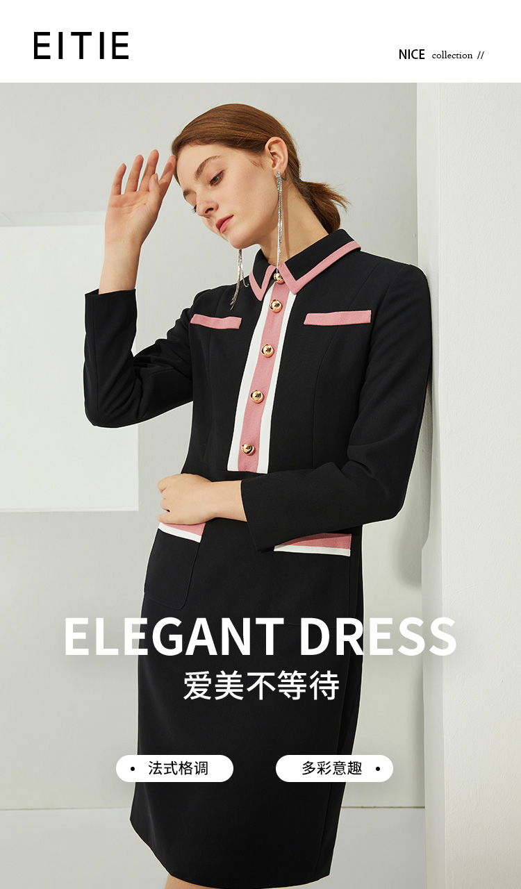 EITIE爱特爱品牌女装冬季修身OL风格长袖纯色针织衫女5801511