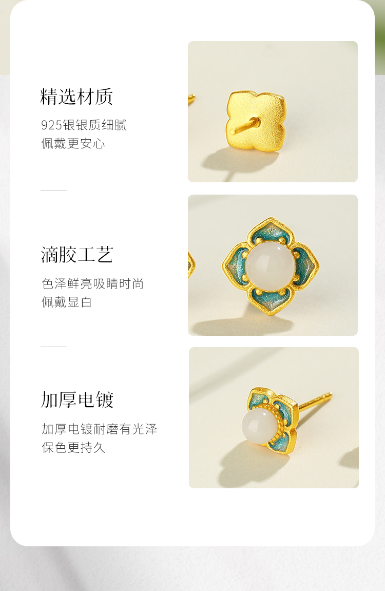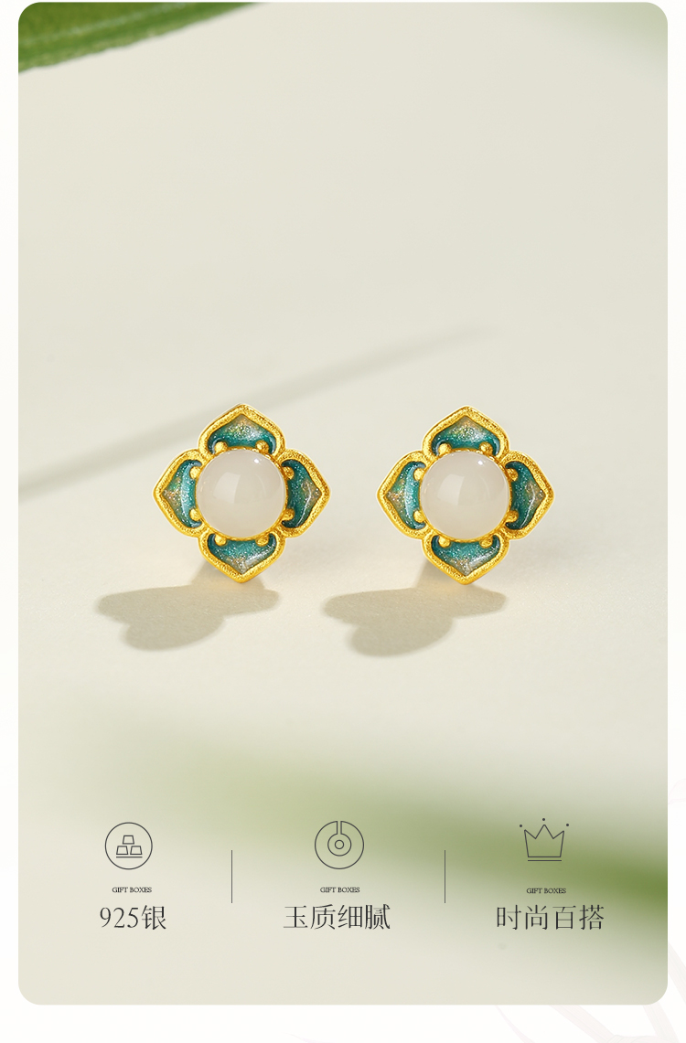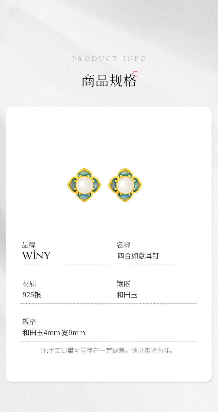 Winy925纯银四合如意耳钉送女友闺蜜节日生日礼物