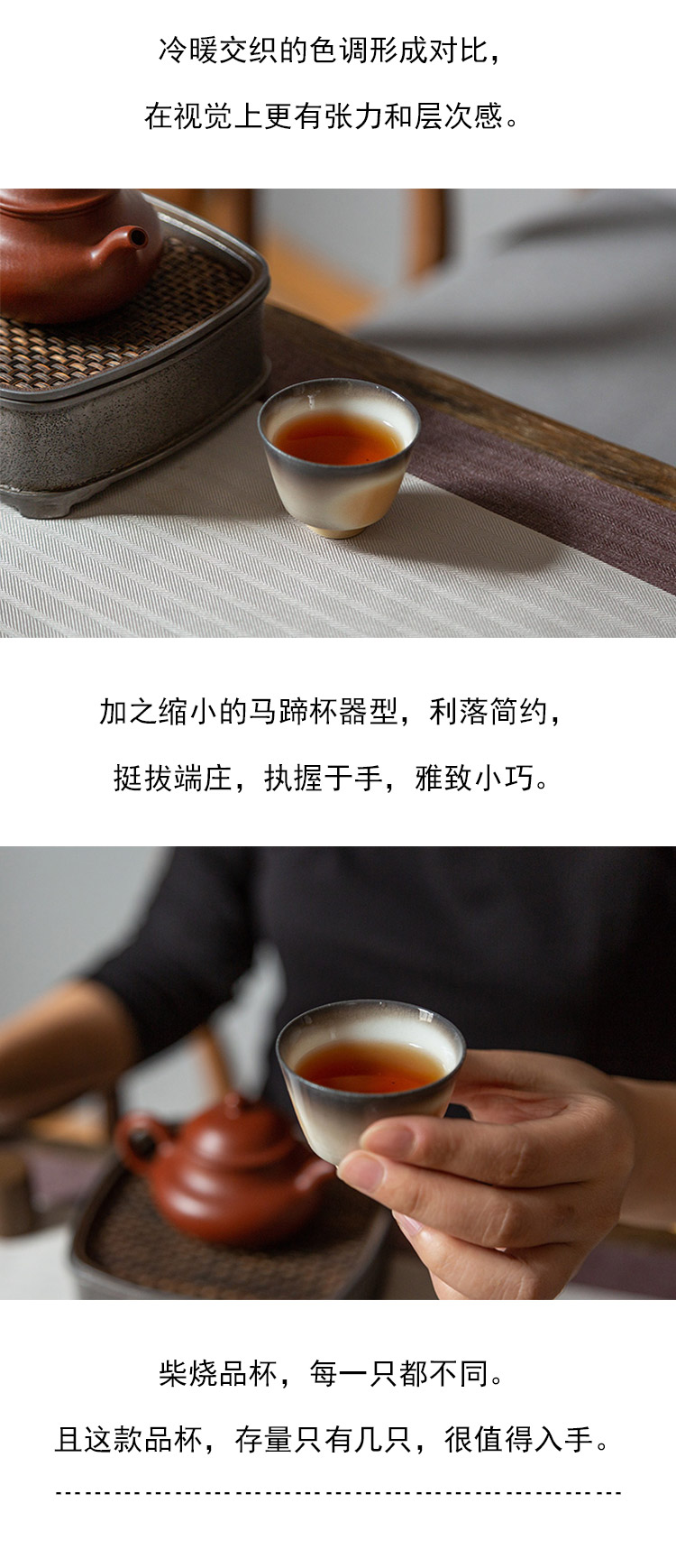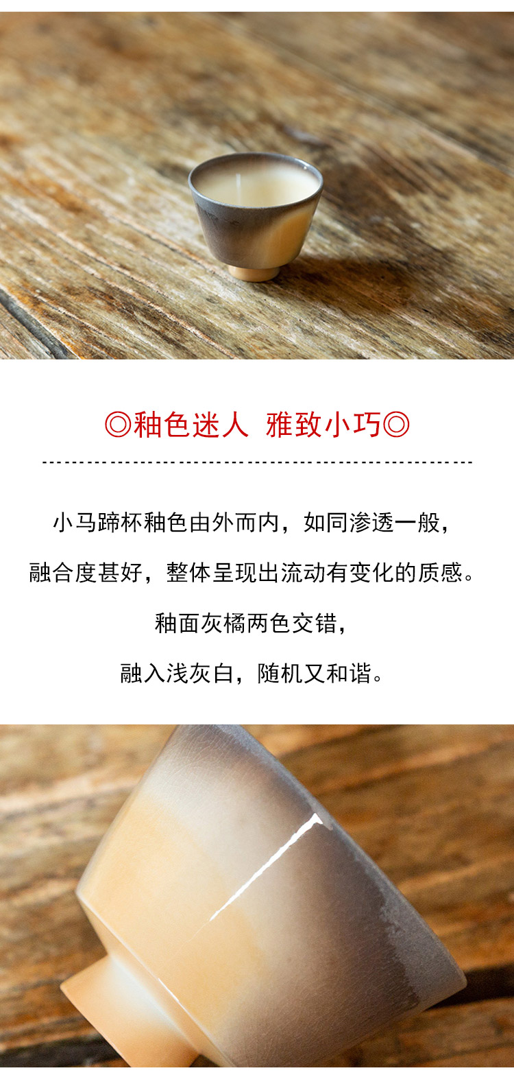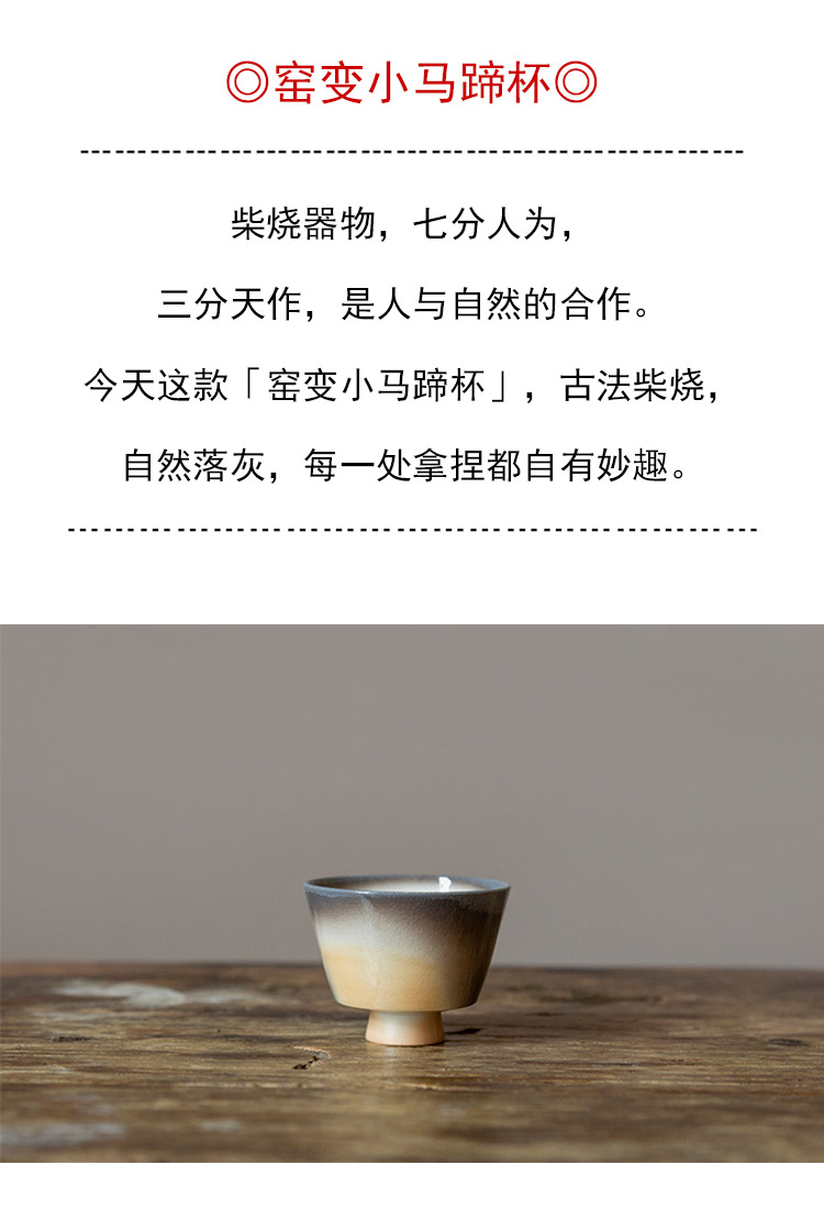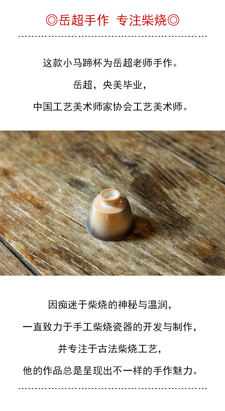 茶香记 景德镇岳超柴烧窑变小马蹄杯40ml陶瓷茶杯主人杯自然随机