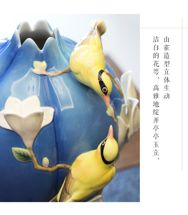 【彼达思】法蓝瓷 FZ03466自然 霓裳圆舞曲 玉兰花瓷瓶