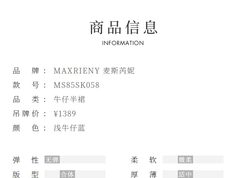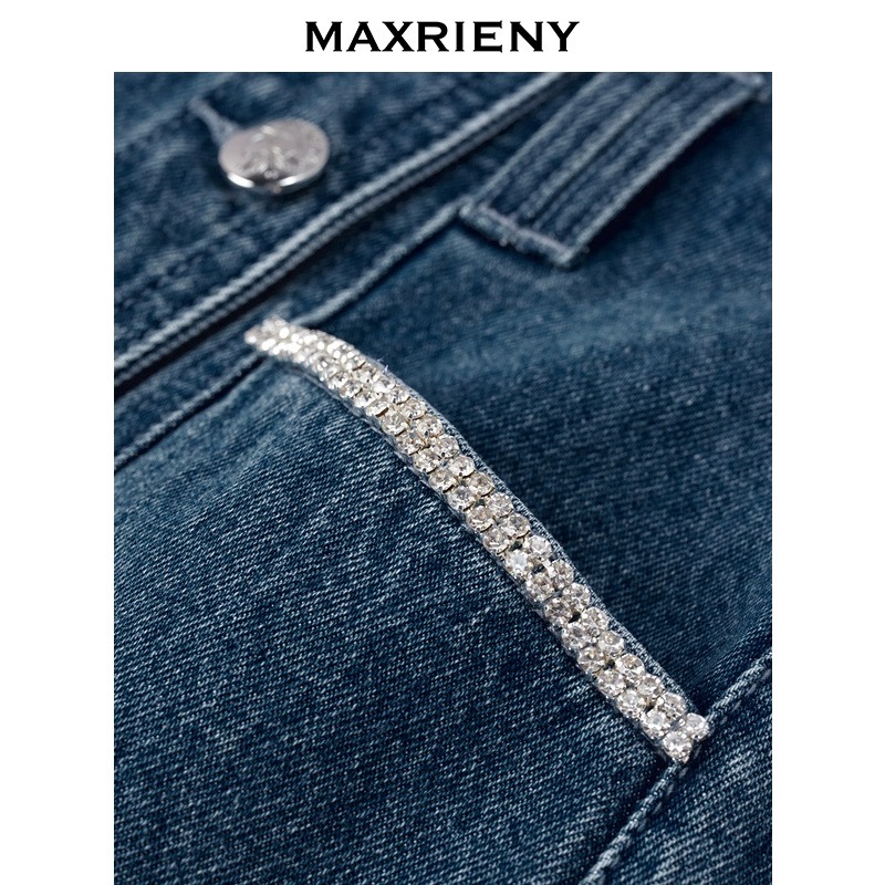 【奥莱】MAXRIENY高腰斜开叉牛仔长裙春季直筒裙MS85SK058B10