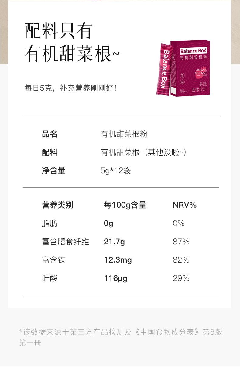 有机甜菜根粉 | 5g*12袋/盒 健身即冲即饮蔬菜粉 烘焙伴侣 下午茶 便携装 均衡小站