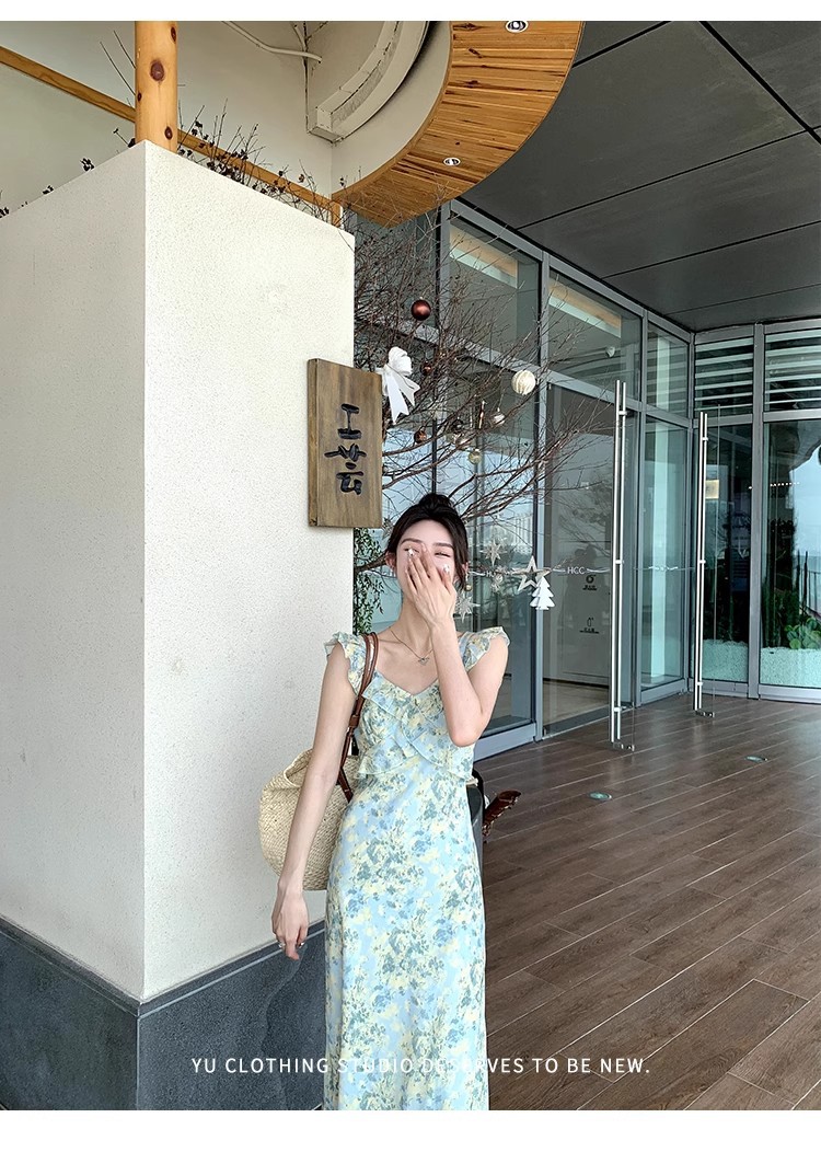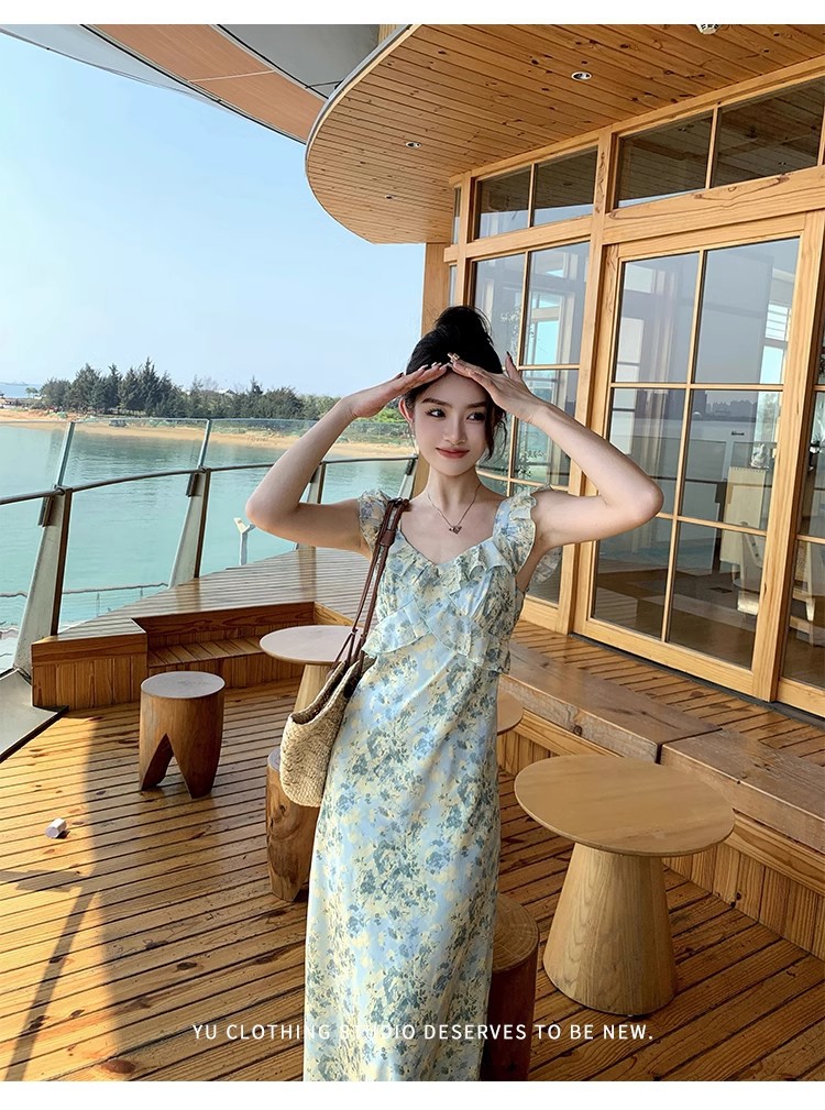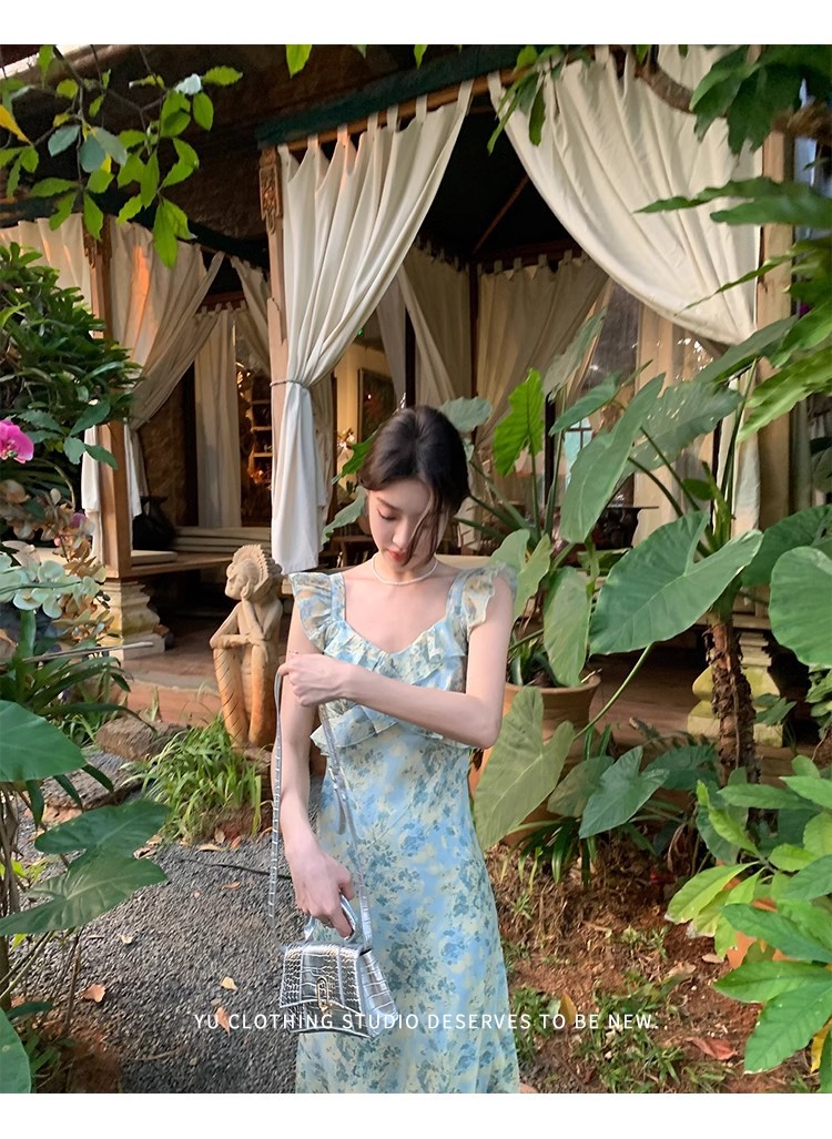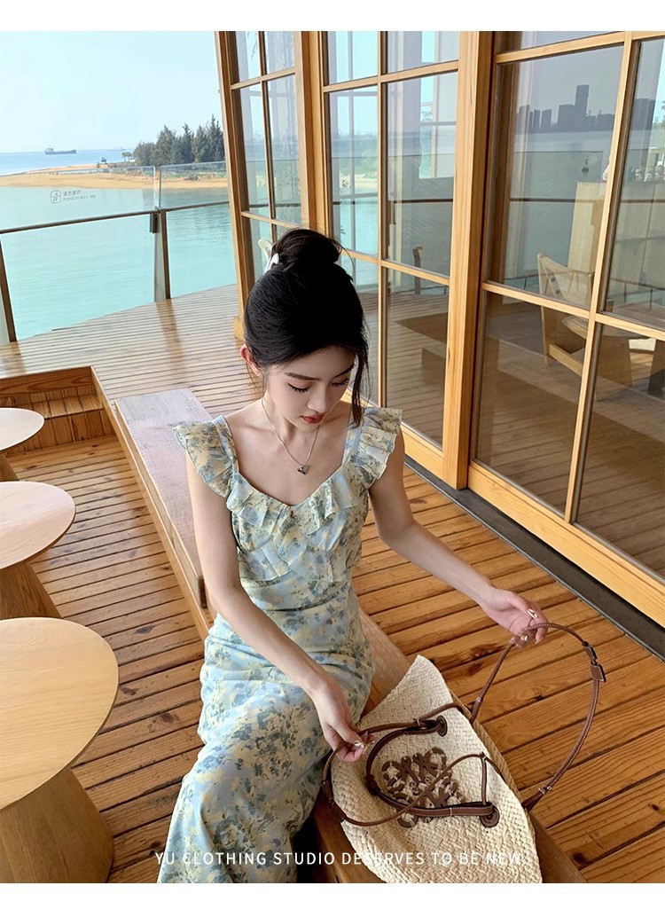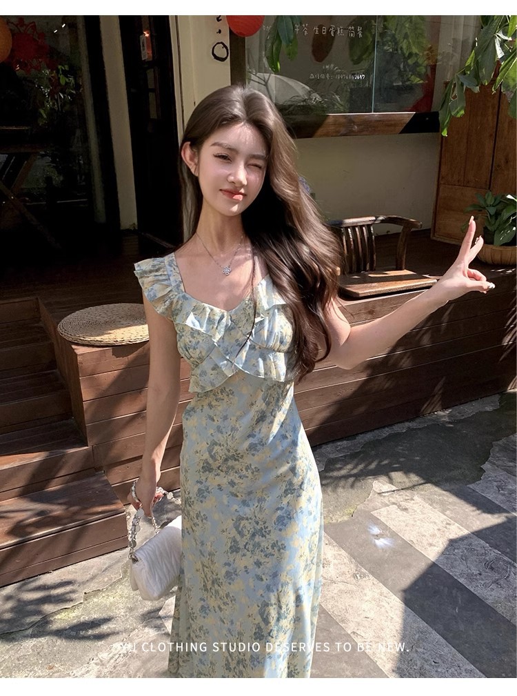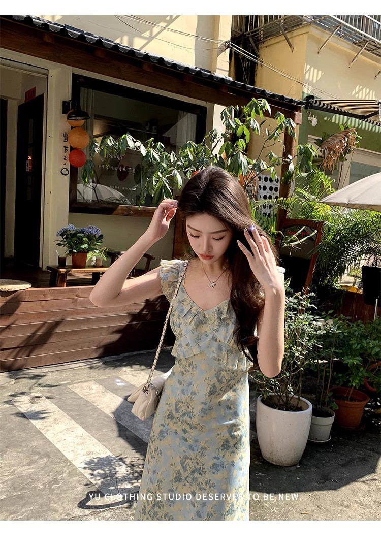 夏日【甜美小飞袖碎花裙】温柔风连衣裙 夏小众气质修身荷叶边a字长裙