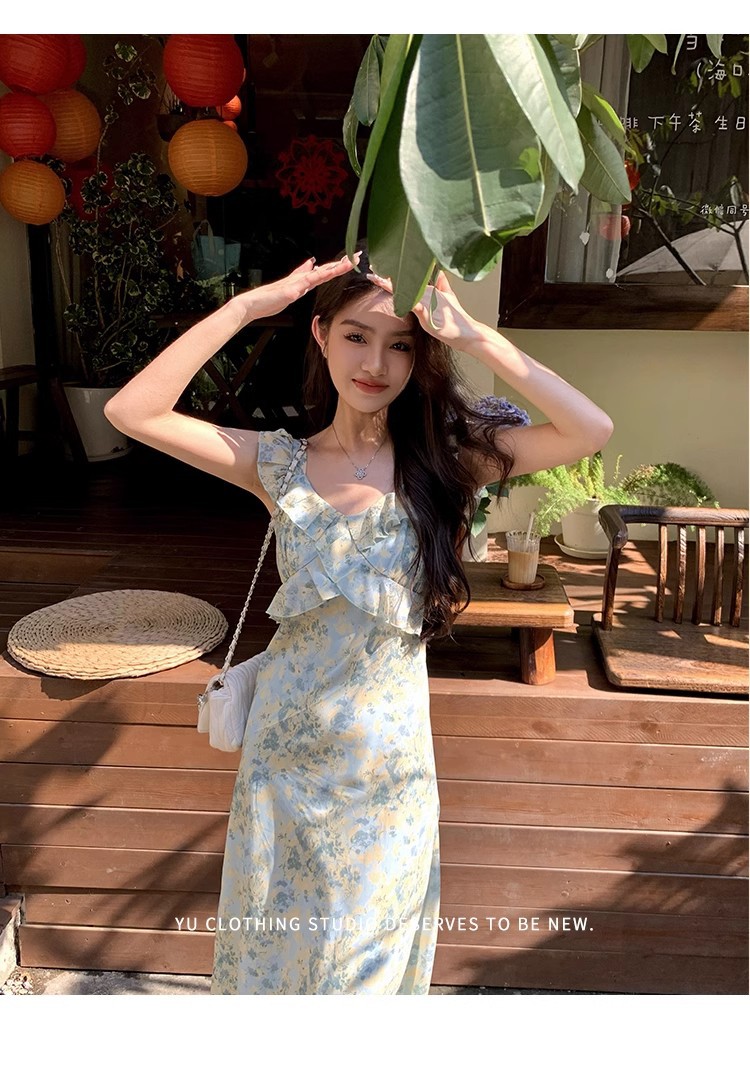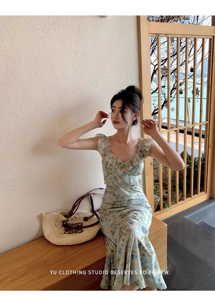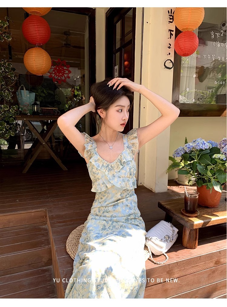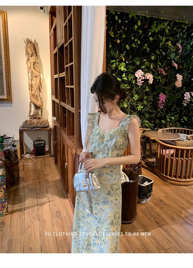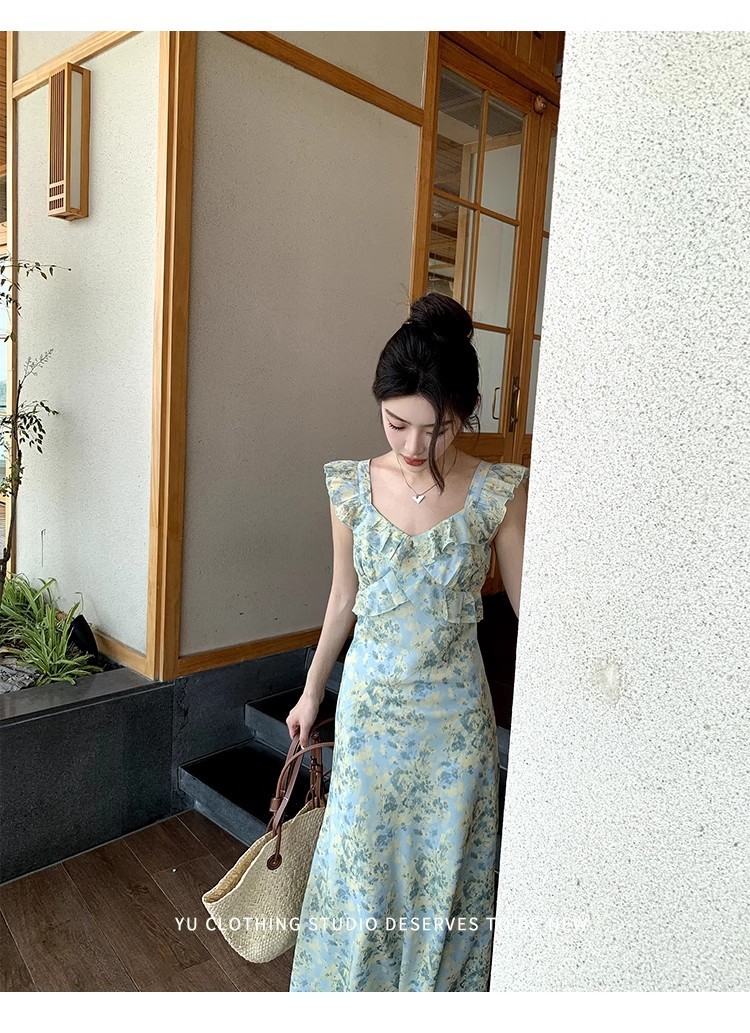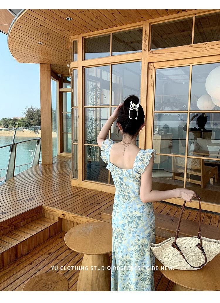 夏日【甜美小飞袖碎花裙】温柔风连衣裙 夏小众气质修身荷叶边a字长裙