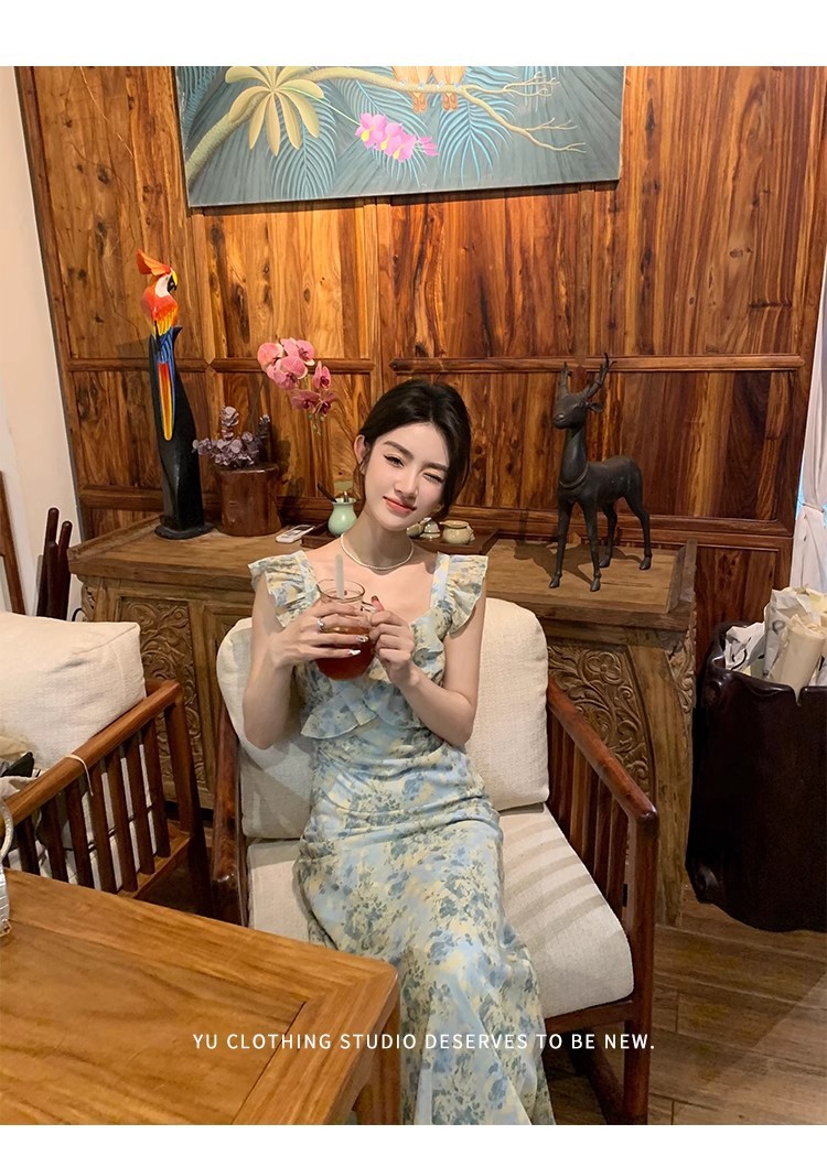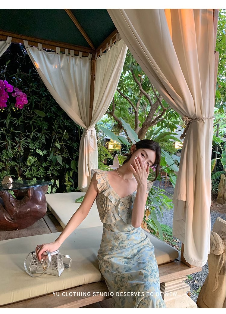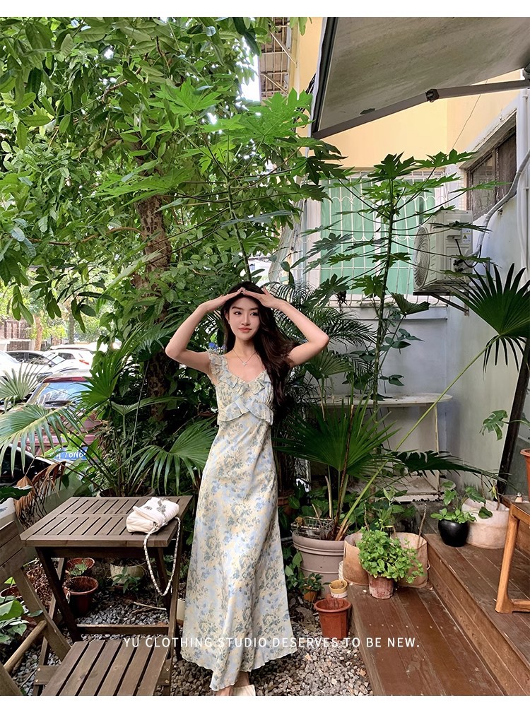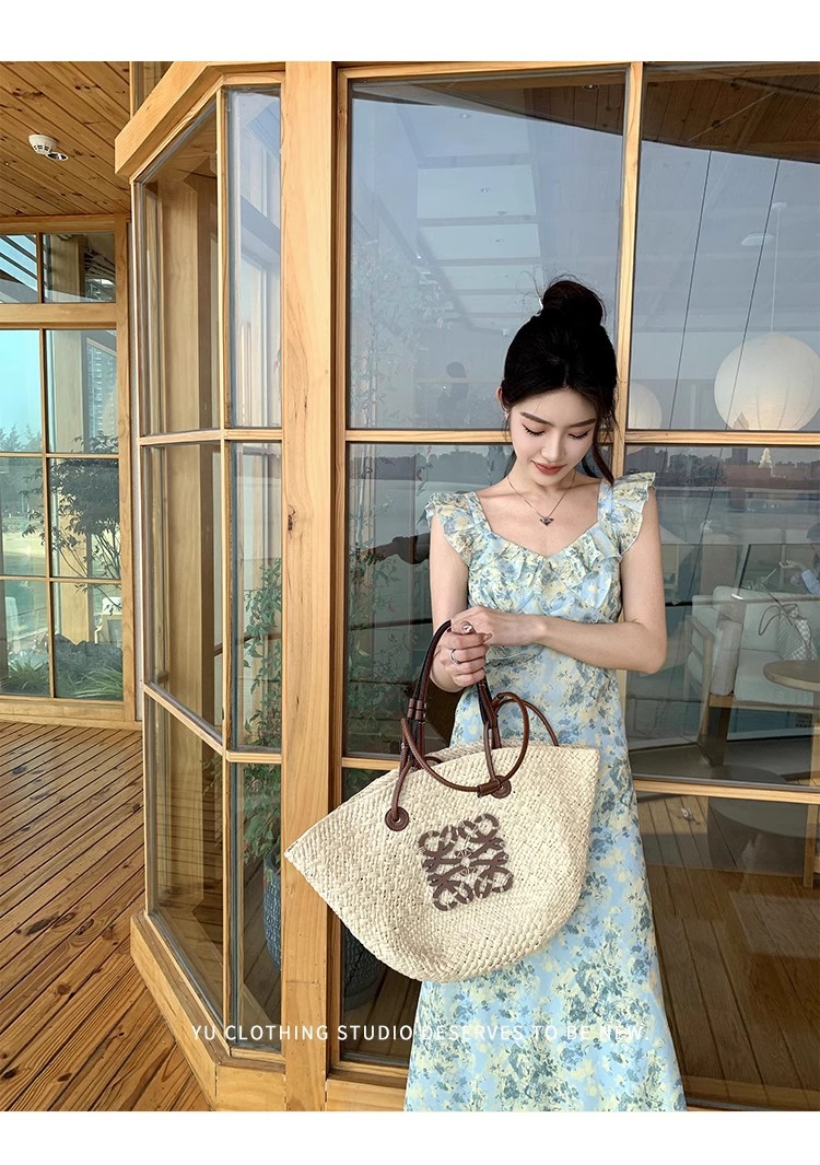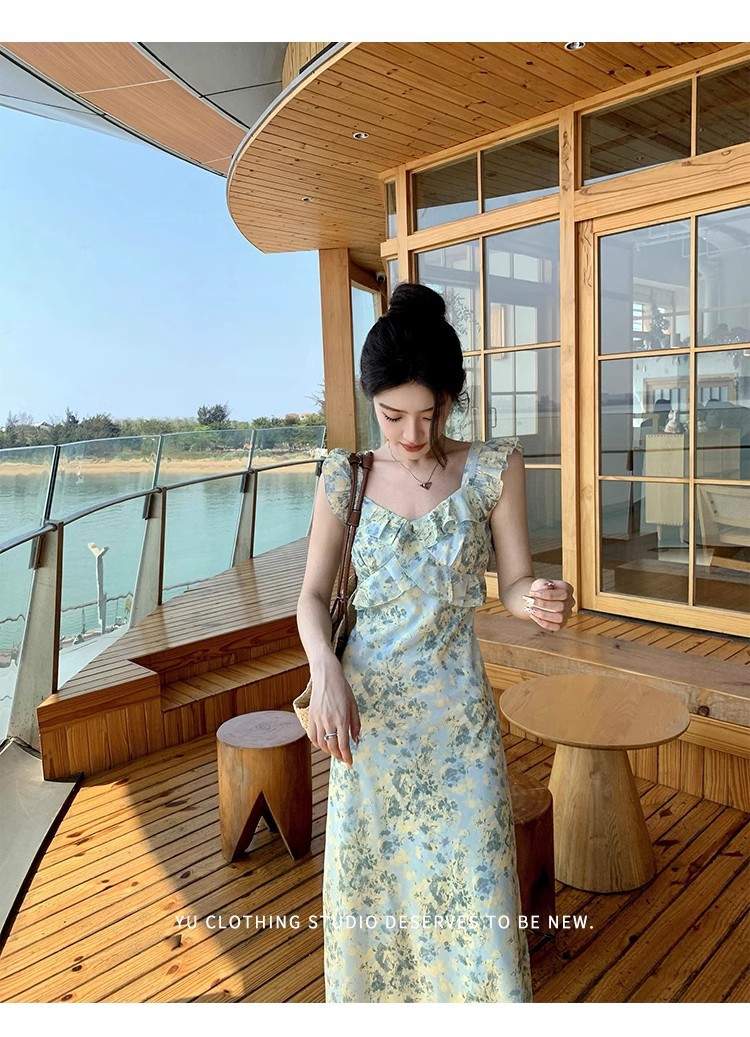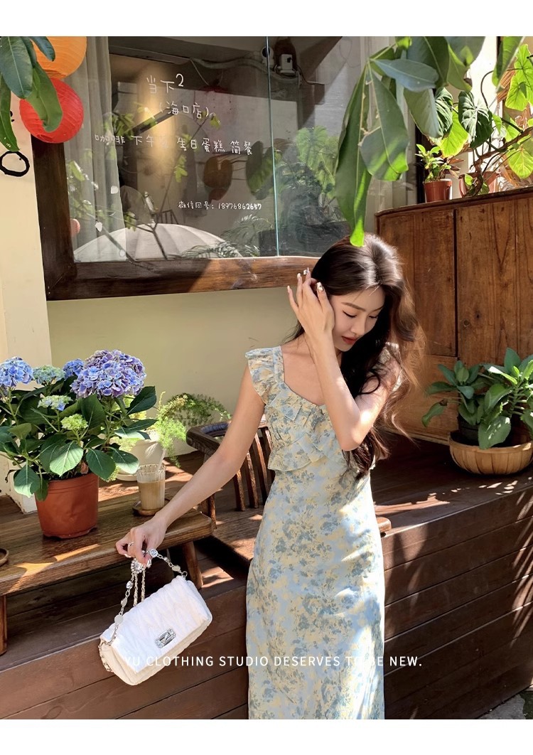 夏日【甜美小飞袖碎花裙】温柔风连衣裙 夏小众气质修身荷叶边a字长裙