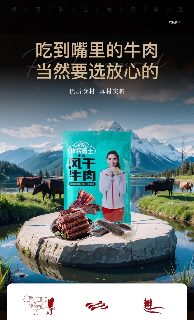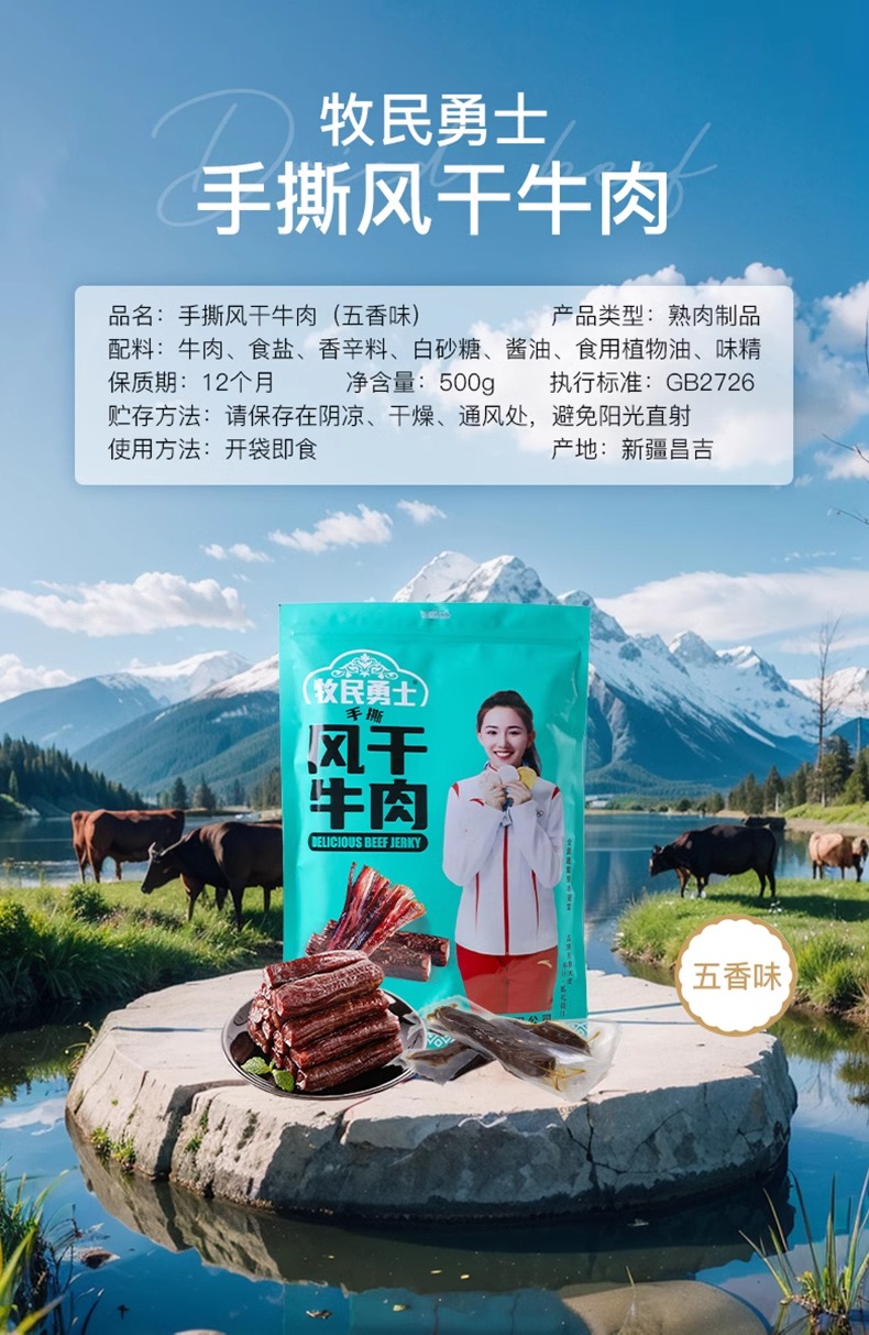 牧民勇士·手撕风干牛肉五香味 500g 选用牛肉后腿肉 肉质紧实有嚼劲