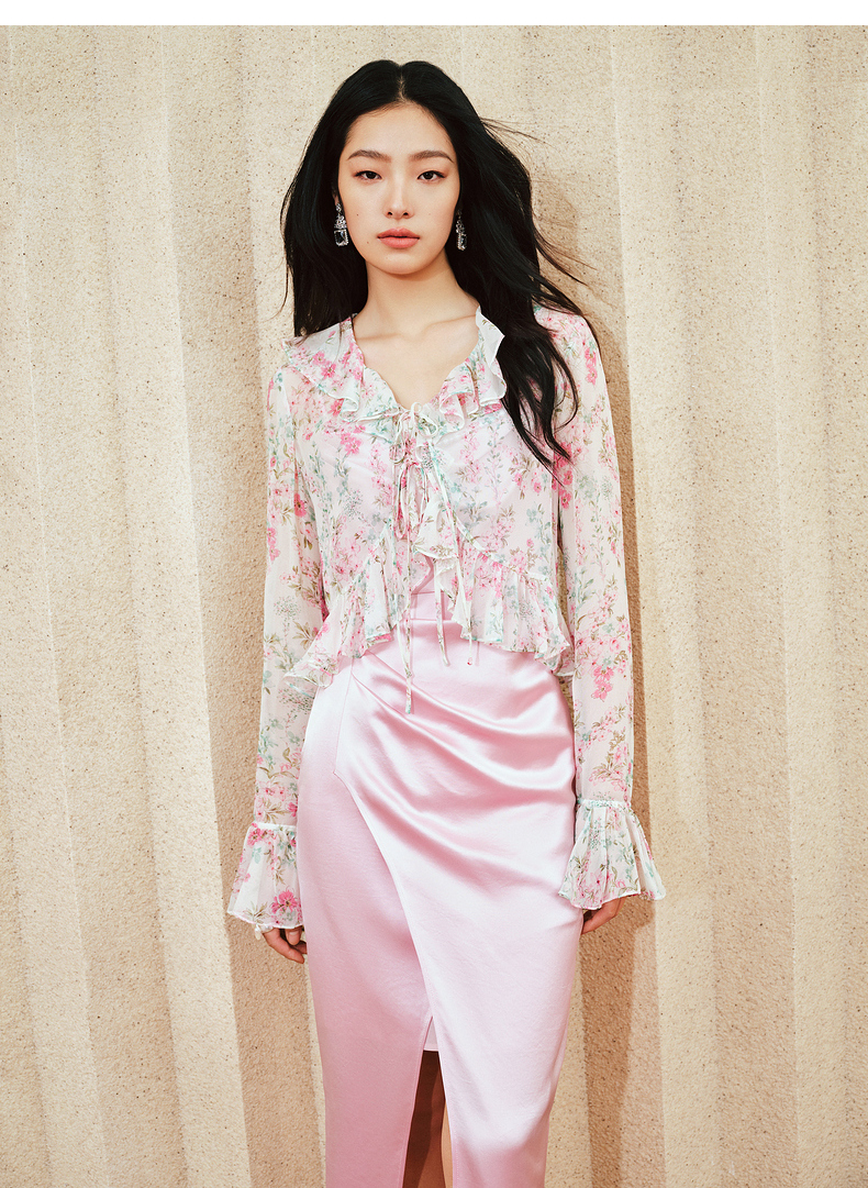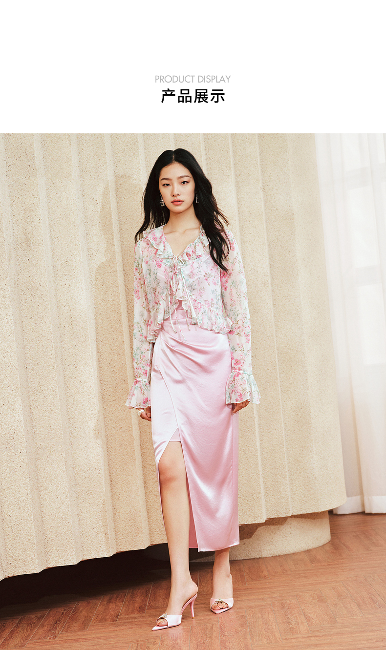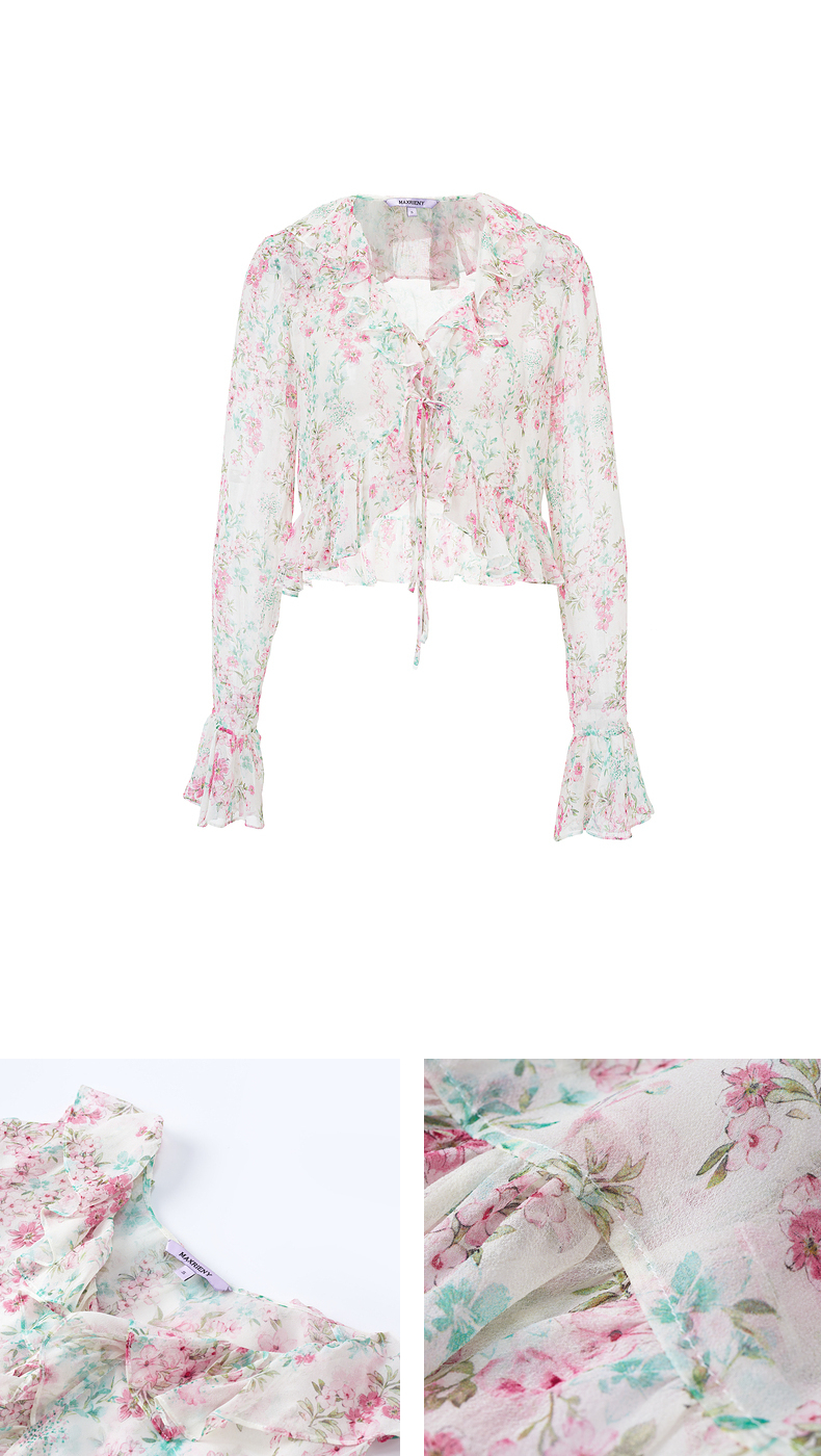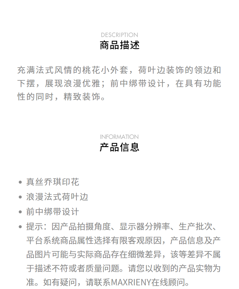 MAXRIENY法式优雅浪漫感碎花外套2024春季新款绑带桑蚕丝上衣女(货号:MS85JA012)