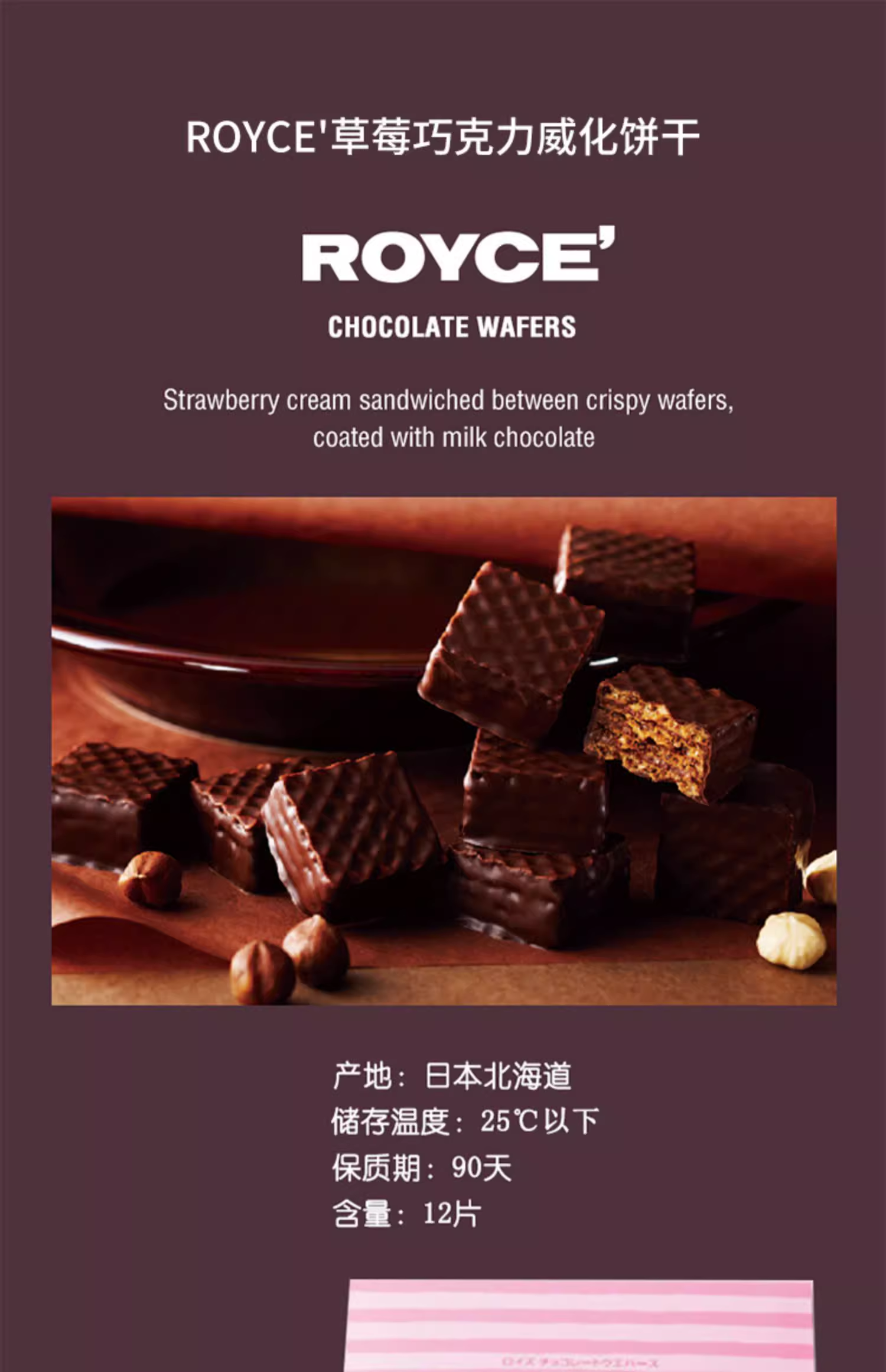 【新鲜市集】ROYCE若翼族草莓巧克力高威化饼干日本进口零食(解冻日期2025年10月)