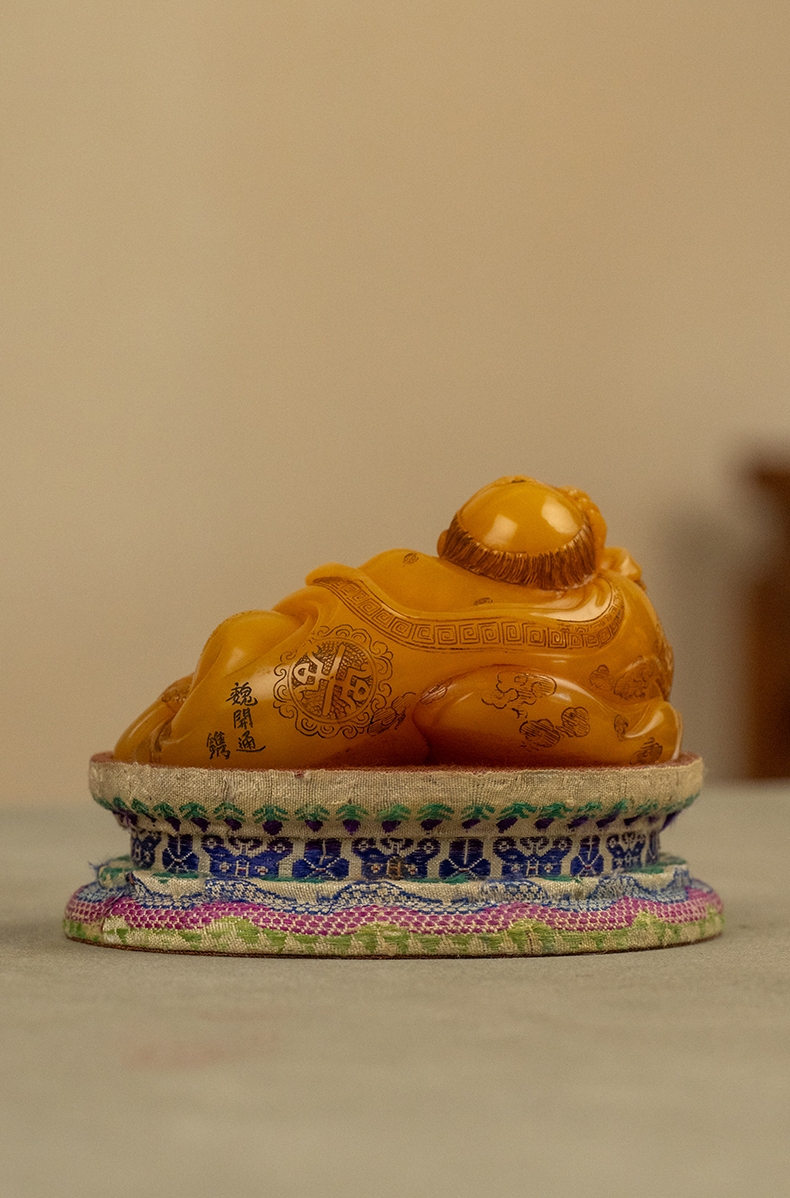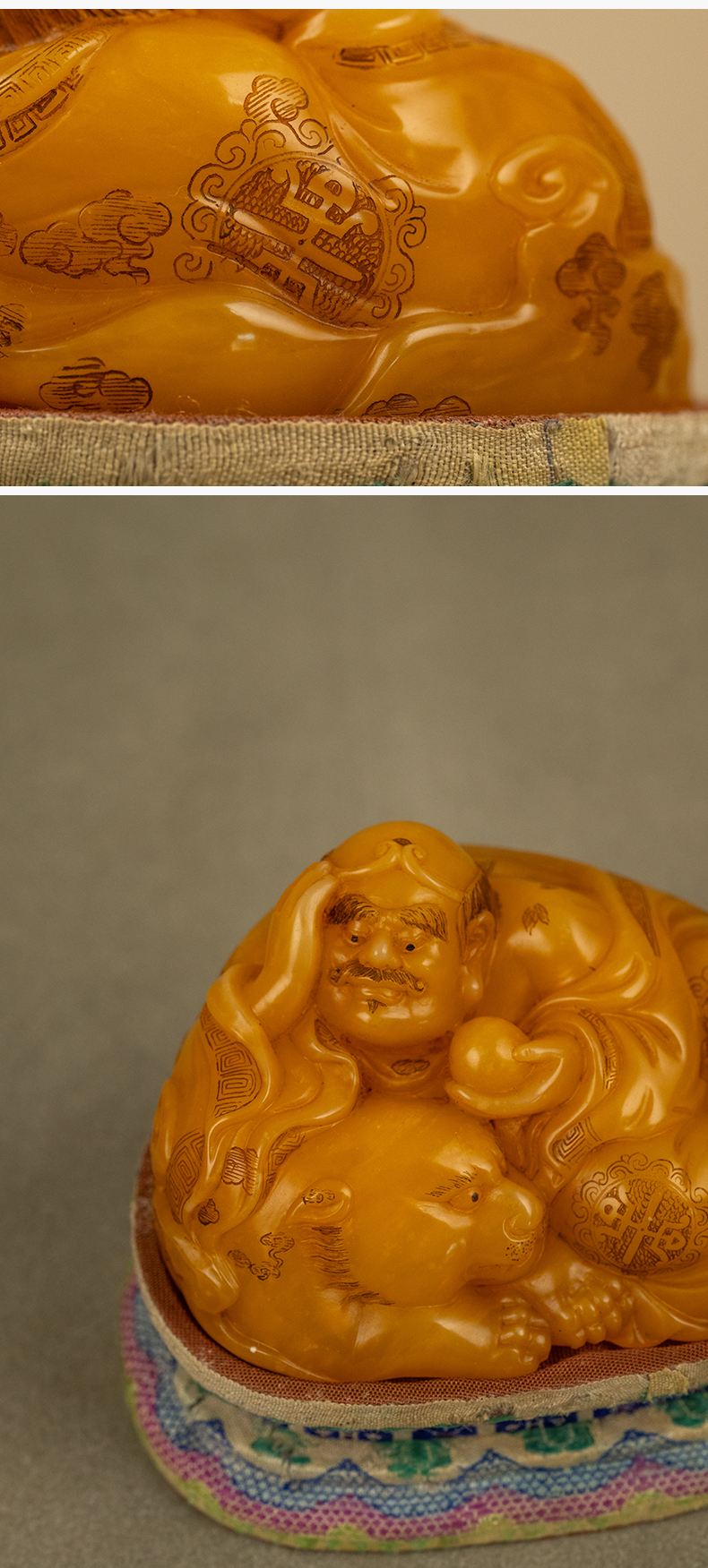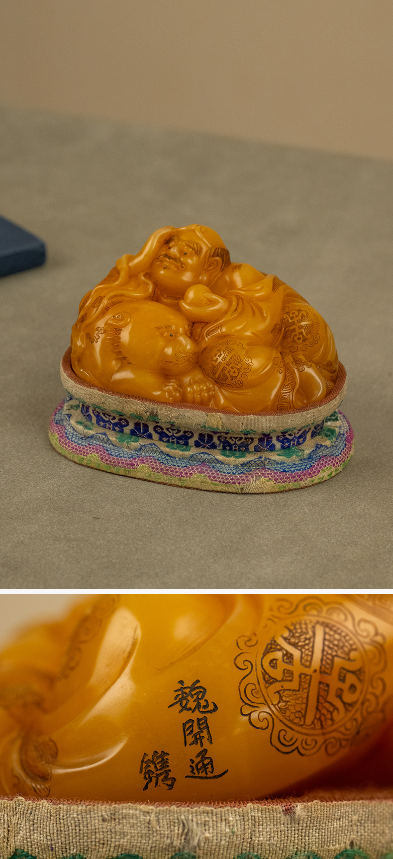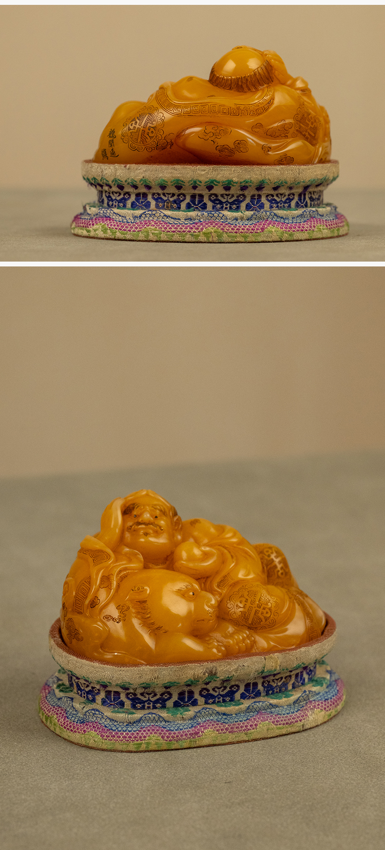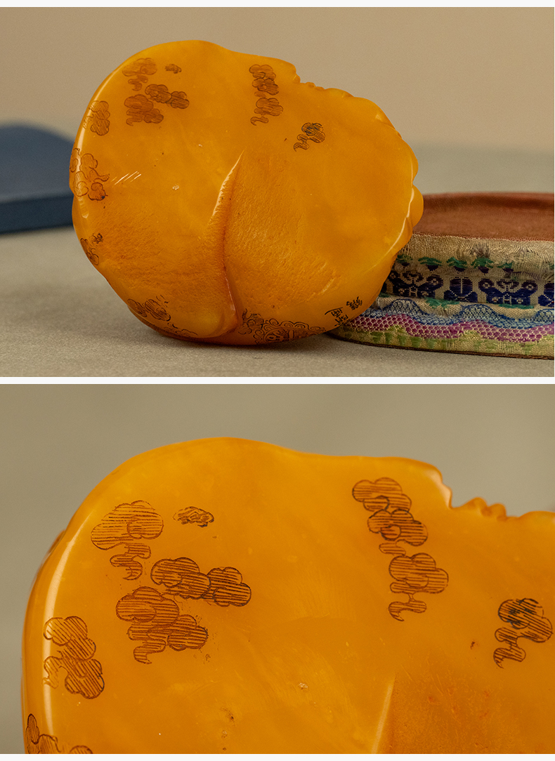 清 沈景修款端石狮纹辟雍砚(红木天地盖)