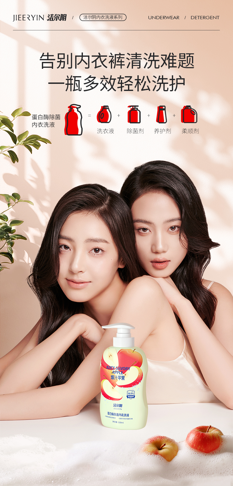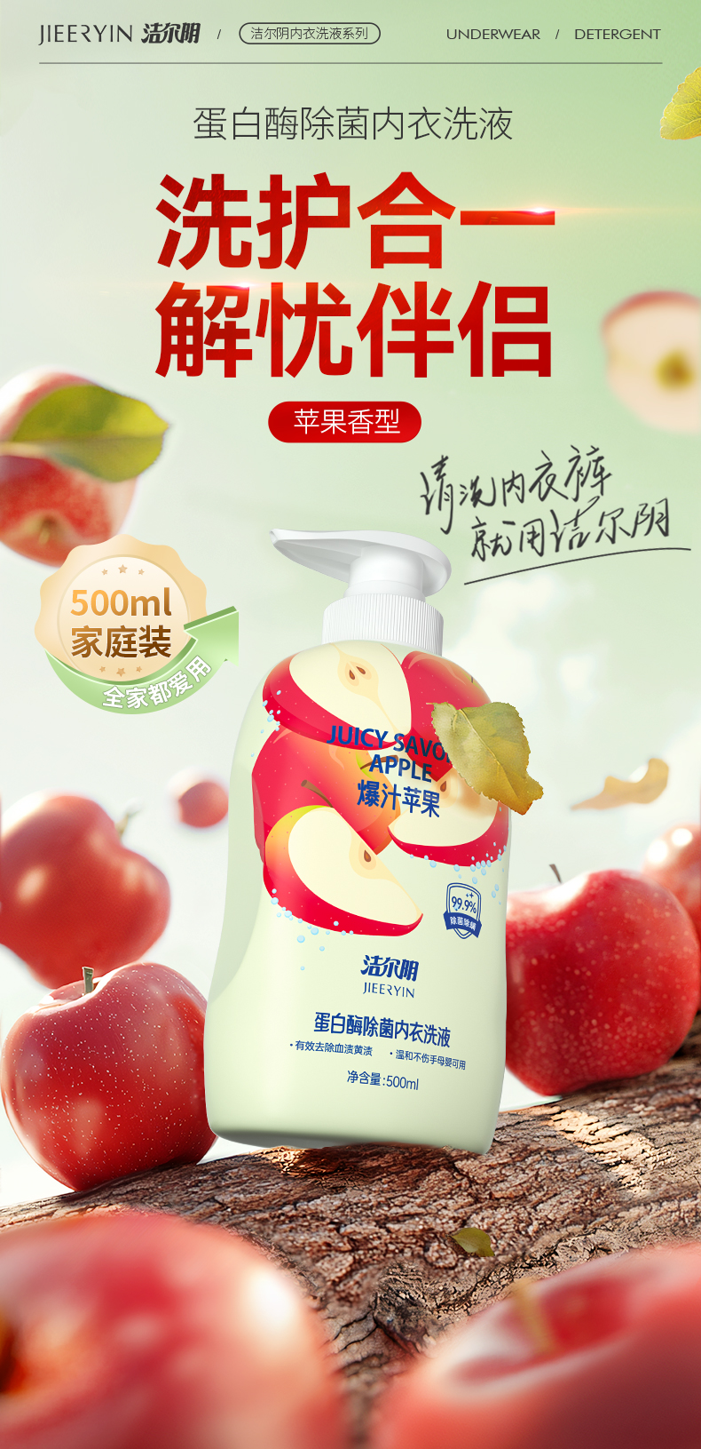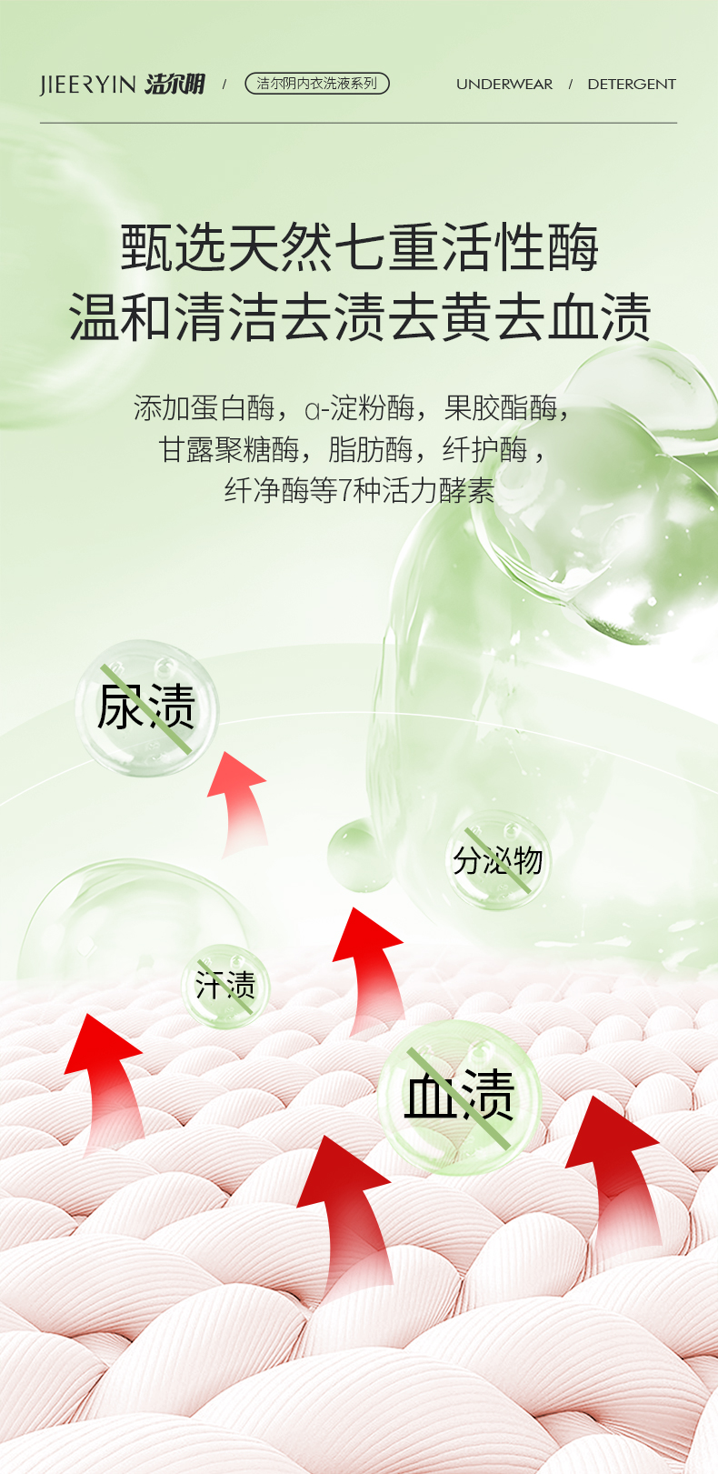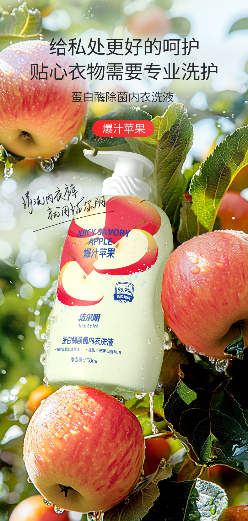 【洗护合一】洁尔阴爆汁苹果蛋白酶抑菌内衣清洗剂专用女士洗内裤祛血渍清洗液