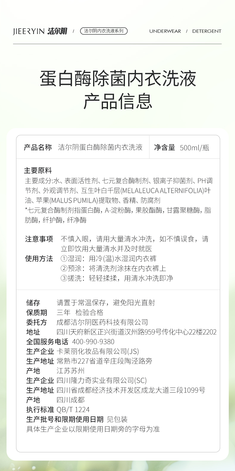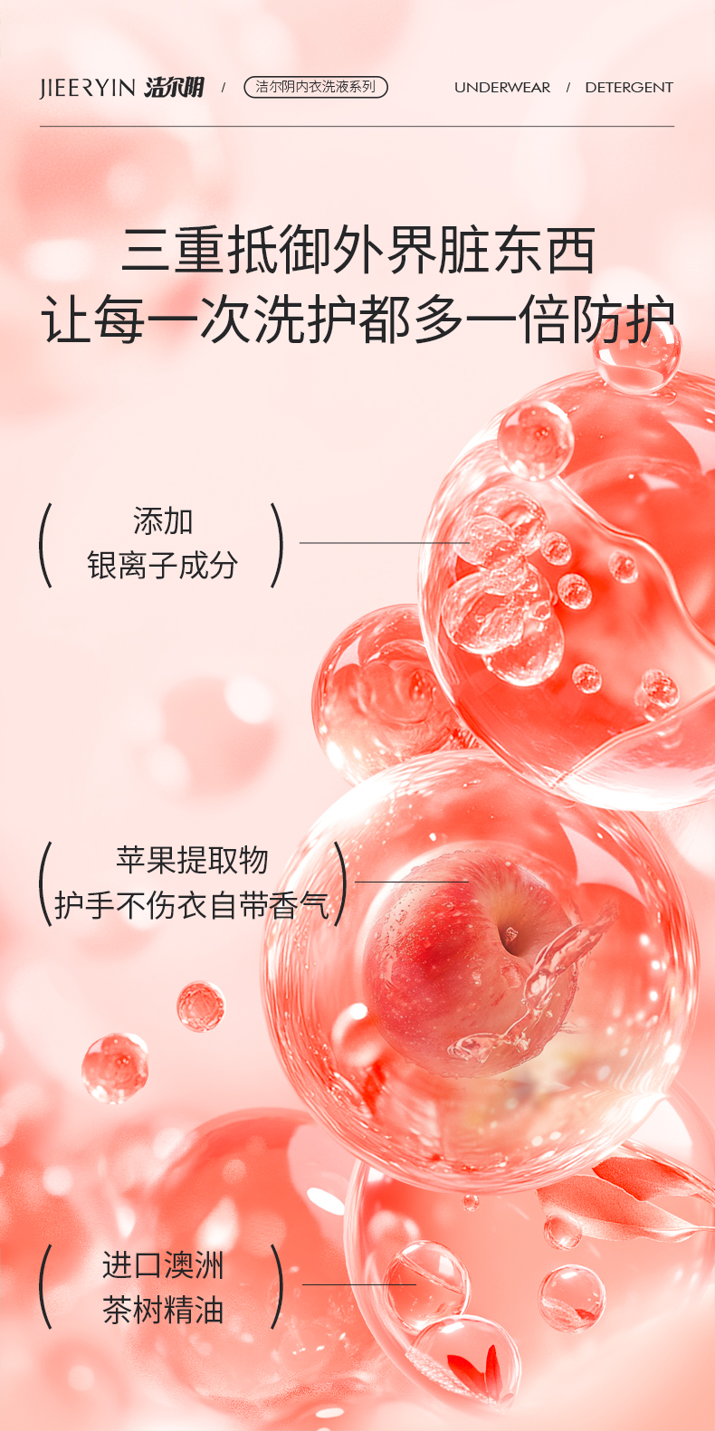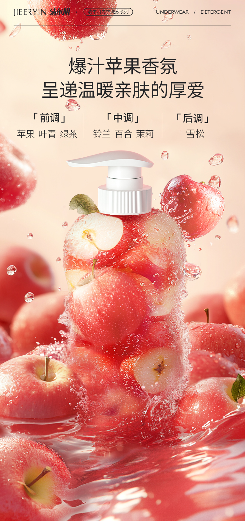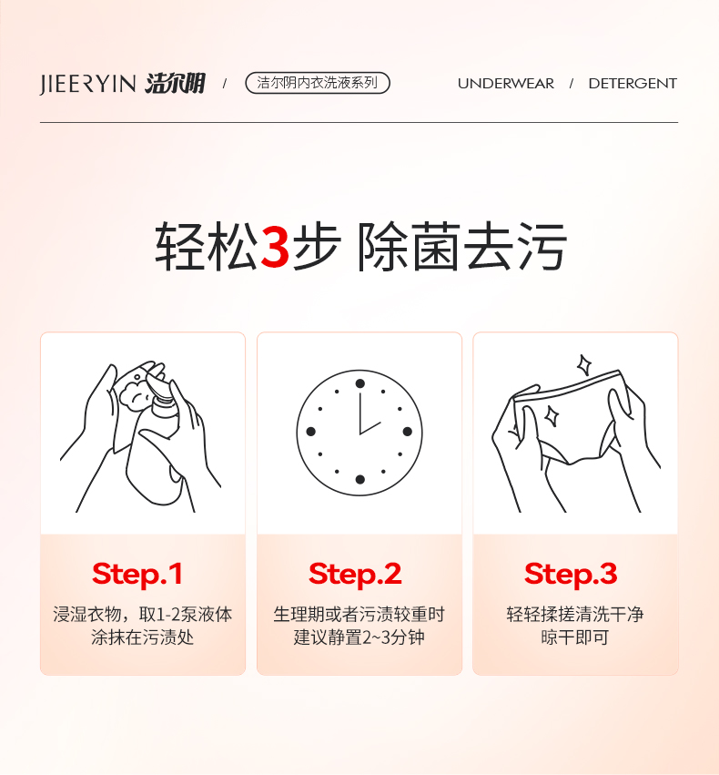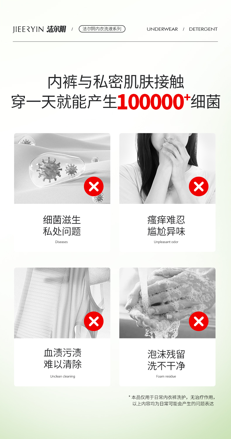 【洗护合一】洁尔阴爆汁苹果蛋白酶抑菌内衣清洗剂专用女士洗内裤祛血渍清洗液