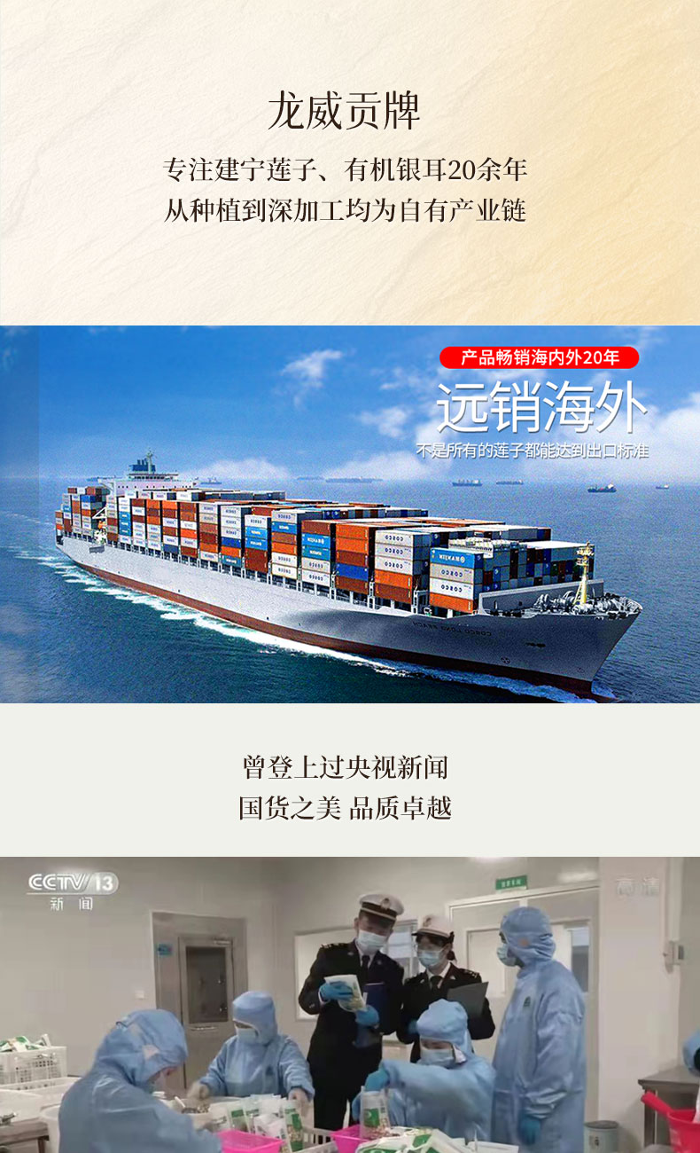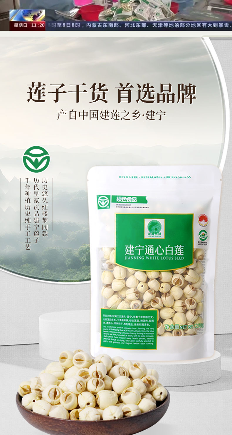 龙威贡牌 建宁通芯白莲子 自然绿色食品 无漂白熏硫 易煮粉糯 250/袋