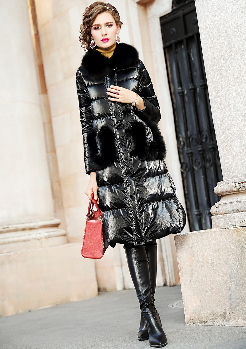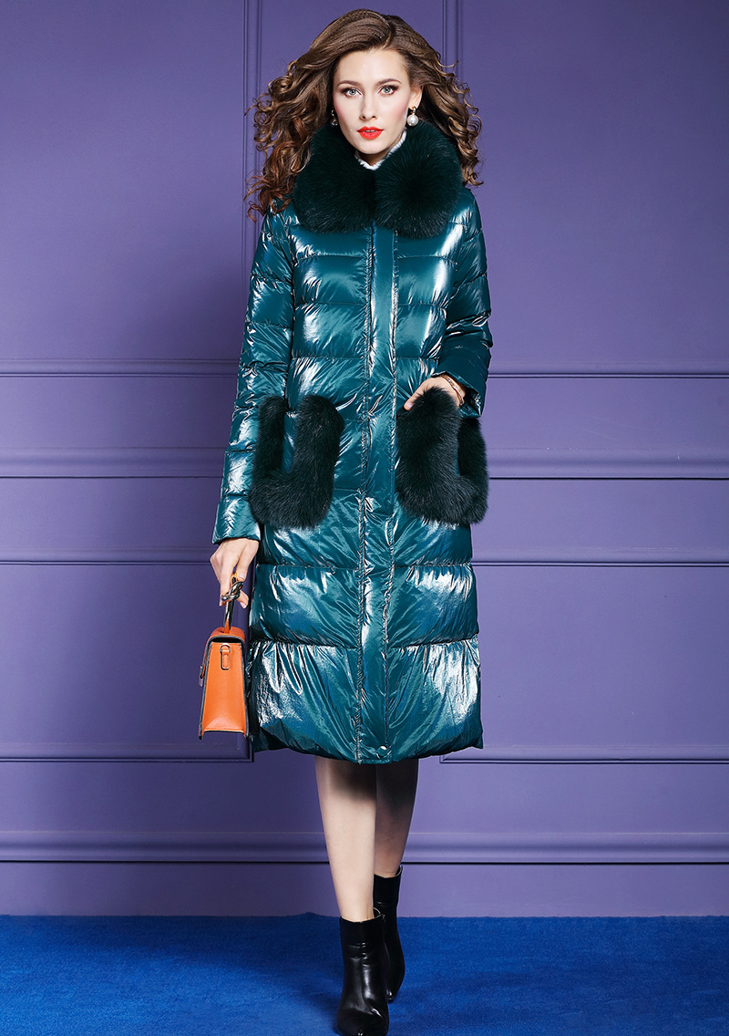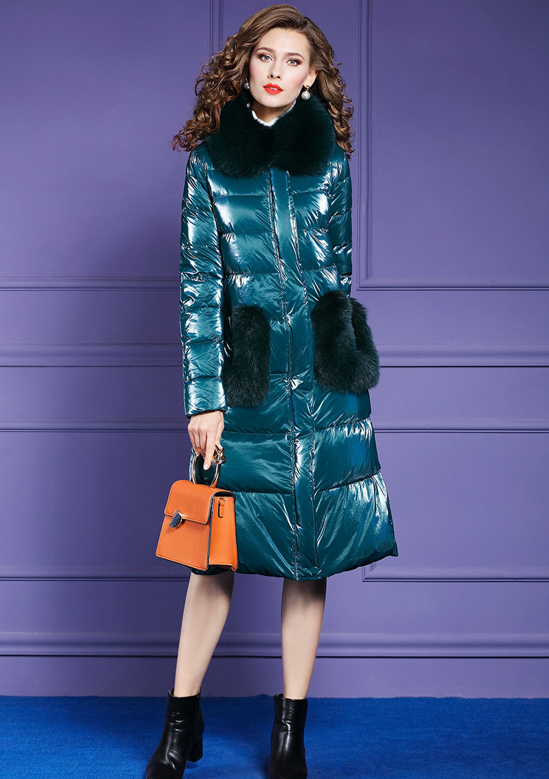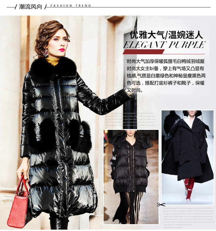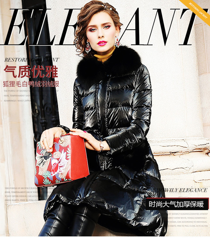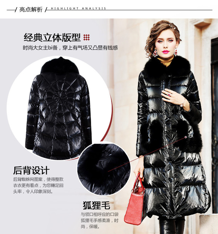 FMY-28088女中长款秋冬季加厚保暖狐狸毛领白鸭绒外套羽绒服