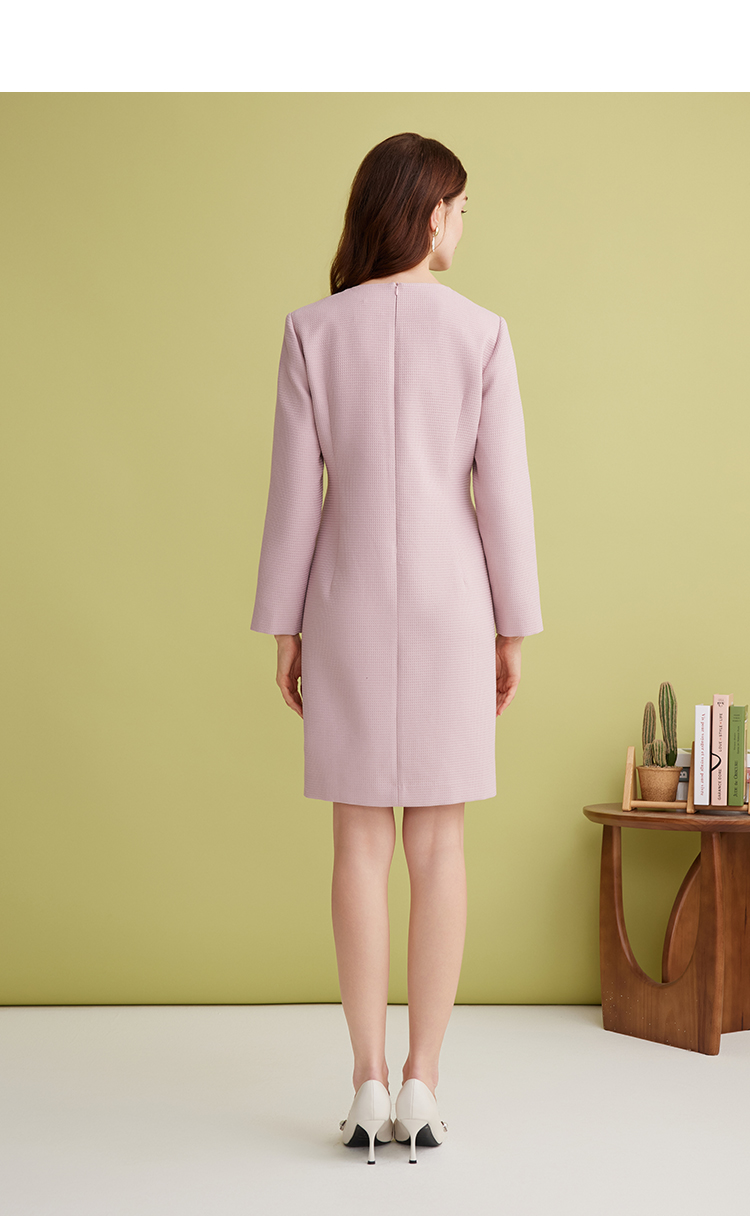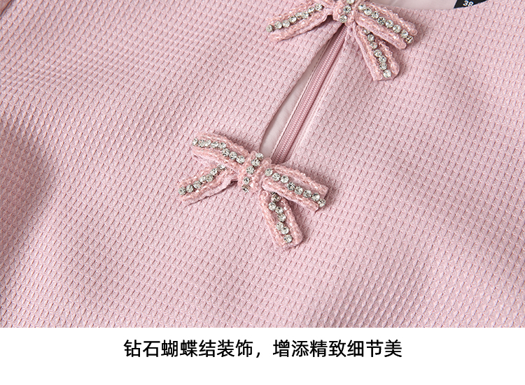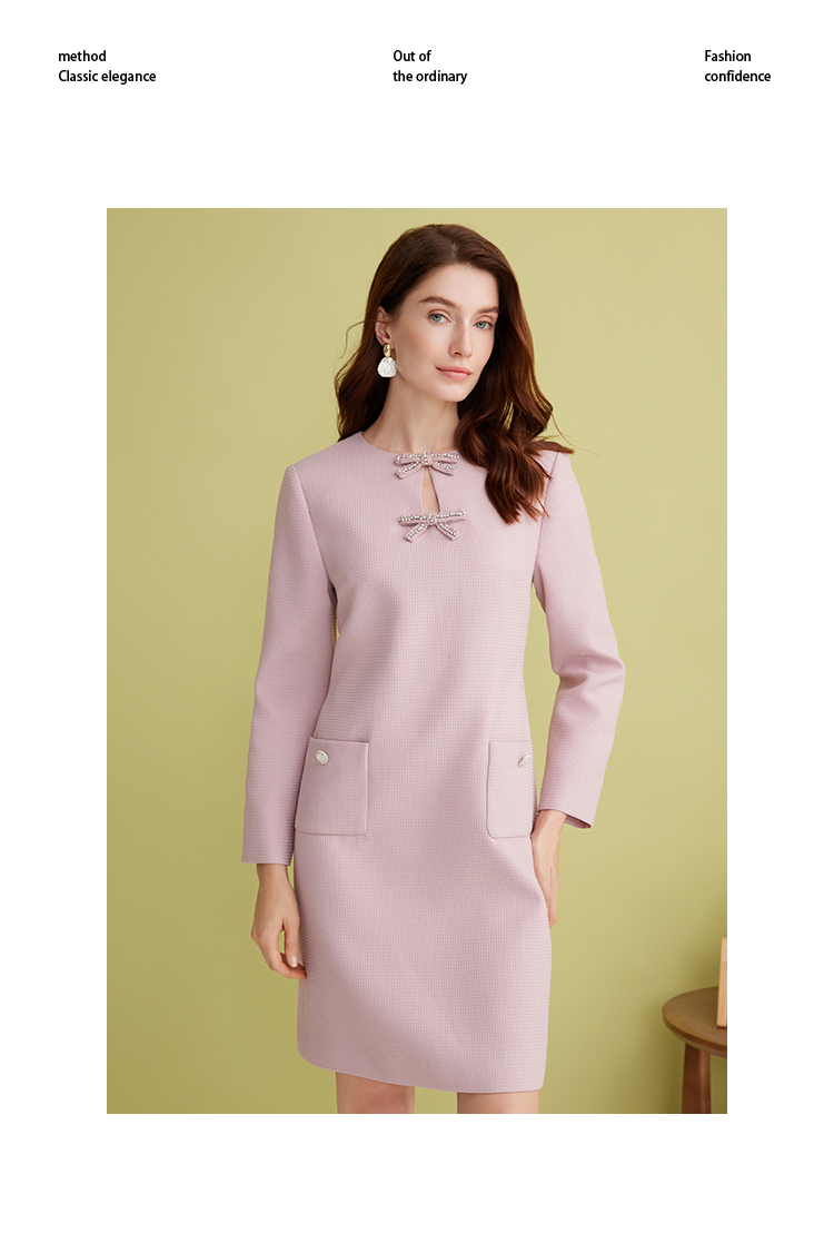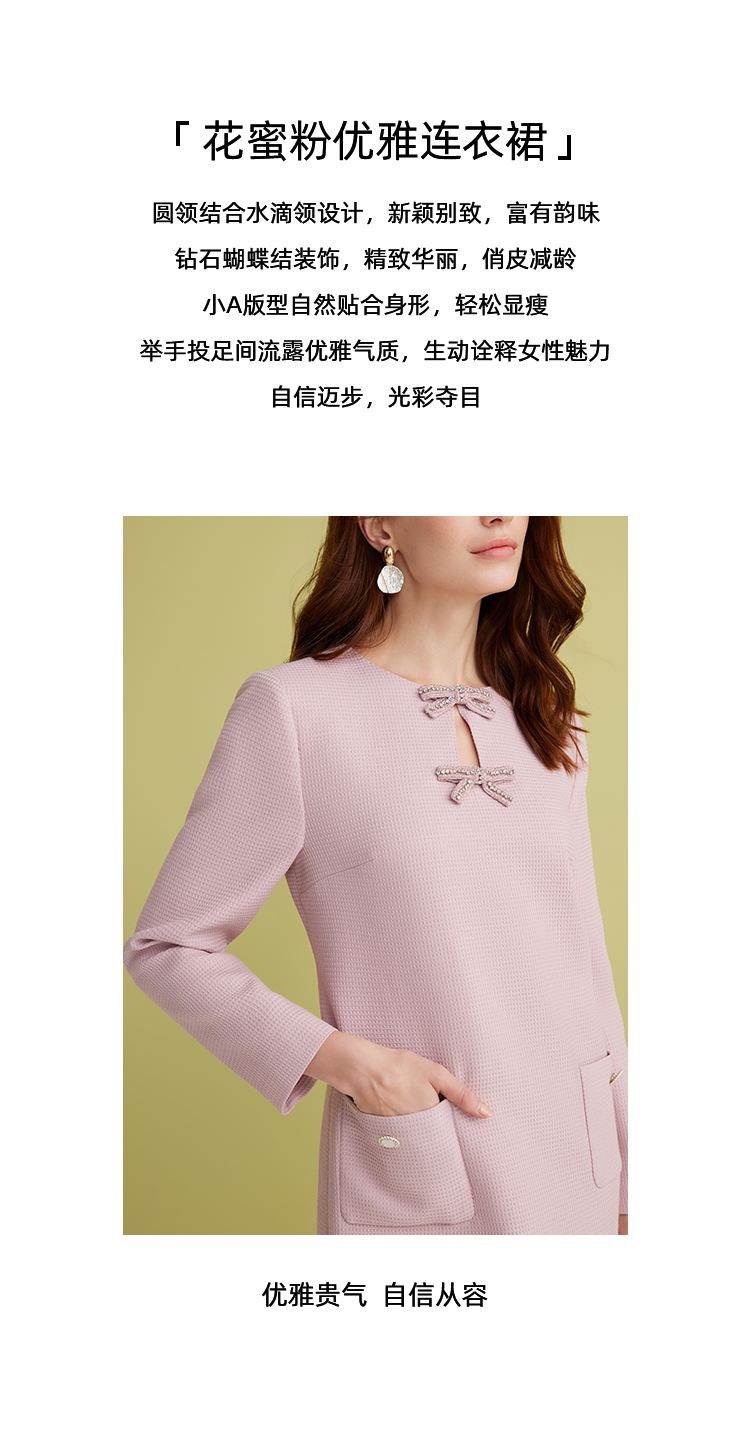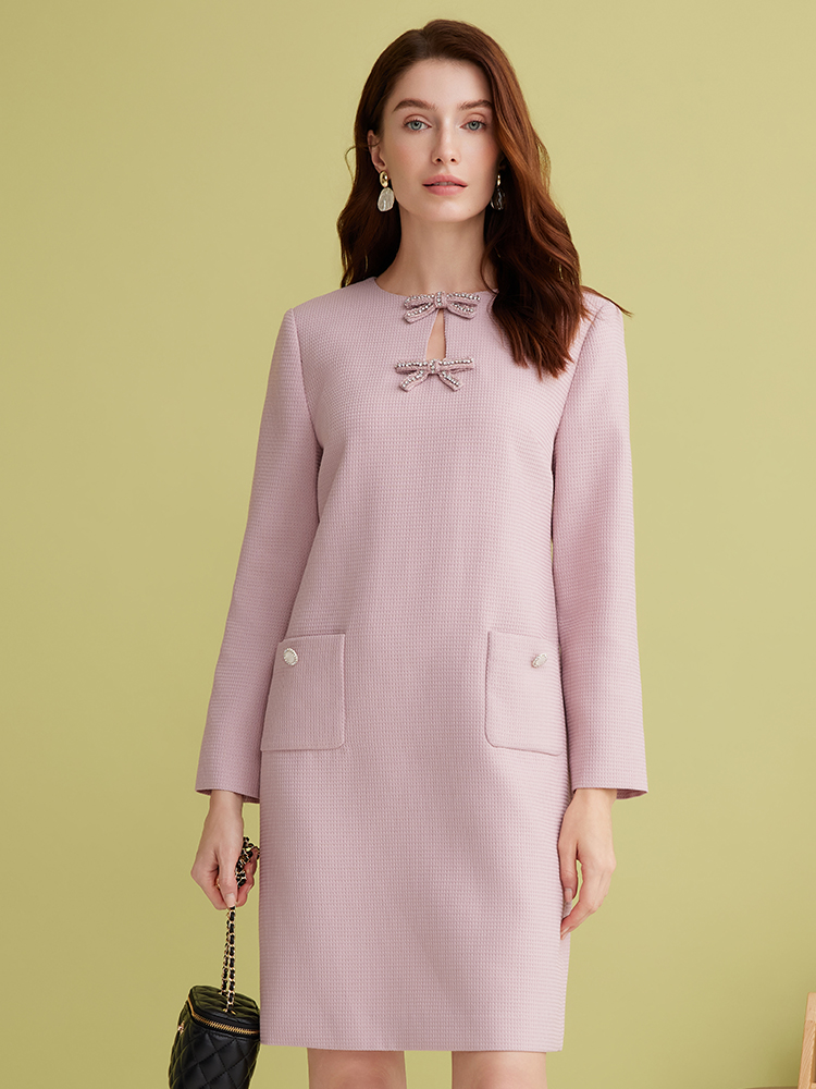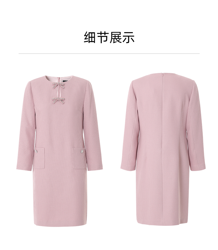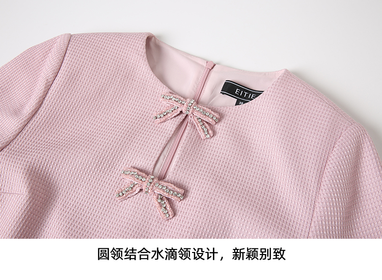 EITIE爱特爱精致优雅小香风直筒显瘦蝴蝶结粉色连衣裙2025春新款A2507519