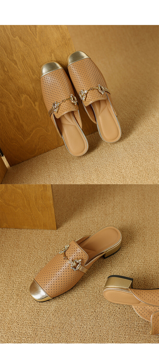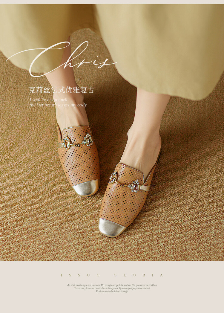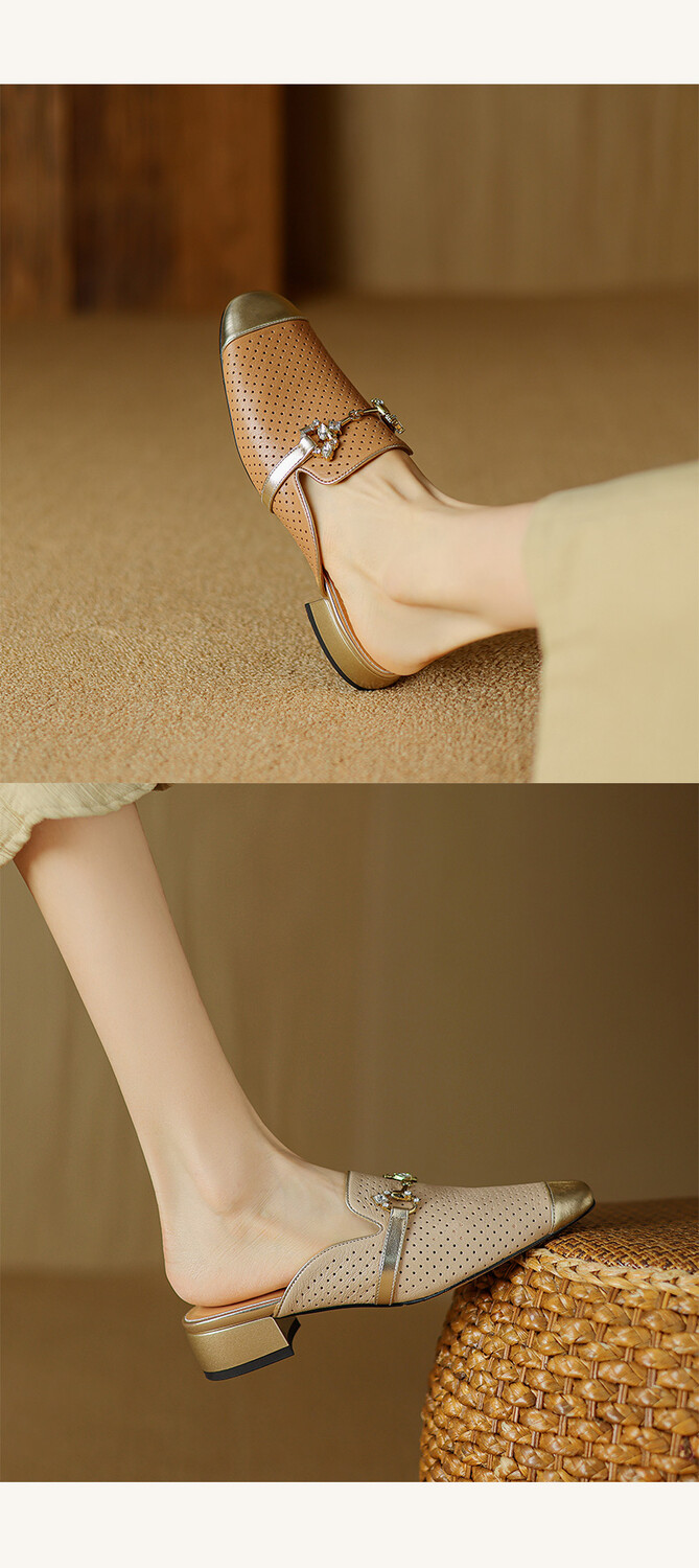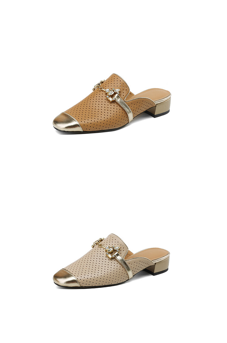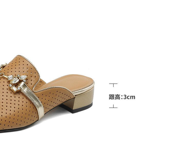 【预售5天】2024新款牛皮拼色金属扣粗跟水钻包头后空凉鞋女ASZ&C508