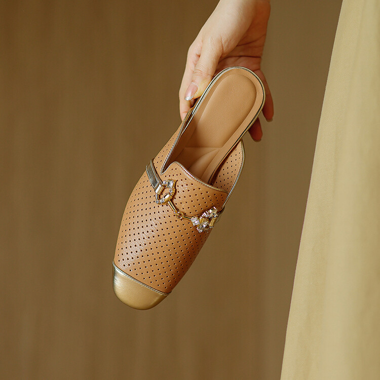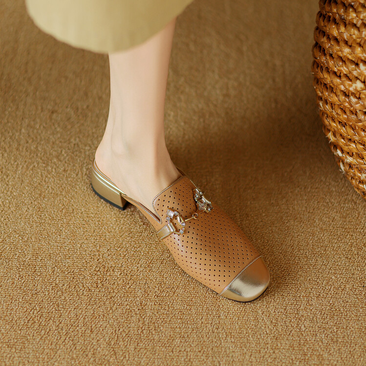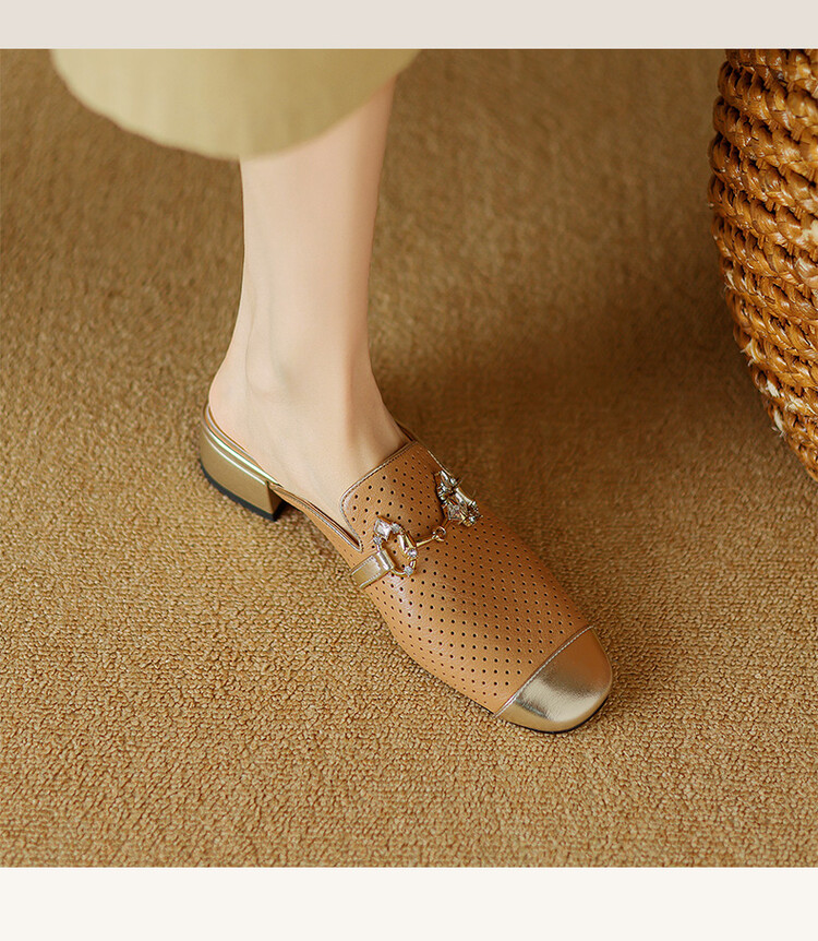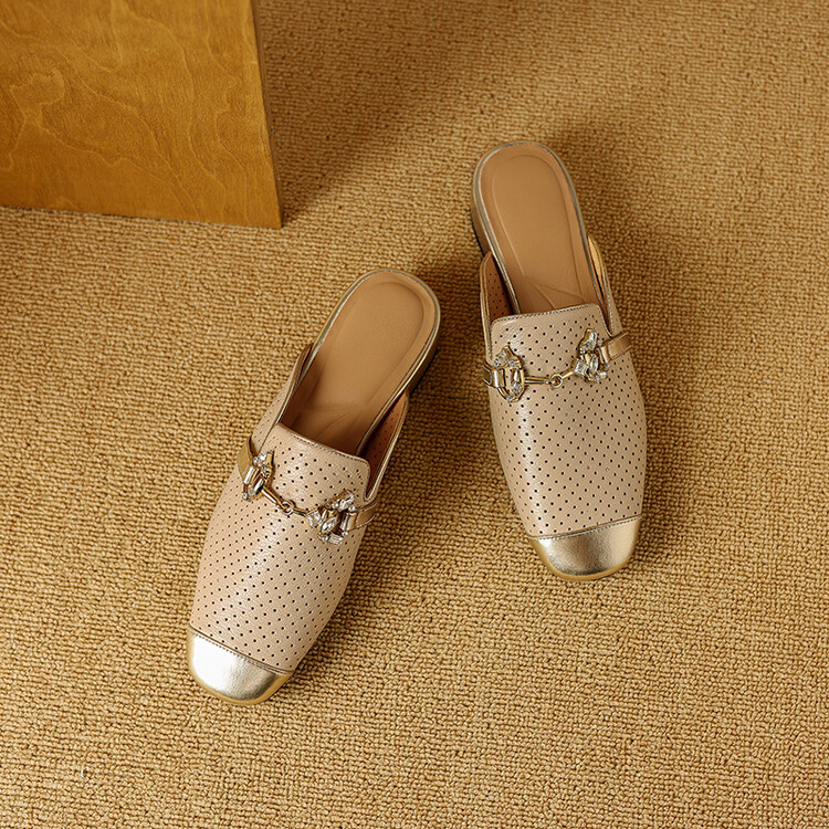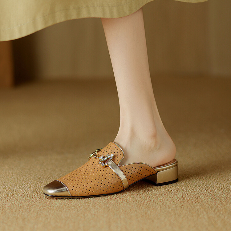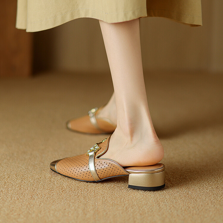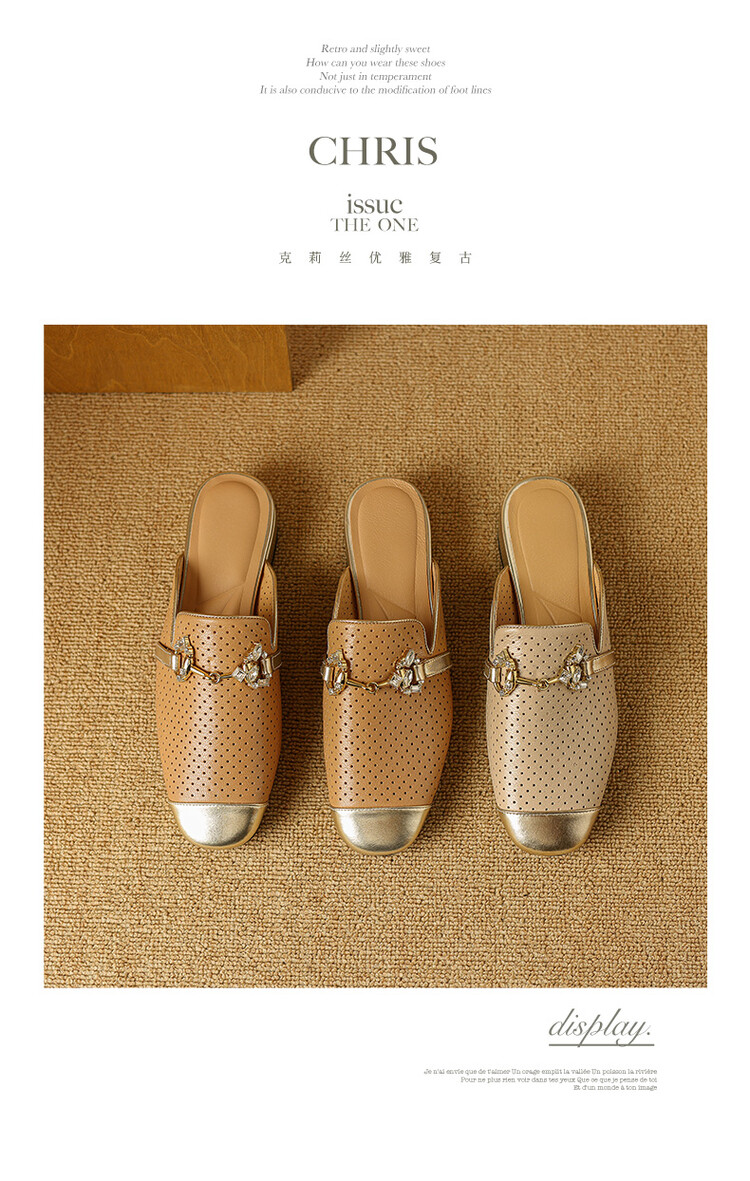 【预售5天】2024新款牛皮拼色金属扣粗跟水钻包头后空凉鞋女ASZ&C508