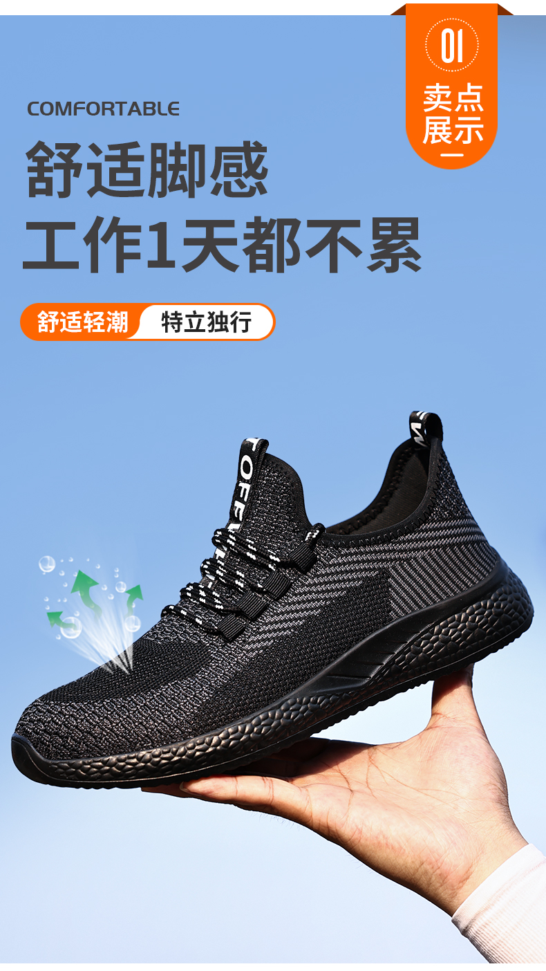 新品四季款透气防护鞋男防砸防刺橡胶底舒适安全工作鞋
