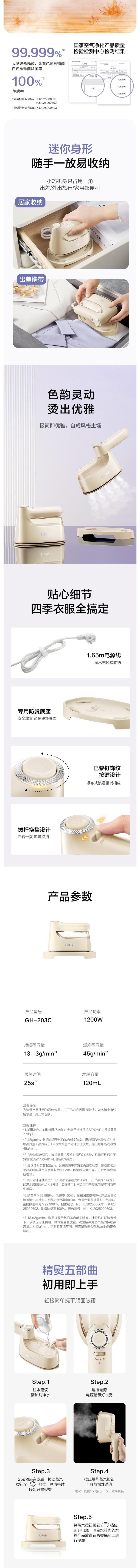 SUPOR苏泊尔 熨烫机水箱容量120mL GH-203C