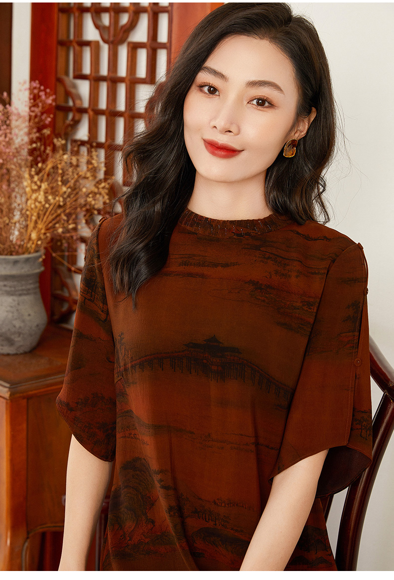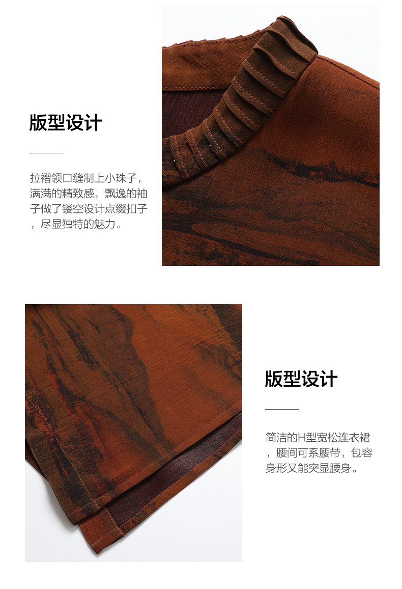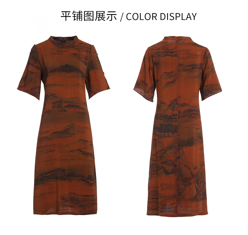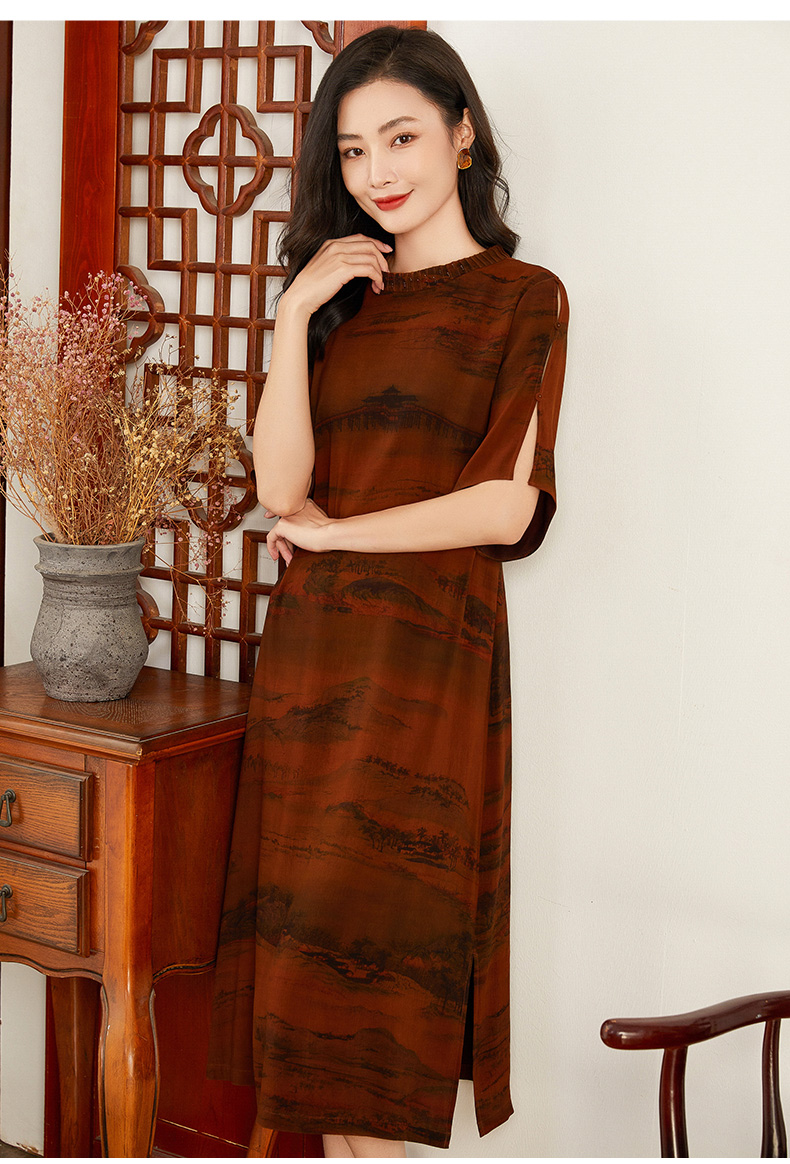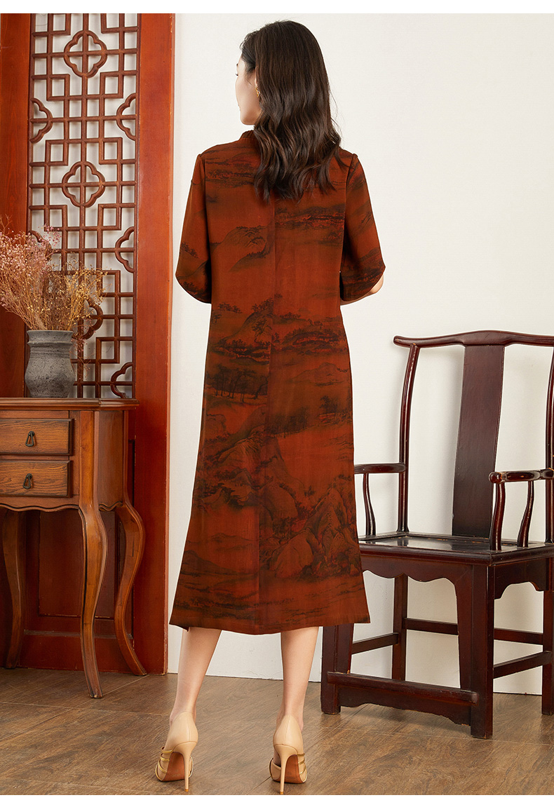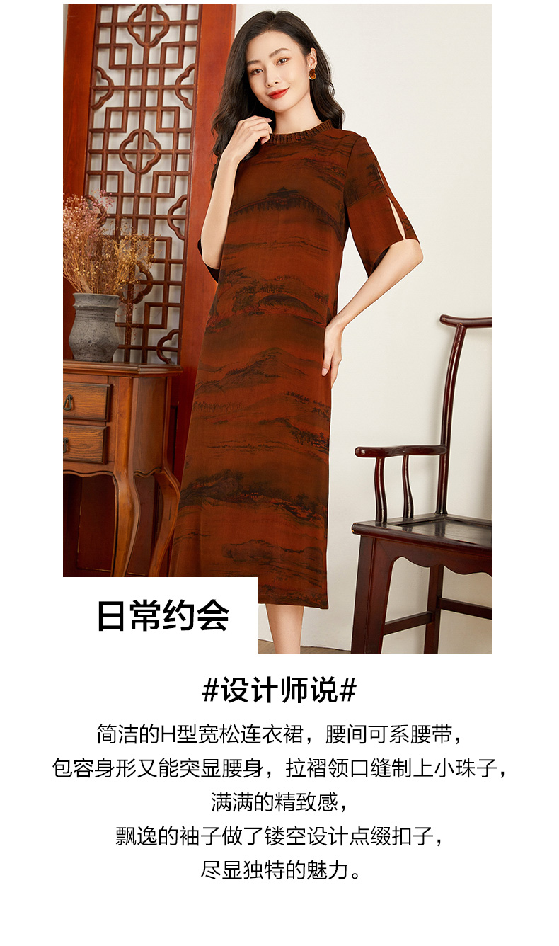 【锦绣山水图】【香云纱】乔万尼重磅真丝连衣裙30mm红云纱新品收腰裙EF2E306
