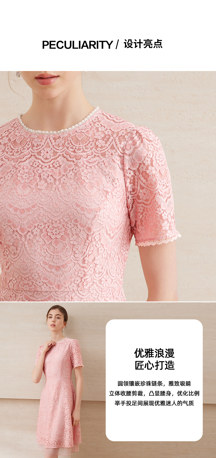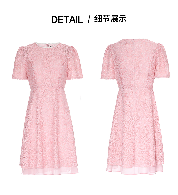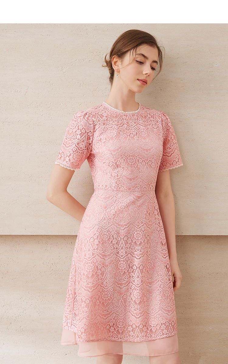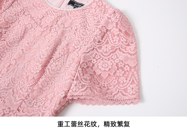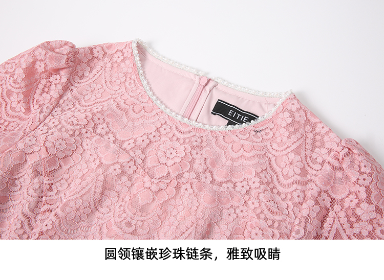 EITIE爱特爱新中式对襟珍珠盘扣收腰显瘦粉色连衣裙夏季新款B2507668