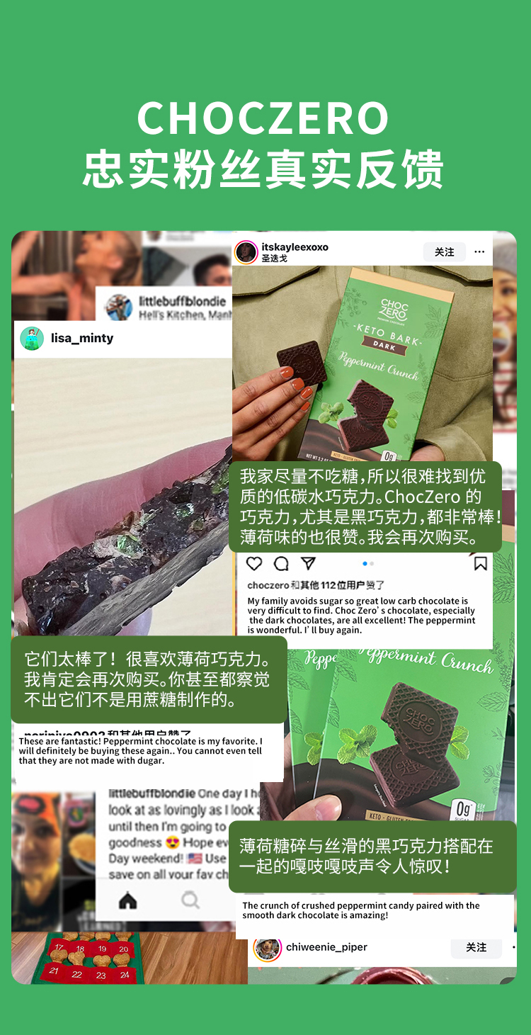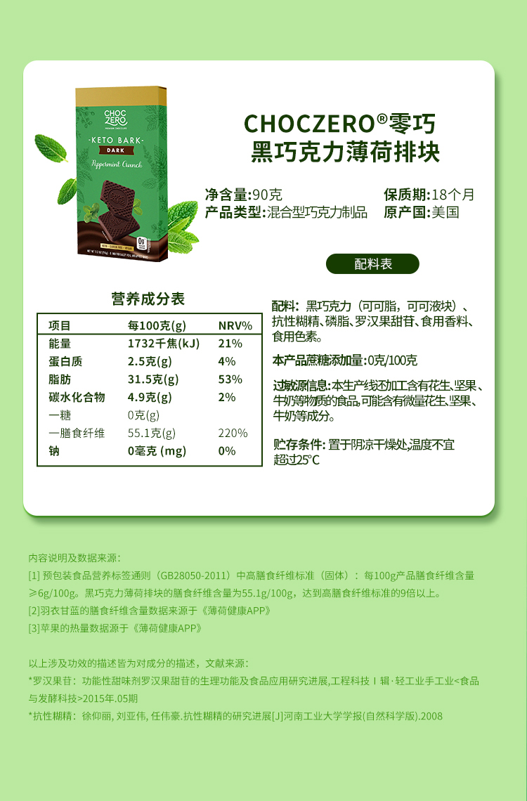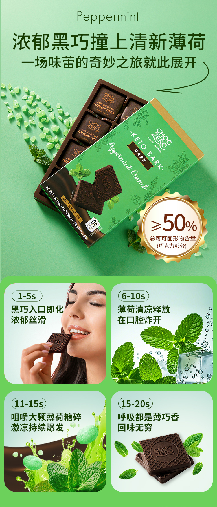 【瘦龙】Choczero 黑巧克力薄荷排块 90g/盒 8片 0蔗糖 饱腹代餐儿童零食