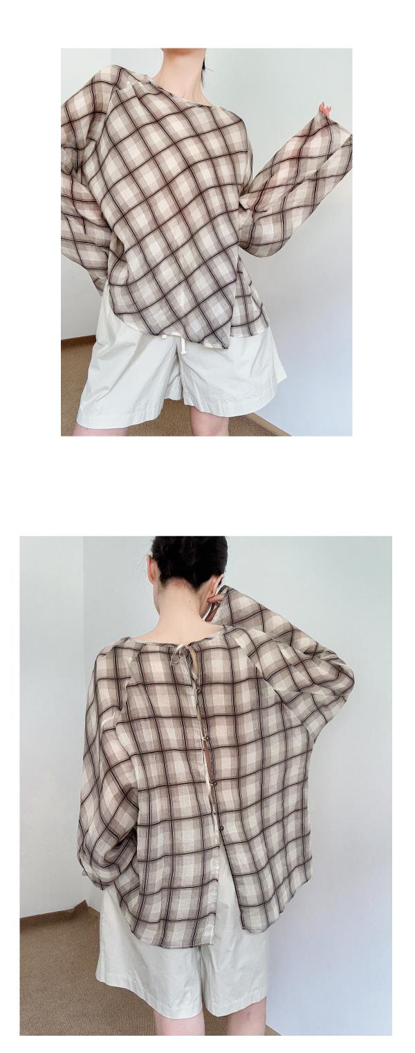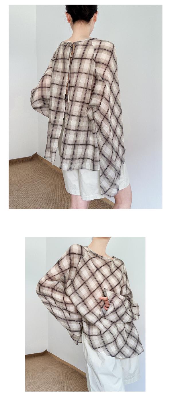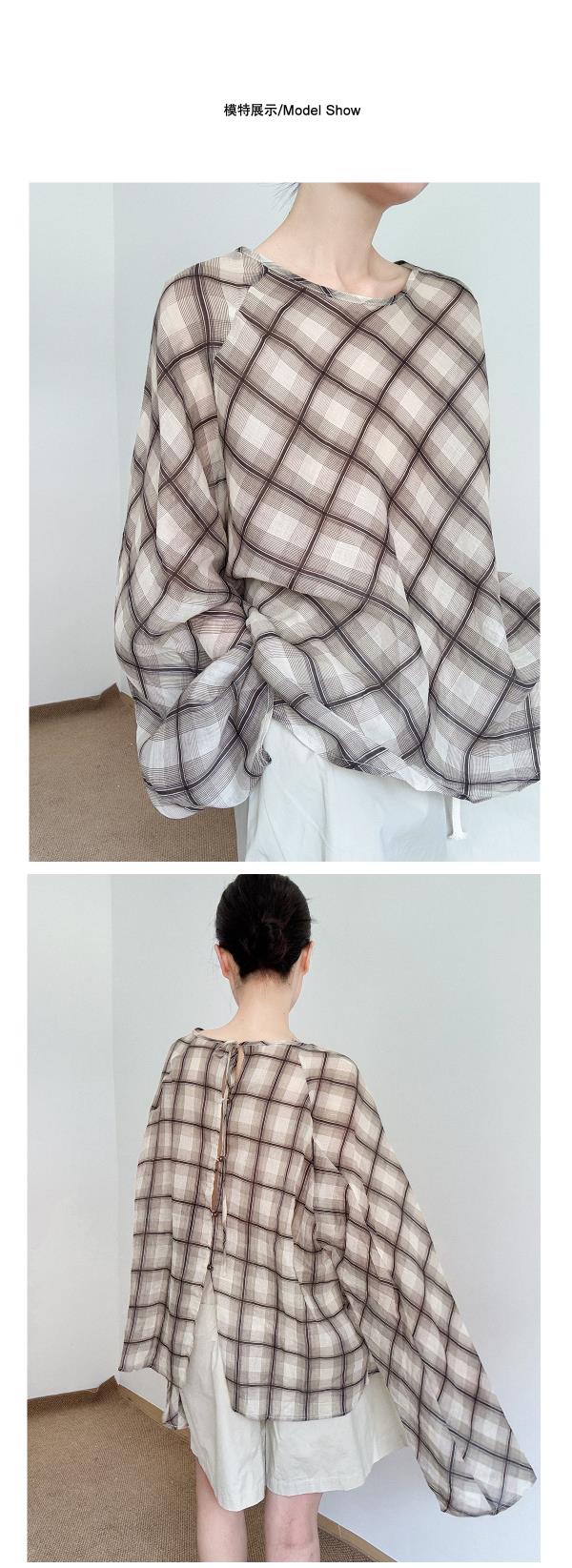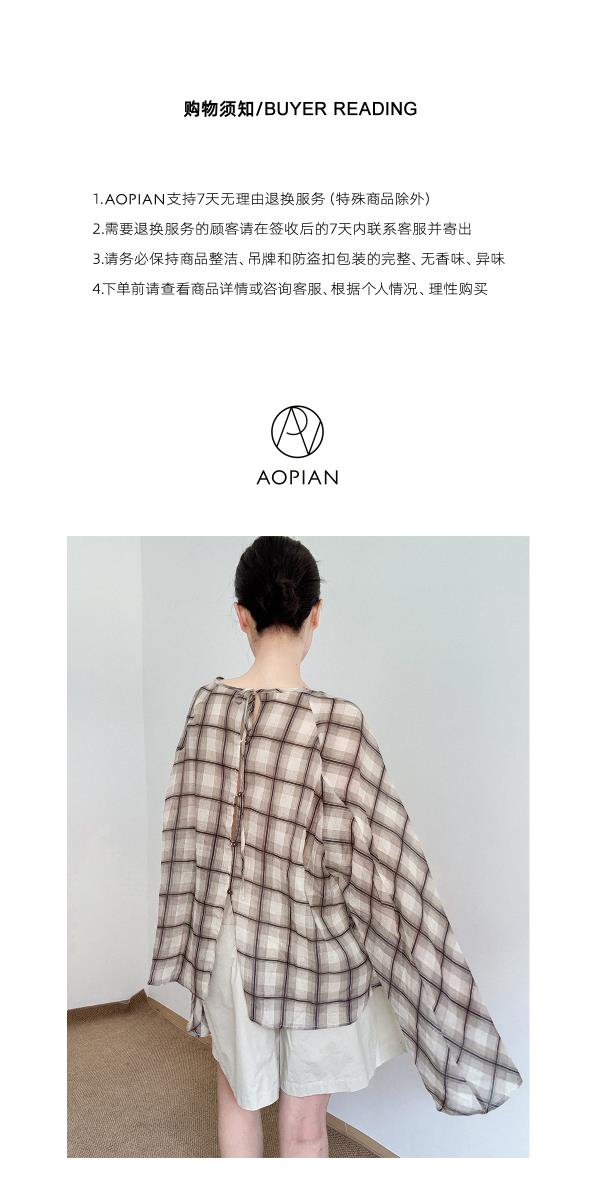奥篇咖色格纹印花罩衫 高智感苎麻宽松上衣衬衫