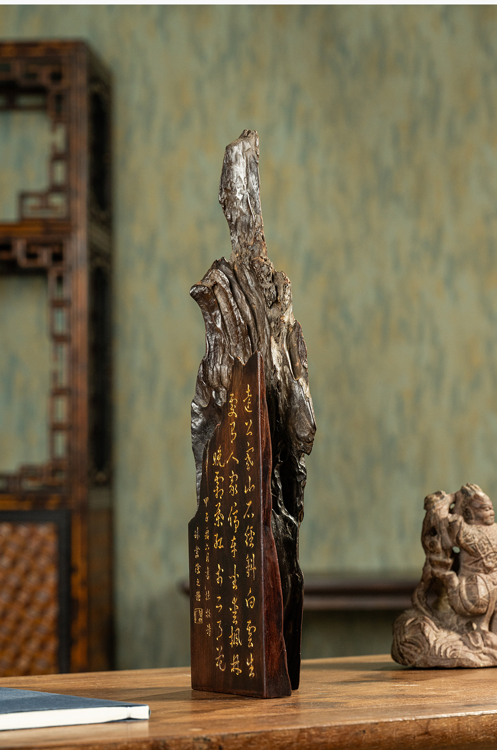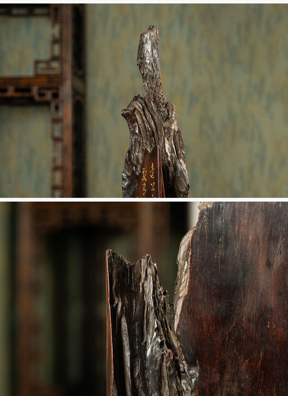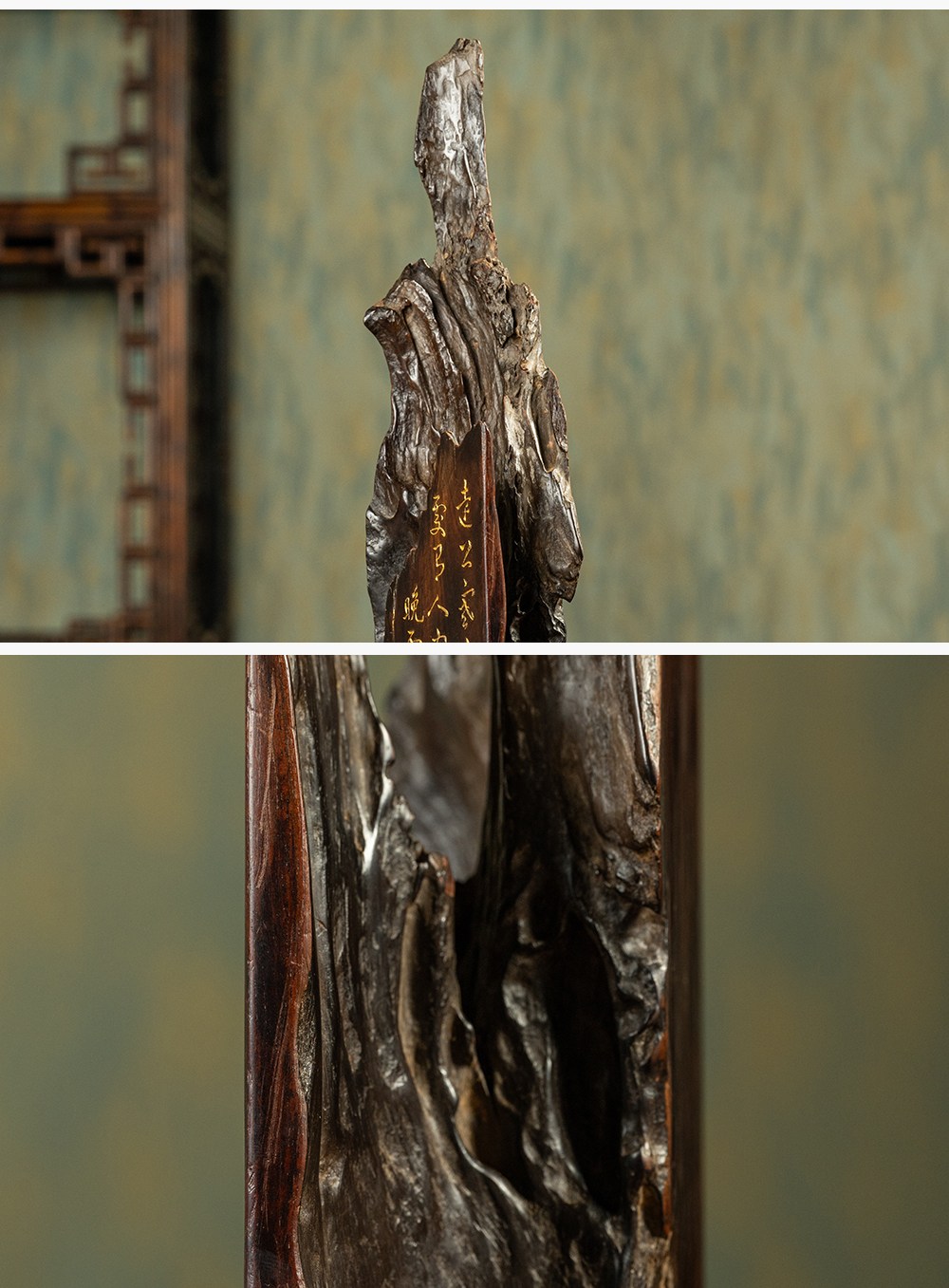 二十世纪 红木嵌云石透雕拐子纹百灵台