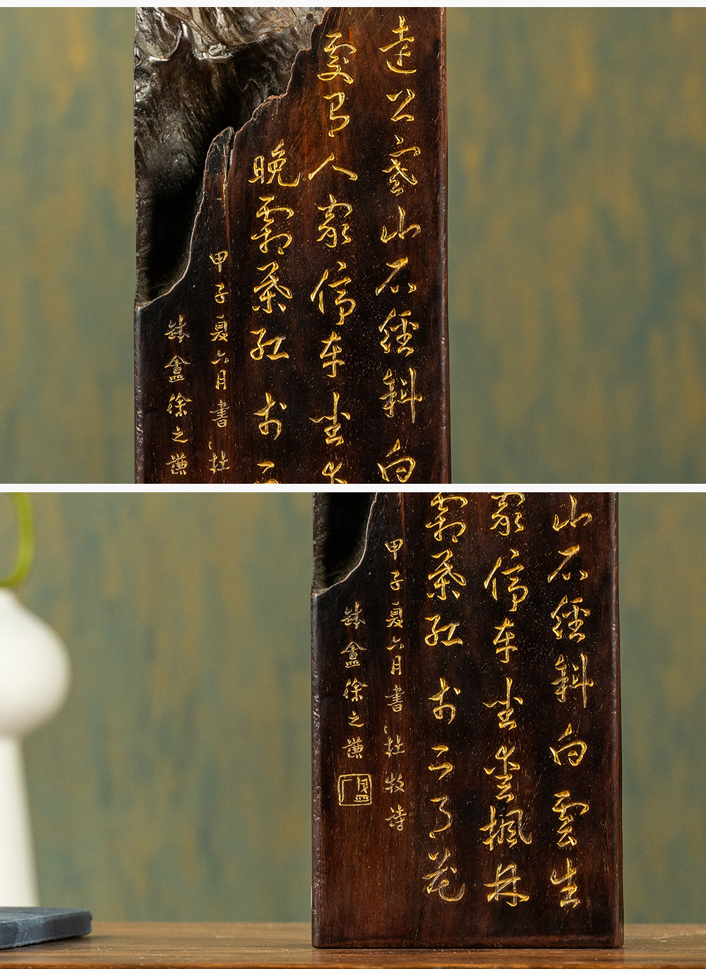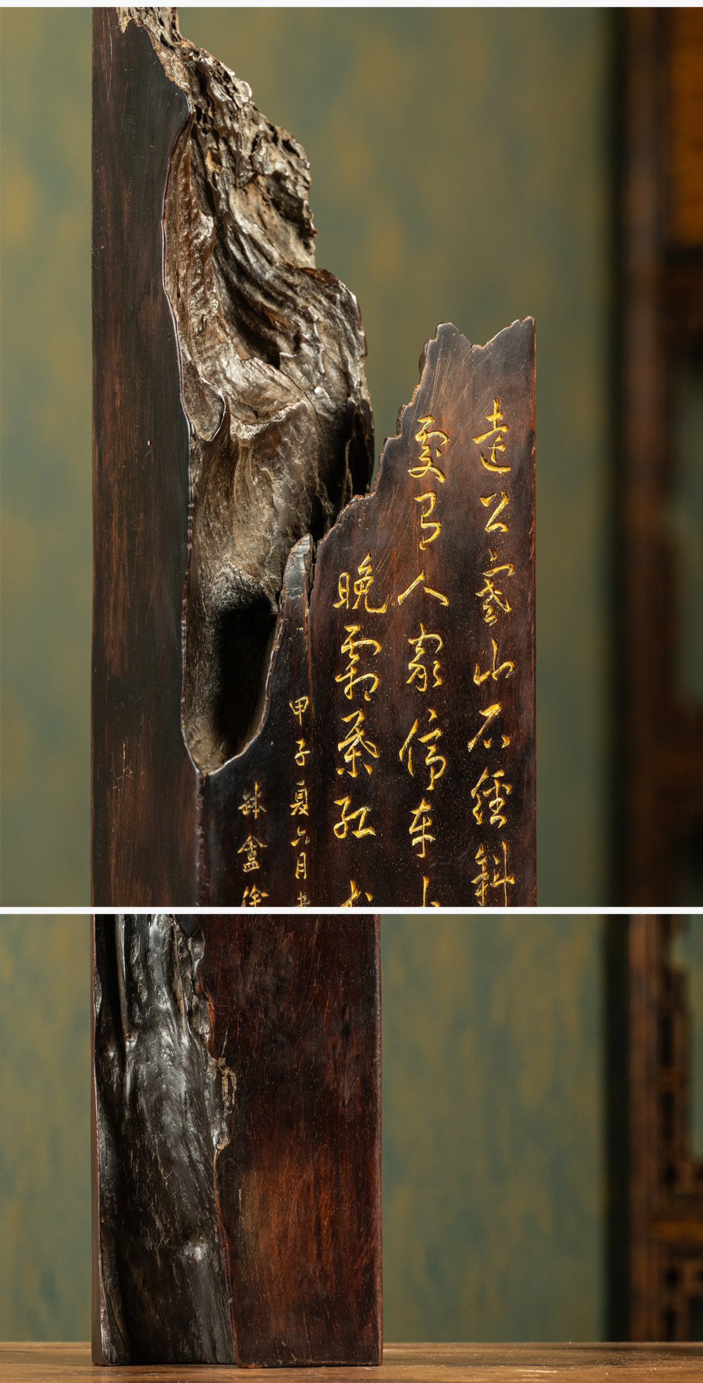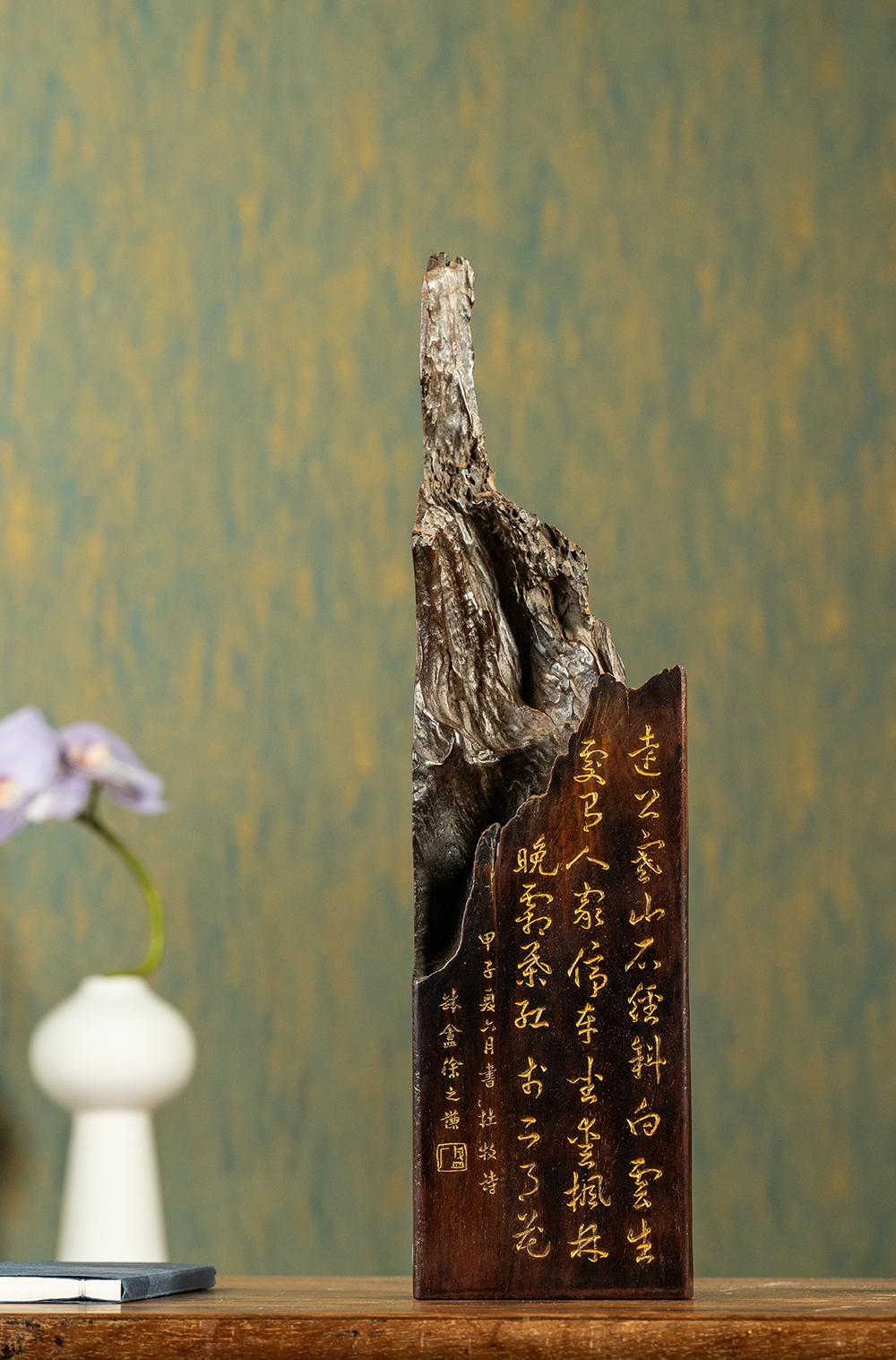 二十世纪 红木嵌云石透雕拐子纹百灵台
