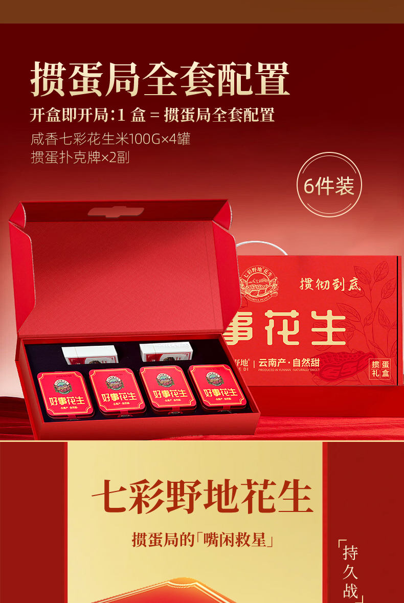 【新品】七彩野地掼蛋礼盒 云南七彩咸香花生米礼盒装400克