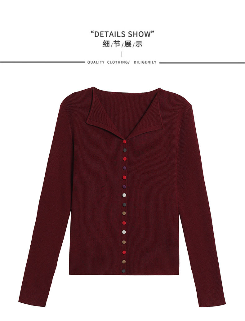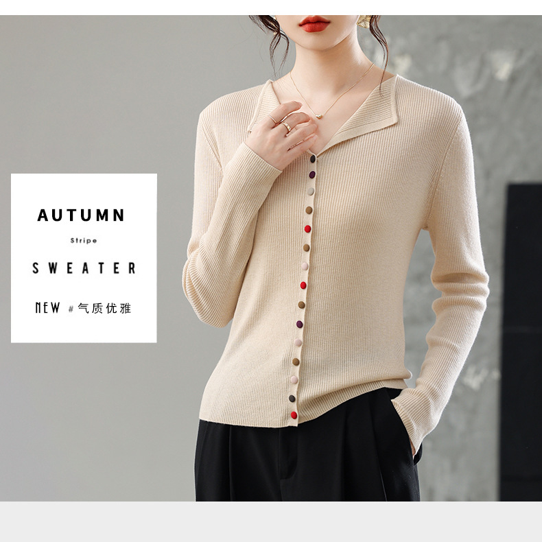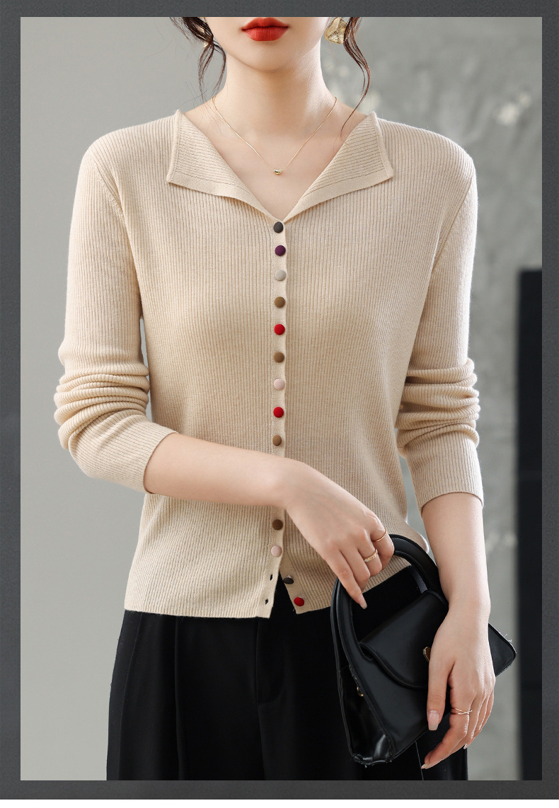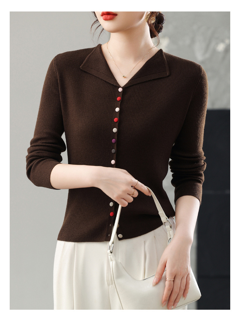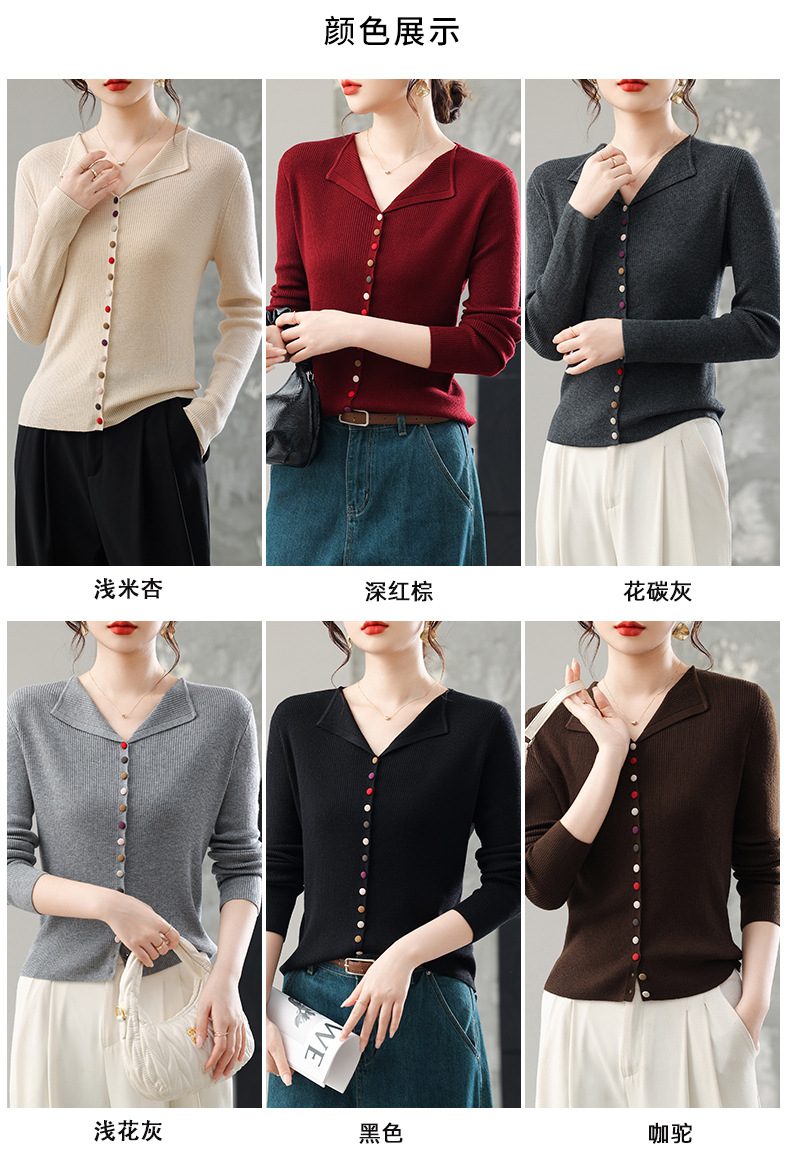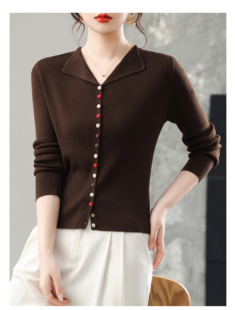 CC翻领彩色纽扣设计感针织衫长袖开衫早秋2025新款气质修身女士上衣